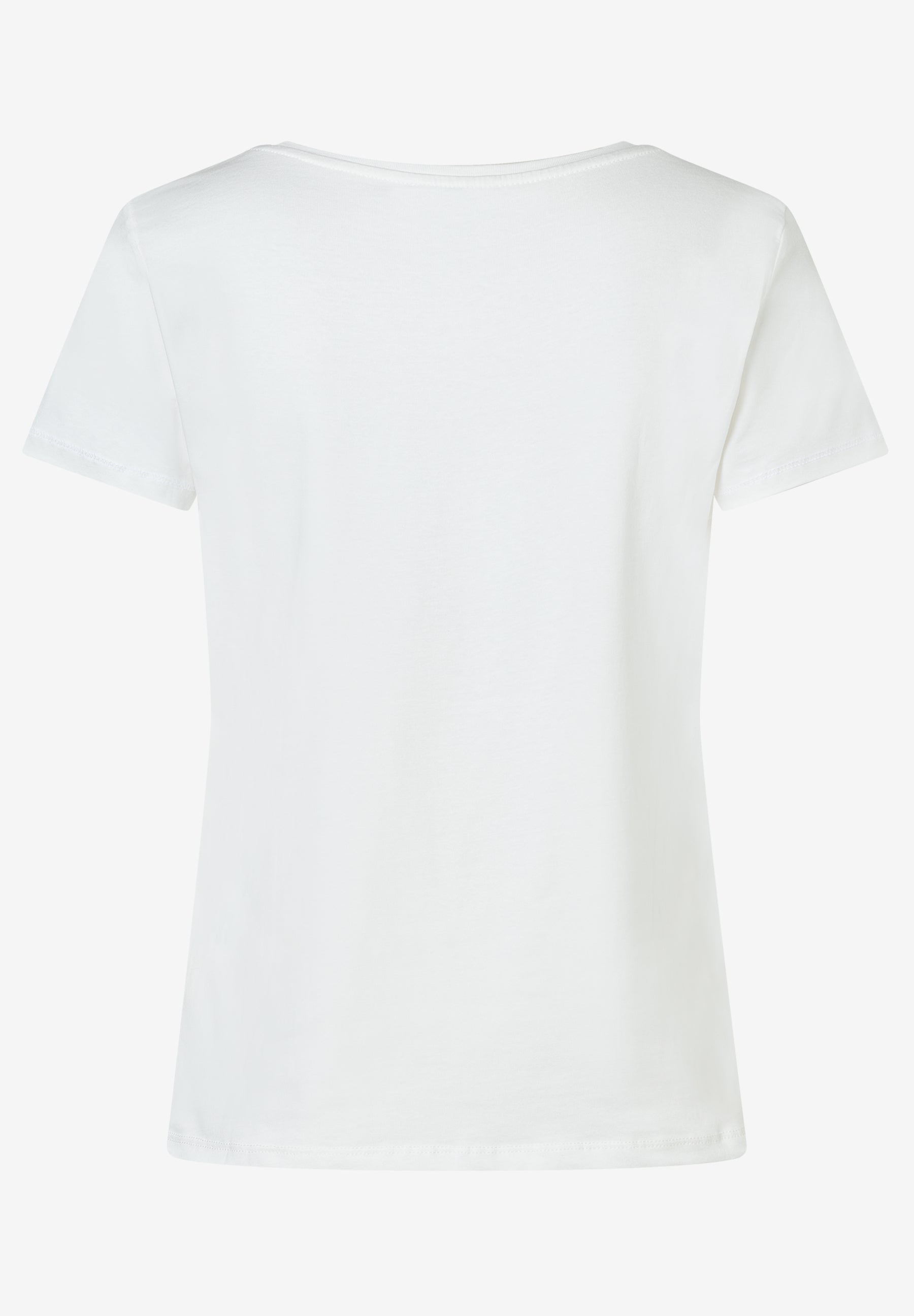 Das weiße Kurzarmshirt von MORE & MORE mit "LOVE" Schriftzug auf der Front ist ein toller Allrounder und bietet unzählige Stylingmöglichkeiten. Es sieht zur lässigen Jeans genauso gut aus, wie zum fließenden Meshrock oder zum klassischen Businessanzug.