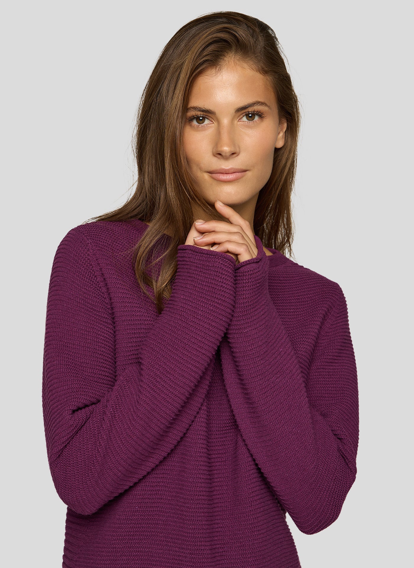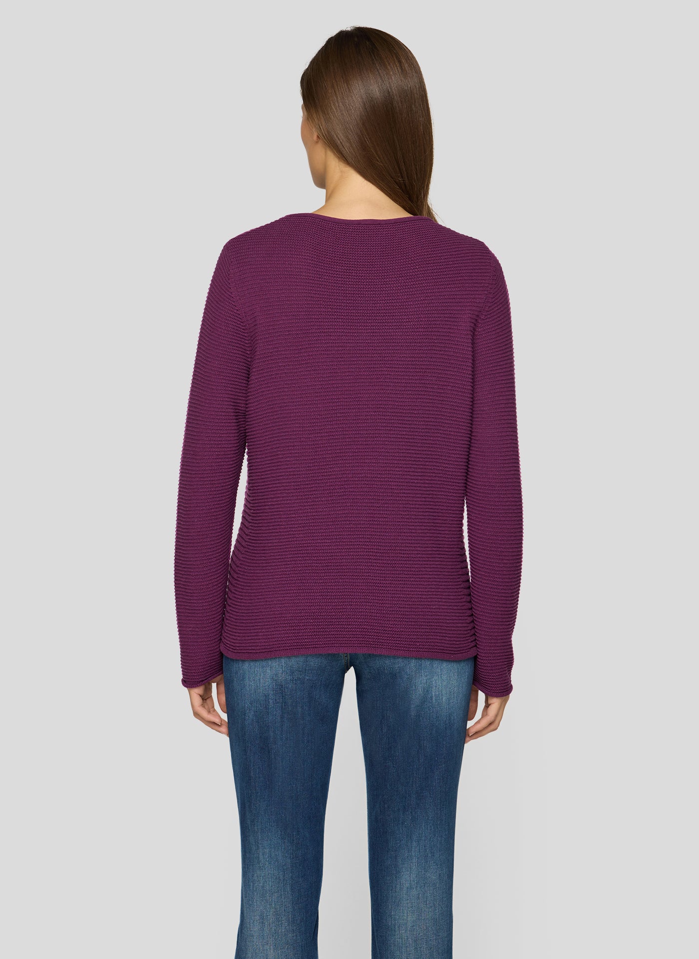 Pflegeleichter Strukturpullover mit angenehm weichem Griff. Der gerade Schnitt mit langem Arm und formstabilem Saumabschluss sorgt für hohen Tragekomfort. Der feine Rundhalsausschnitt ist etwas weiter geschnitten und rundet das puristische Design stimmig ab. Pflegeleichtes Material. Weit geschnittener Rundhalsausschnitt. Strukturiertes Strickbild. Gerader Saumabschluss. Bequeme Passform.