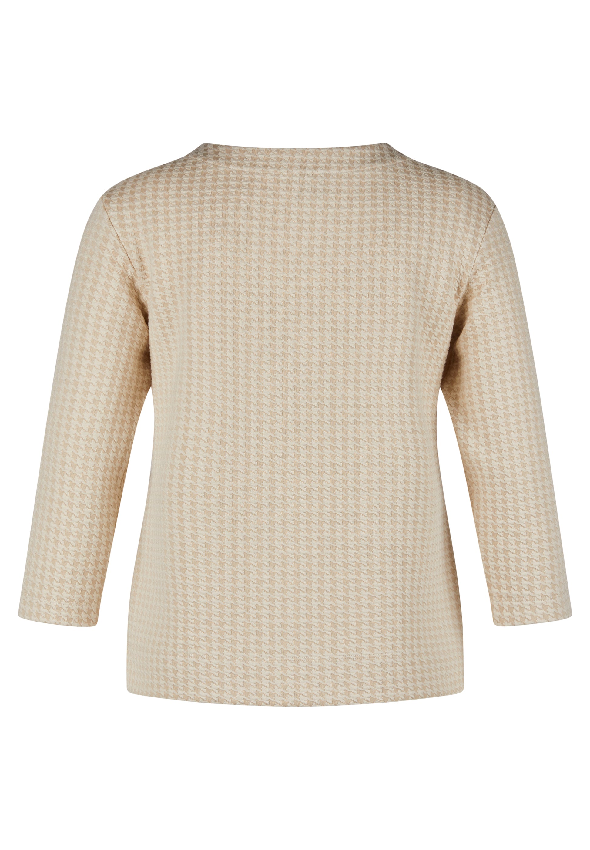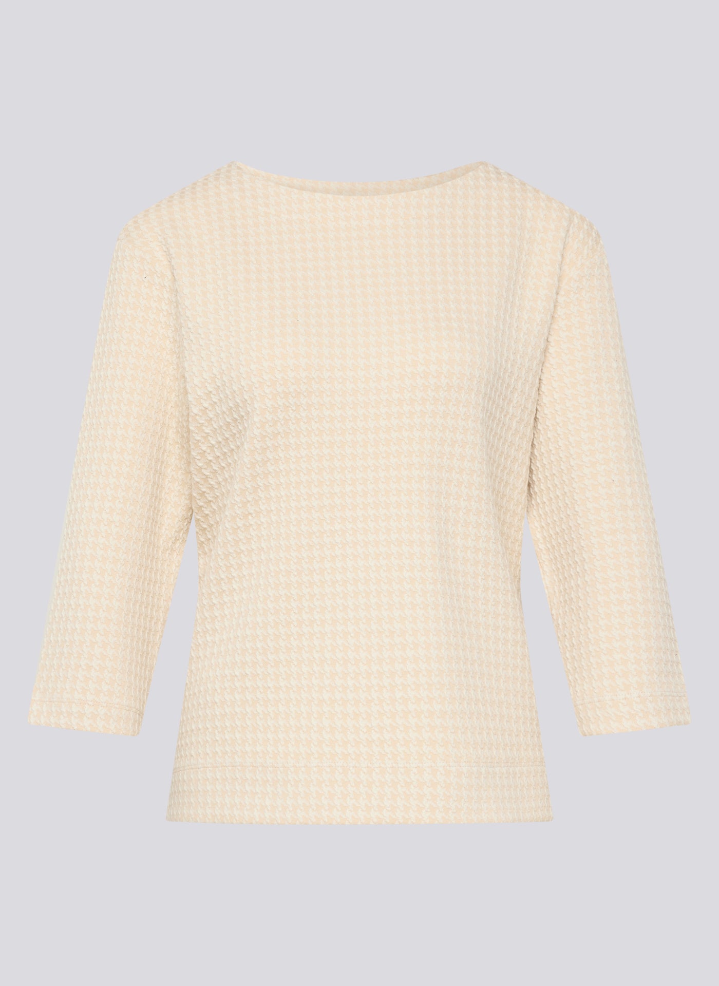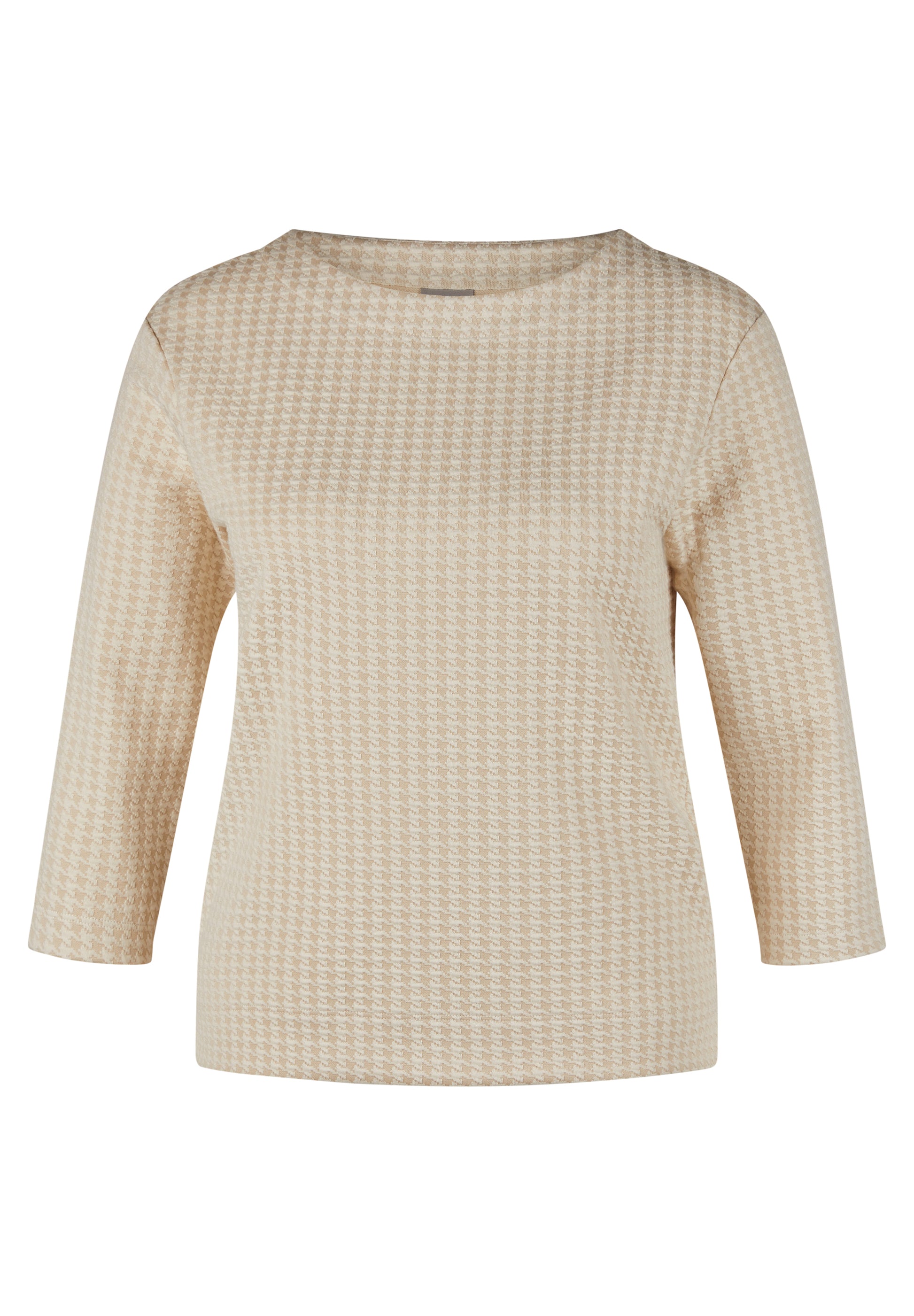 Dieses Shirt mit dezentem Hahnentritt-Muster überzeugt durch klare Linien und eine feminine Silhouette. Der elegante U-Boot-Ausschnitt und die halblangen Ärmel unterstreichen den zeitlosen Look. Dank pflegeleichtem Materialmix mit Baumwolle bietet das Shirt ein angenehmes Tragegefühl und ist vielseitig kombinierbar _ ob zu Jeans oder Stoffhose. Pflegeleichtes Mischgewebe. Hahnentritt-Muster. Leichter U-Boot-Ausschnitt. Halblange Ärmel.