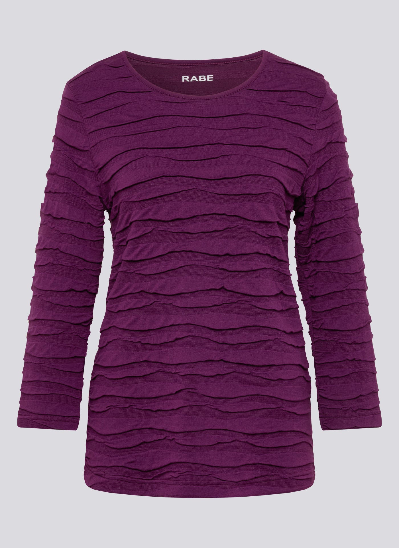 Figurnah geschnittenes Shirt mit lebendiger Struktur aus weichem Jersey. Die gewellte 3D-Optik verleiht dem unifarbenen Design Tiefe und Bewegung. Mit Rundhalsausschnitt und 3/4-Ärmeln ideal für vielseitige Kombinationen _ ob casual oder etwas schicker. Angenehm elastisch und pflegeleicht. Lebendige Wellen-Struktur. Weiche Jersey-Qualität. Figurnahe Passform. Pflegeleichtes Material. 3/4-Ärmel.