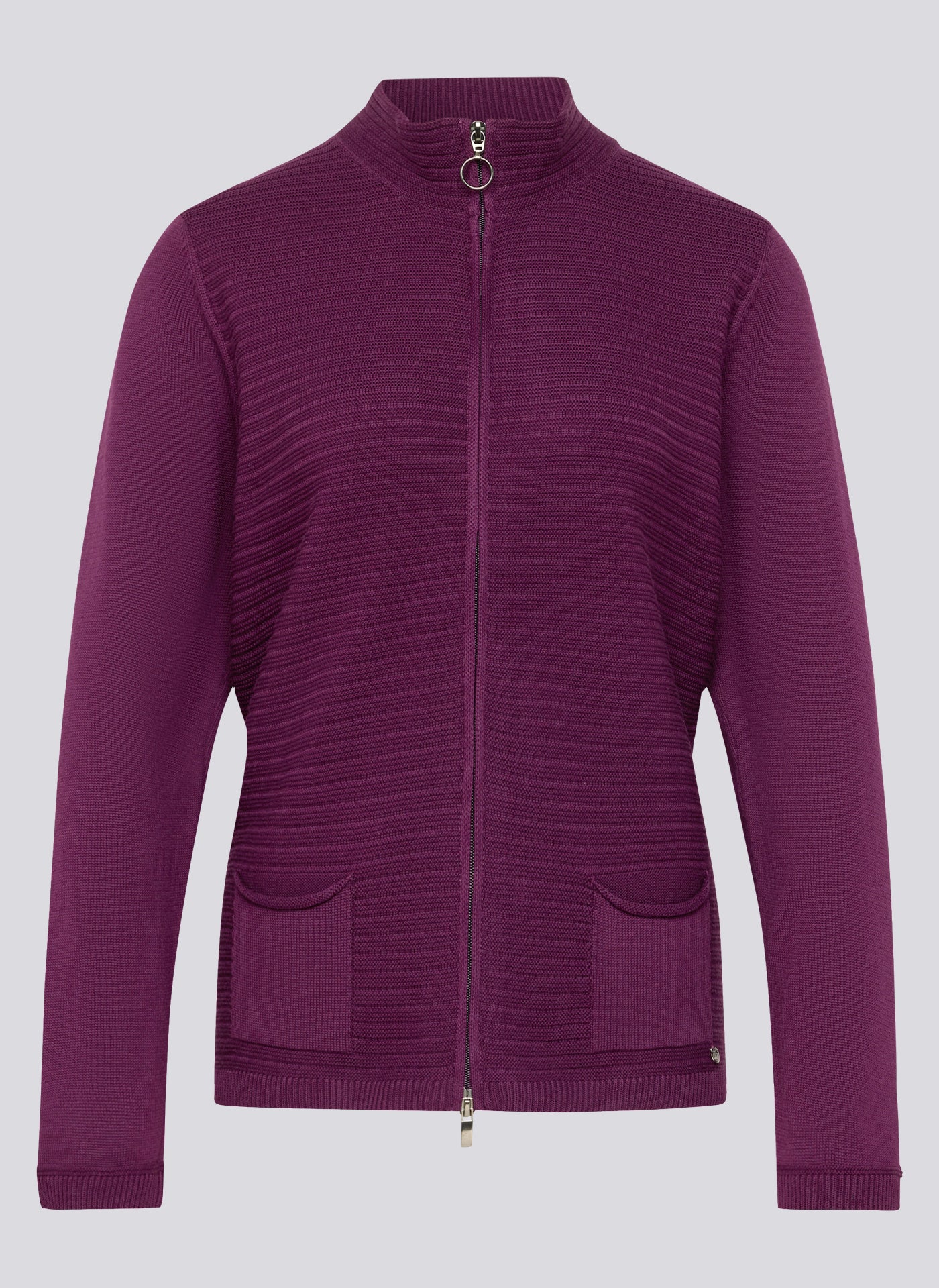 Diese Jacke vereint Tragekomfort mit klarer Linienführung. Der Reißverschluss mit rundem Zipper verleiht dem Look eine moderne Note, während das feine Strukturmuster dem Design Tiefe gibt. Zwei aufgesetzte Taschen bieten praktischen Stauraum. Der gerade Schnitt macht sie vielseitig kombinierbar _ ideal für den Alltag. Weiche Baumwollmischung. Mit aufgesetzten Taschen. Strukturstrick. Hochgeschlossener Stehkragen. 2-Wege-Zipper mit Ring-Zipperpuller.