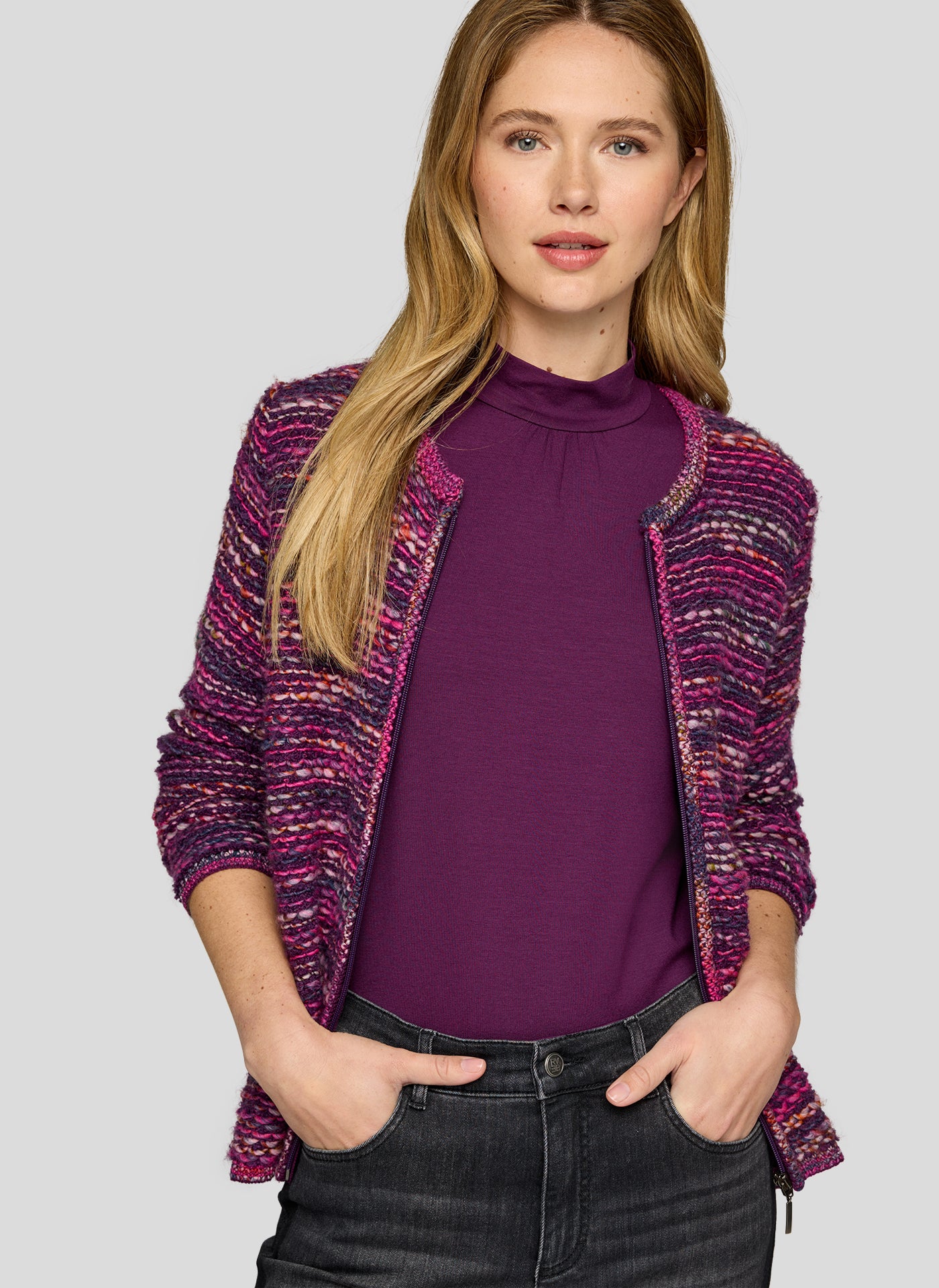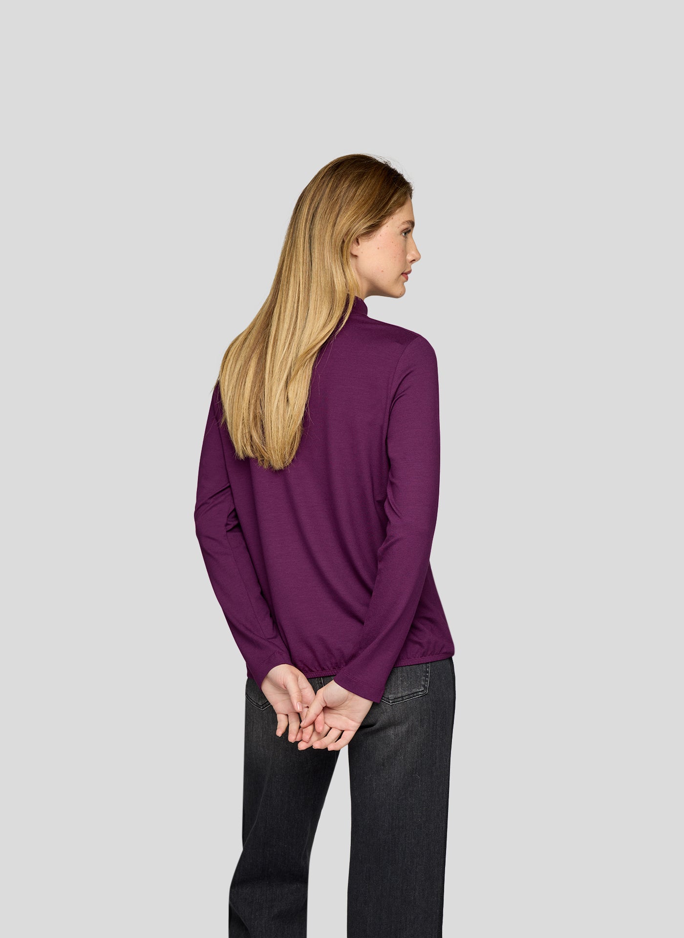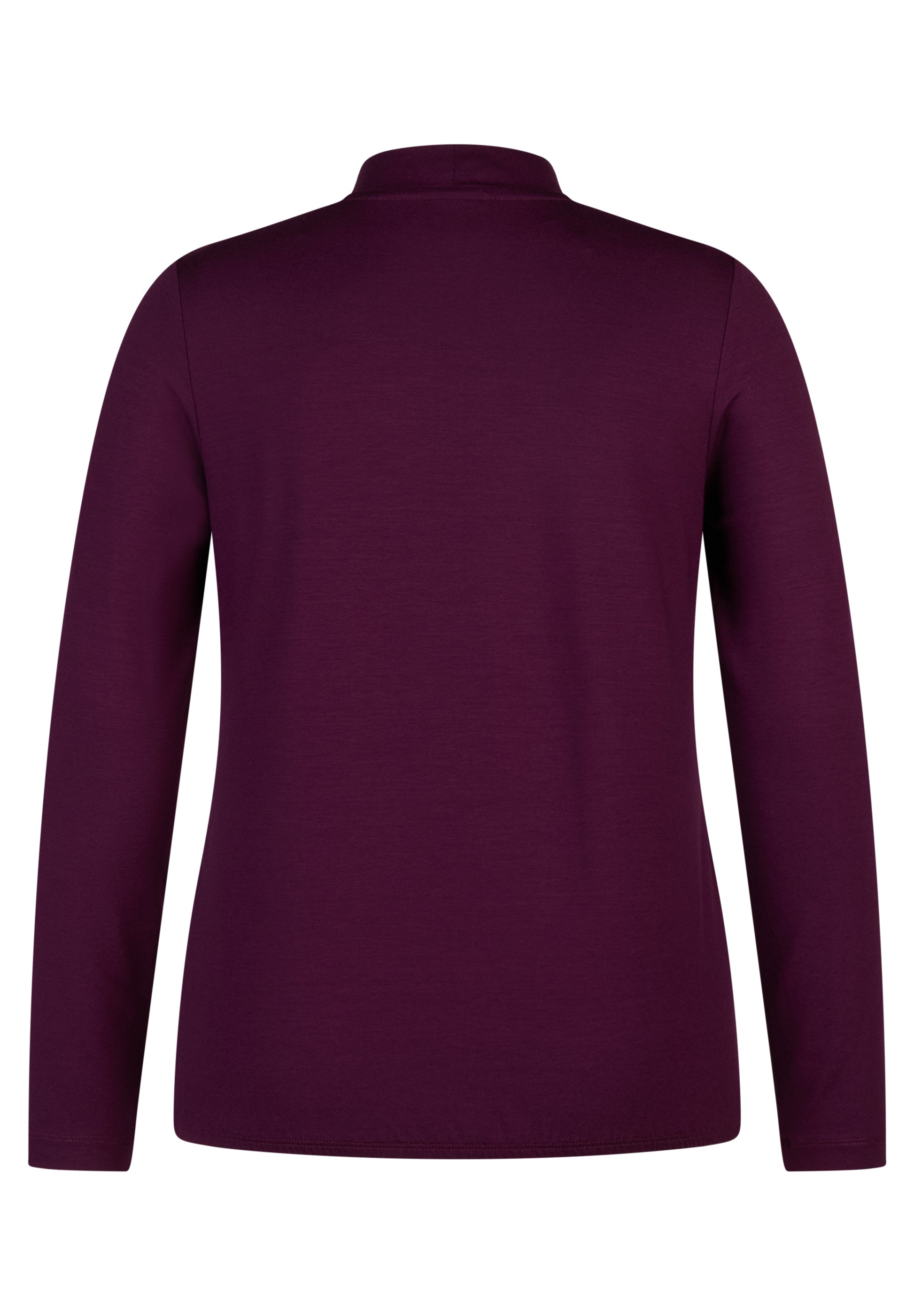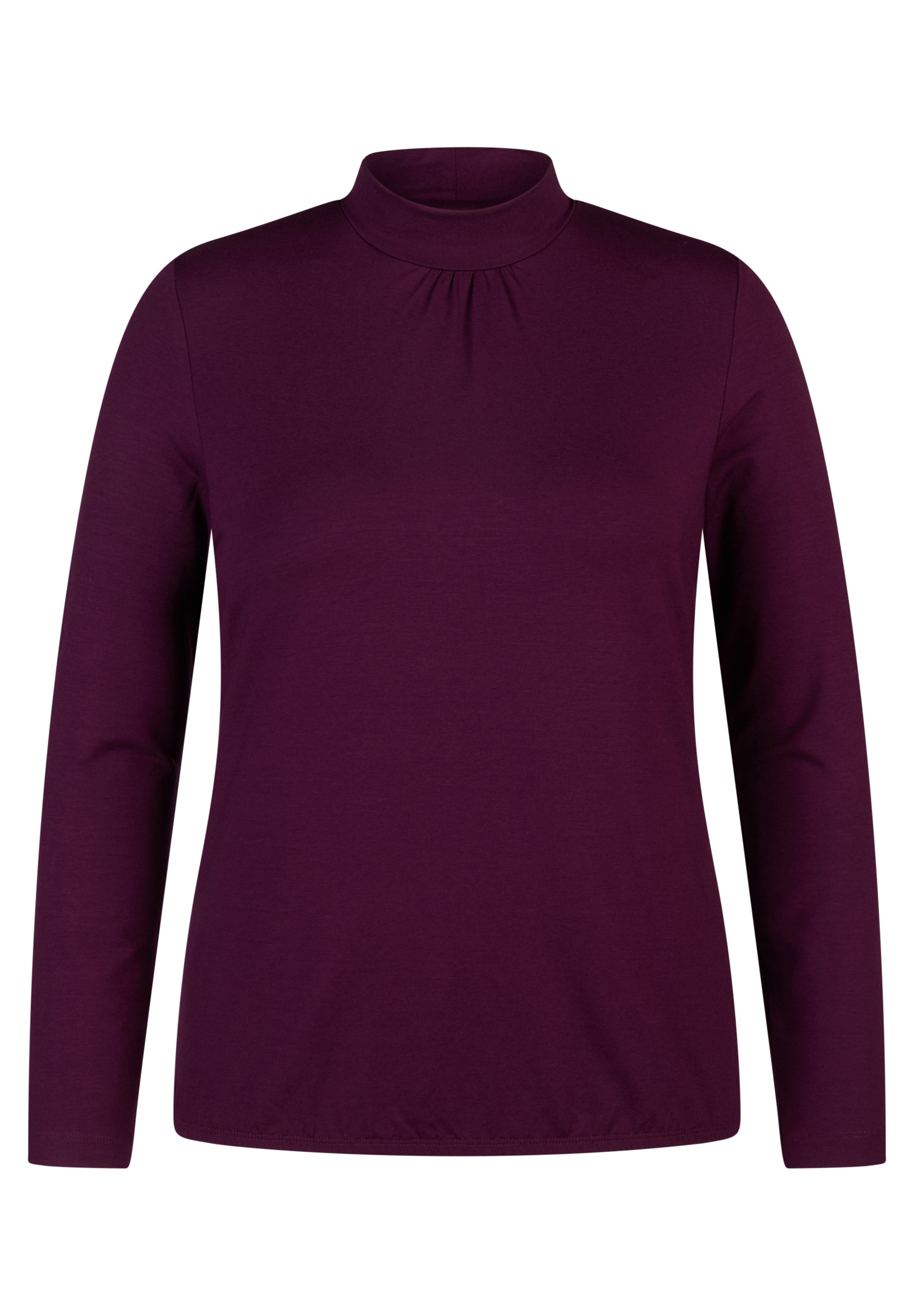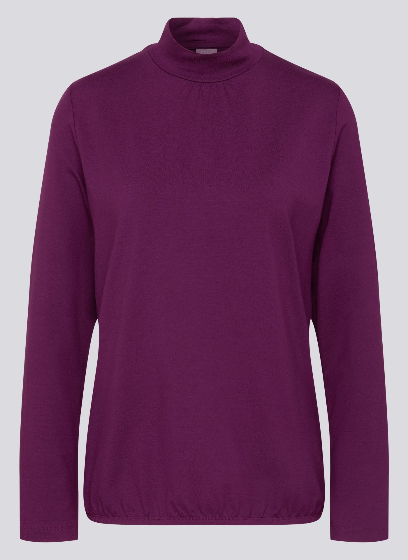 Ein vielseitiger Begleiter für jeden Tag: Dieses Langarmshirt überzeugt mit einem kleinen Stehkragen, der dem Look eine elegante Note verleiht. Die dezente Raffung am Ausschnitt sorgt für eine feminine Silhouette, während das elastische Material für angenehmen Tragekomfort sorgt. Kleiner Stehkragen mit Raffung. Elastischer Saumabschluss. Bequemer Viskose-Elasthan-Mix. Pflegeleicht und formstabil. Ideal für Alltag und Büro.