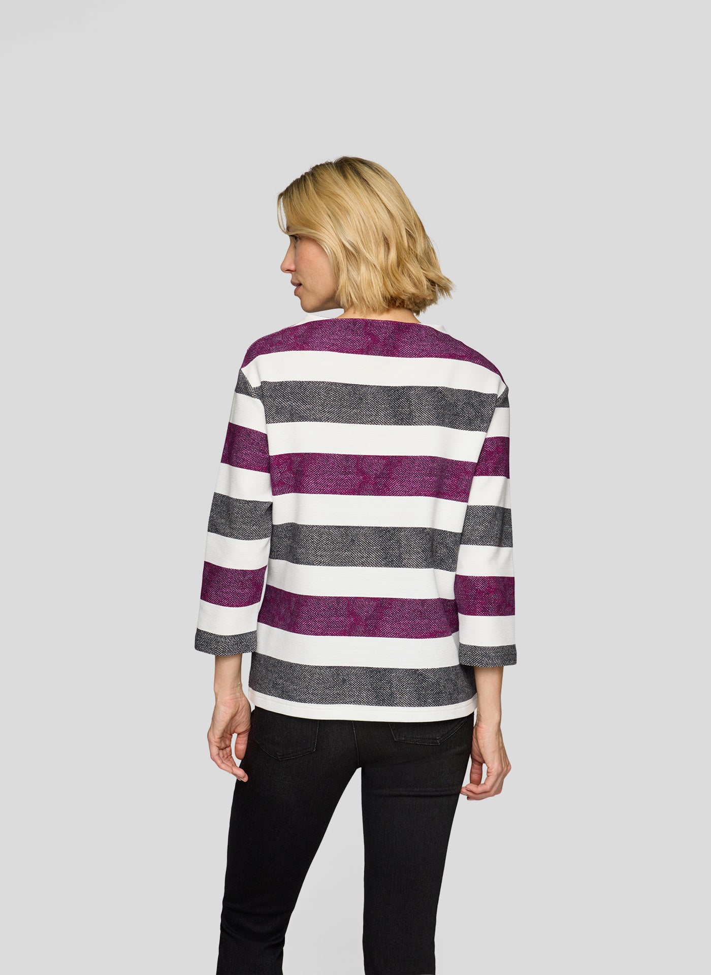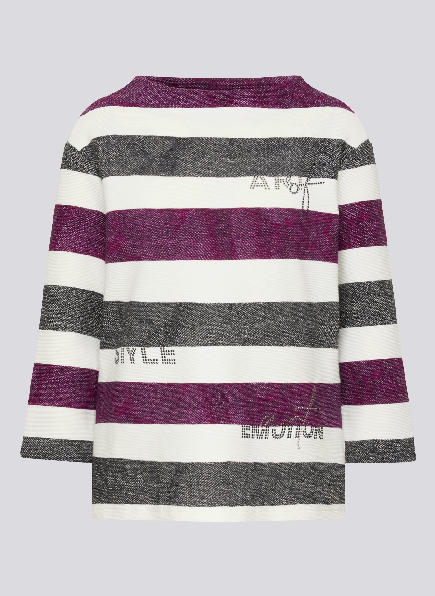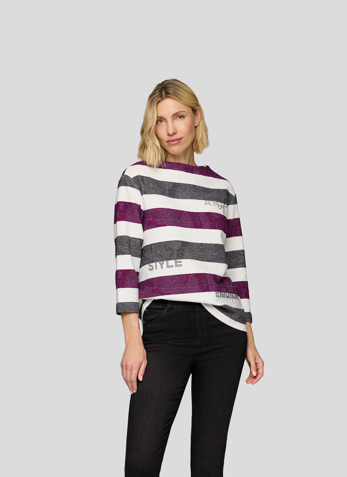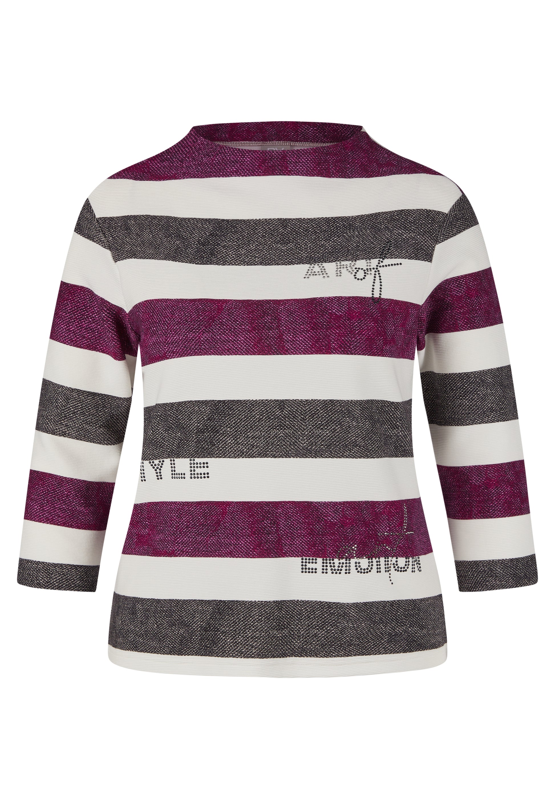 Der moderne U-Boot-Ausschnitt trifft auf breite Streifen in gedeckten Farben und sorgt für einen stilvollen Alltagslook. Glitzernde Strassdetails auf der Vorderseite setzen dezente Highlights und verleihen dem Shirt eine feminine Note. Die weiche Baumwollmischung liegt angenehm auf der Haut und ist besonders pflegeleicht _ ideal für jeden Tag. Dekorative Strassdetails. 3/4-lange Ärmel. U-Boot-Ausschnitt. Pflegeleichte Baumwollmischung.