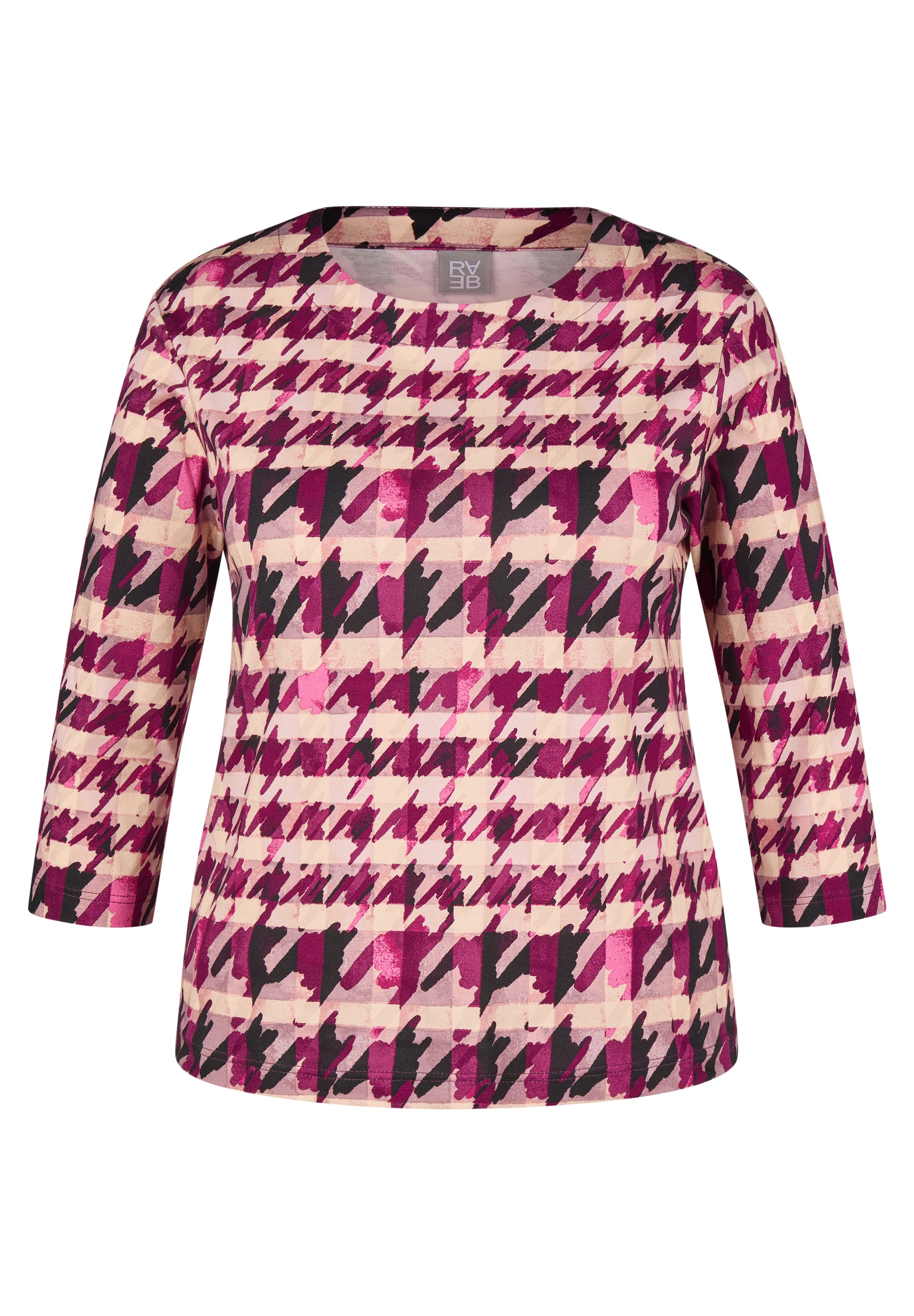 Diese weich fallende Bluse begeistert mit einem auffälligen, großflächigen Muster und legerem Schnitt. Reine Baumwolle sorgt für ein angenehmes Tragegefühl, die 3/4-Ärmel runden den Look modisch ab. Weiter Rundhalsausschnitt. Reine Baumwollqualität. Abstraktes Hahnentritt-Dessin. 3/4-lange Ärmel. Trageangenehm und pflegeleicht.