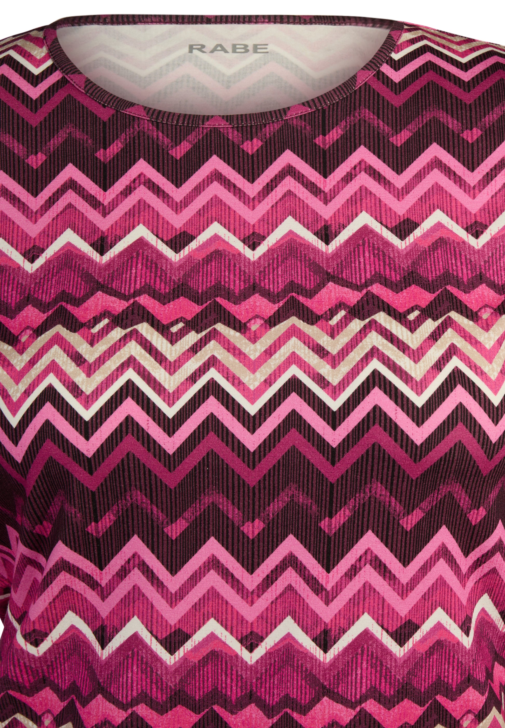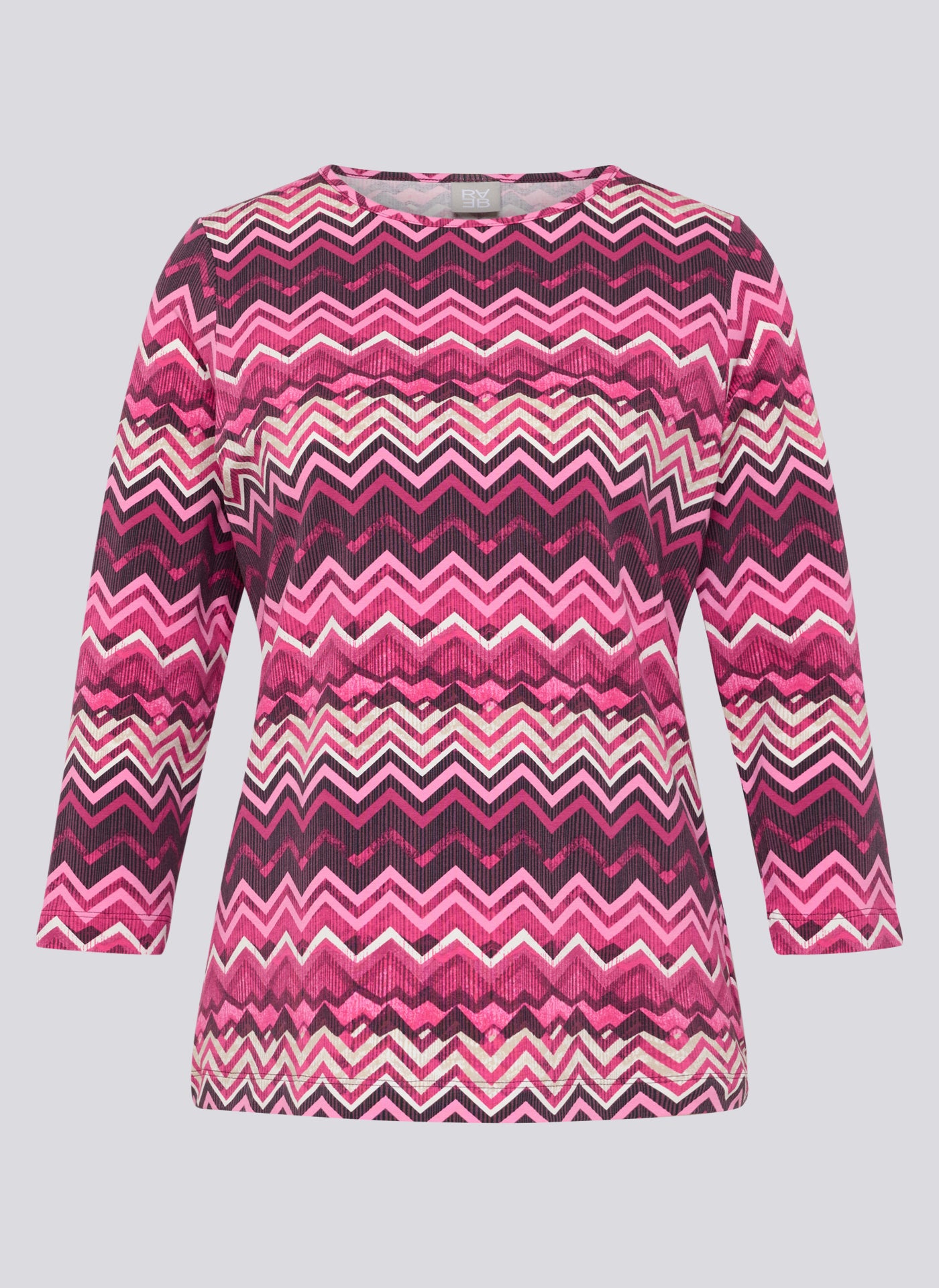 Das gemusterte Shirt setzt auf ein lebendiges Zickzack-Design in harmonisch abgestimmten Tönen. Der klassische Rundhalsausschnitt sorgt für eine zeitlose Note, während der Stretch-Anteil hohen Tragekomfort garantiert. Der Schnitt ist figurumspielend und bietet viel Bewegungsfreiheit _ ideal für den Alltag oder den entspannten City-Look. Der angenehme Baumwollmix liegt weich auf der Haut. Weicher Baumwollmix mit Stretch. Rundhalsausschnitt. Allover-Zickzack-Muster. 3/4-Arm. Pflegeleicht.