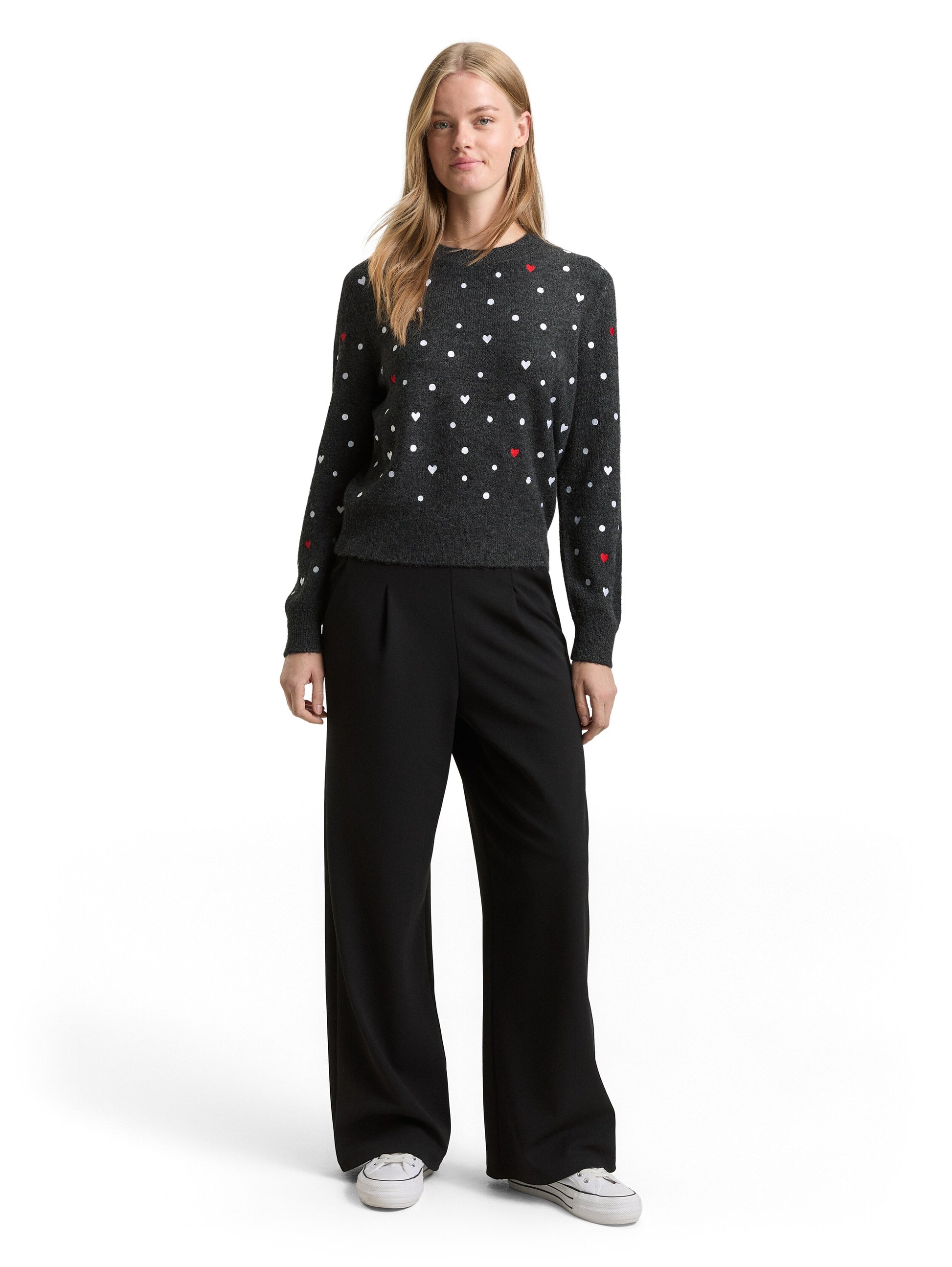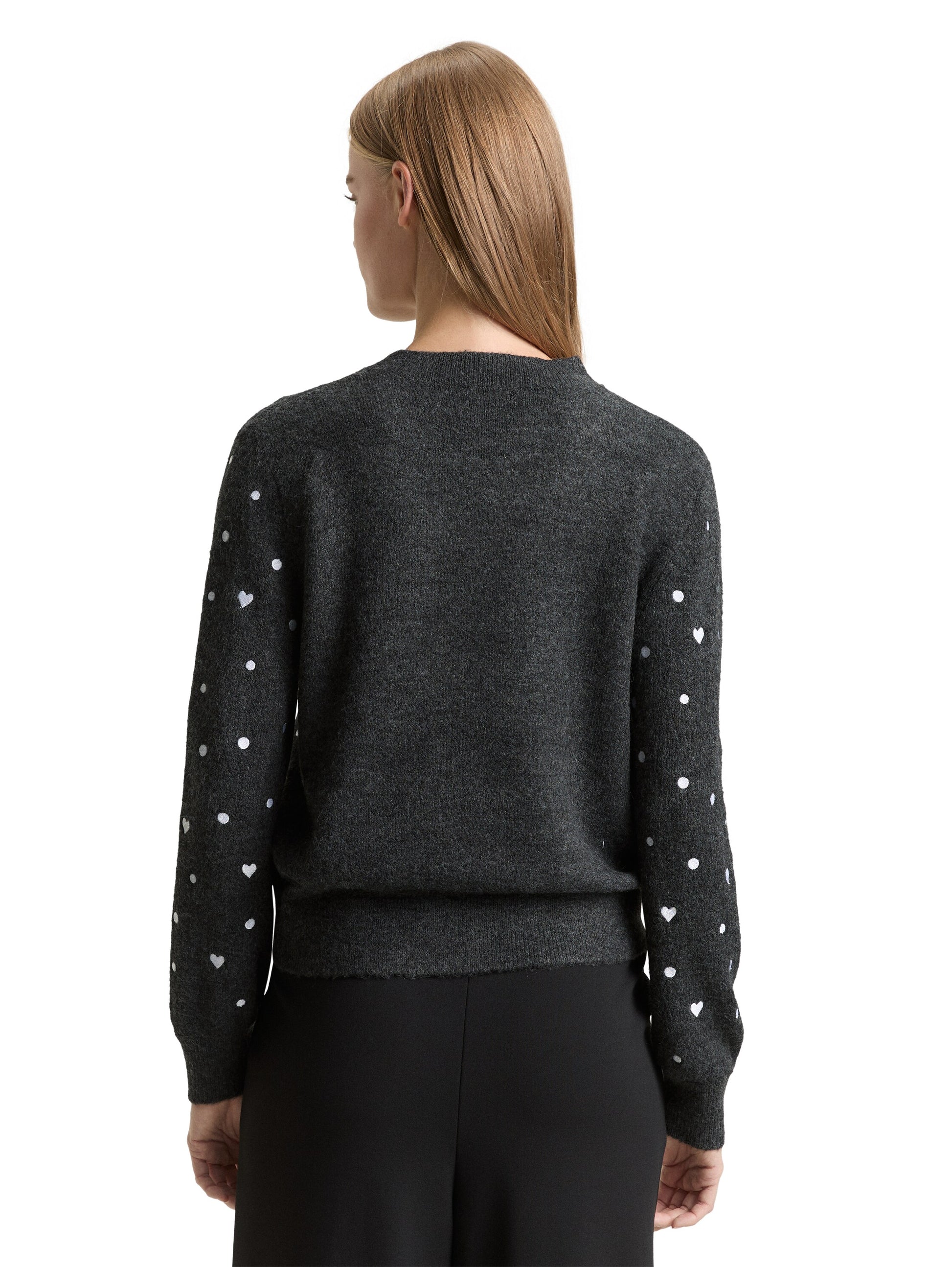 Weicher Pullover mit Herz- und Punkt-Stickereien auf der Vorderseite und an den Ärmeln