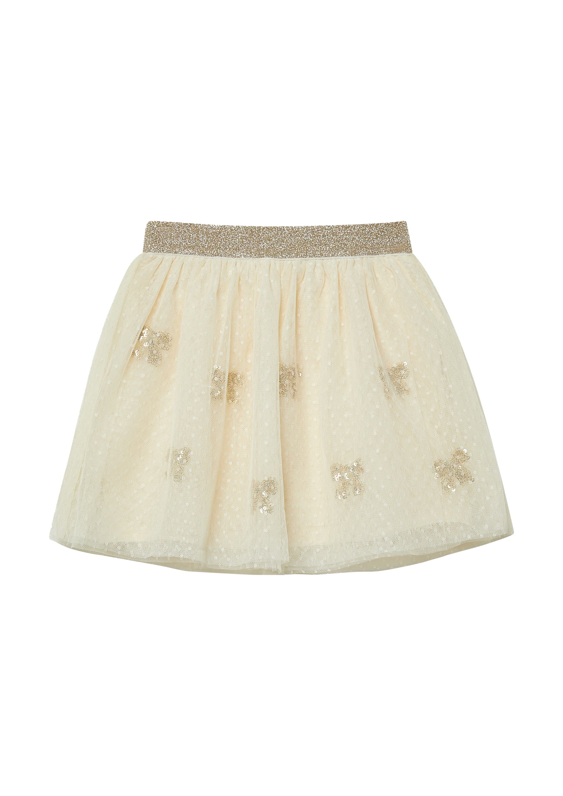 Verspielter Mesh-Rock mit glitzernden Pailletten und festlichem Punktemuster. Der ausgestellte Schnitt mit elastischem Glitzerbund tanzt bei jeder Bewegung. Das blickdichte Jerseyfutter sorgt für angenehmen Tragekomfort. Ein glamouröser Begleiter für besondere Anlässe.