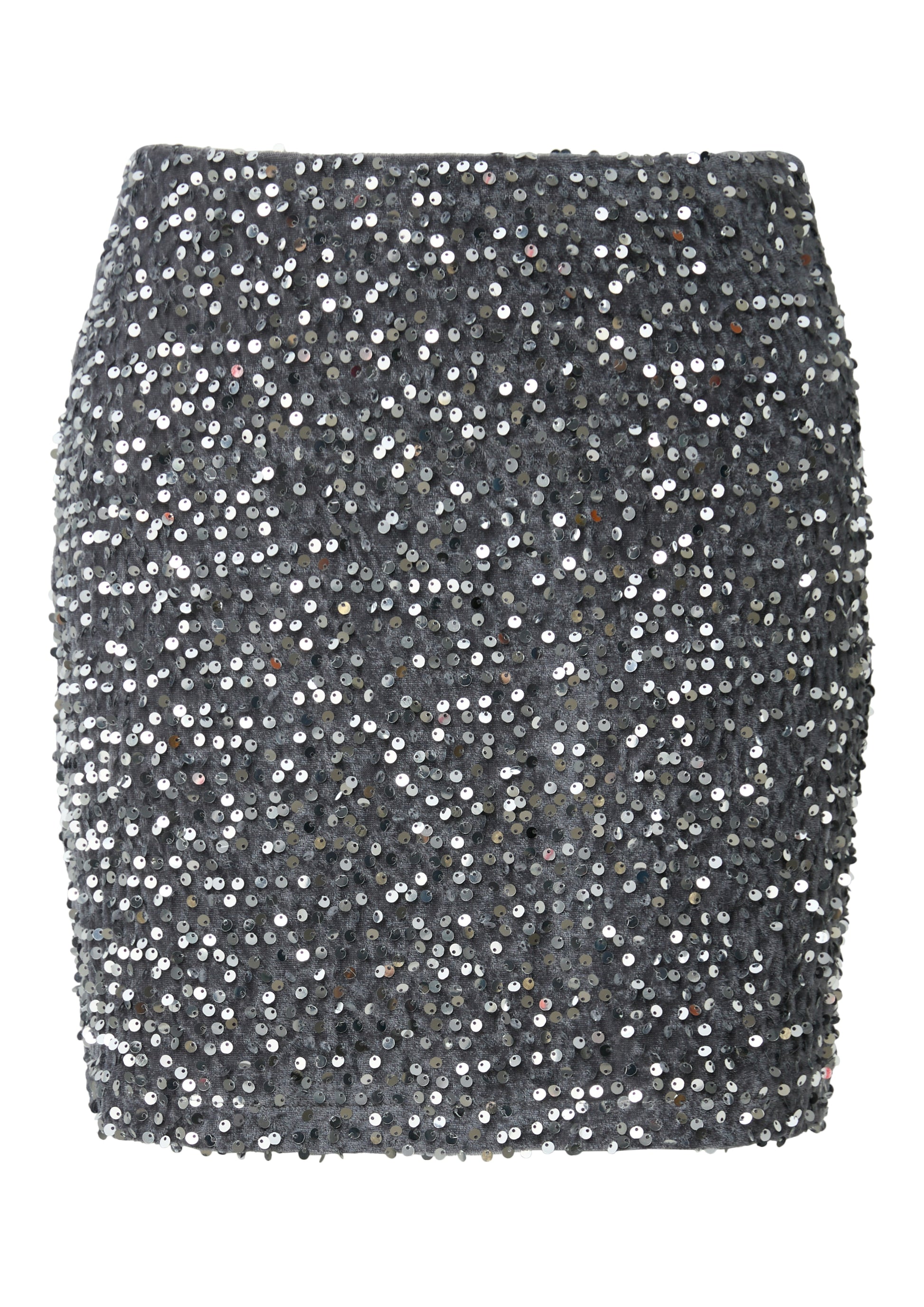 Dieser Paillettenrock aus weichem Samt bringt glamourösen Glanz in deine Partynächte. Die funkelnden Pailletten setzen dich perfekt in Szene, während die elastische Slim Fit-Passform für den idealen Sitz sorgt. Mit Mid Rise-Bund und verdecktem Reißverschluss wird dieser Mini zum femininen Statement-Piece, das jeden Auftritt unvergesslich macht.