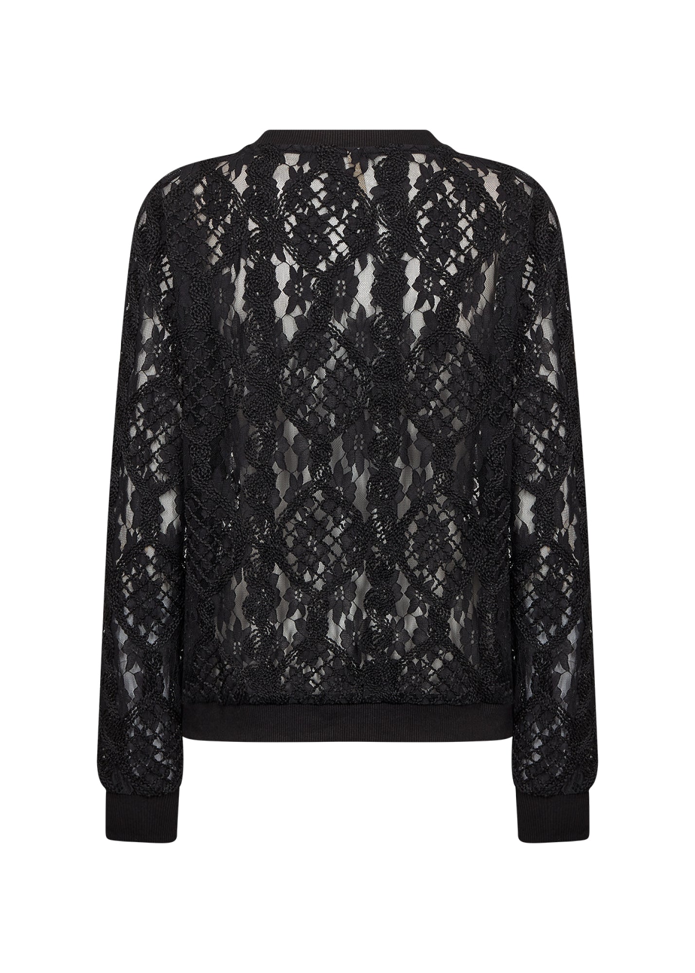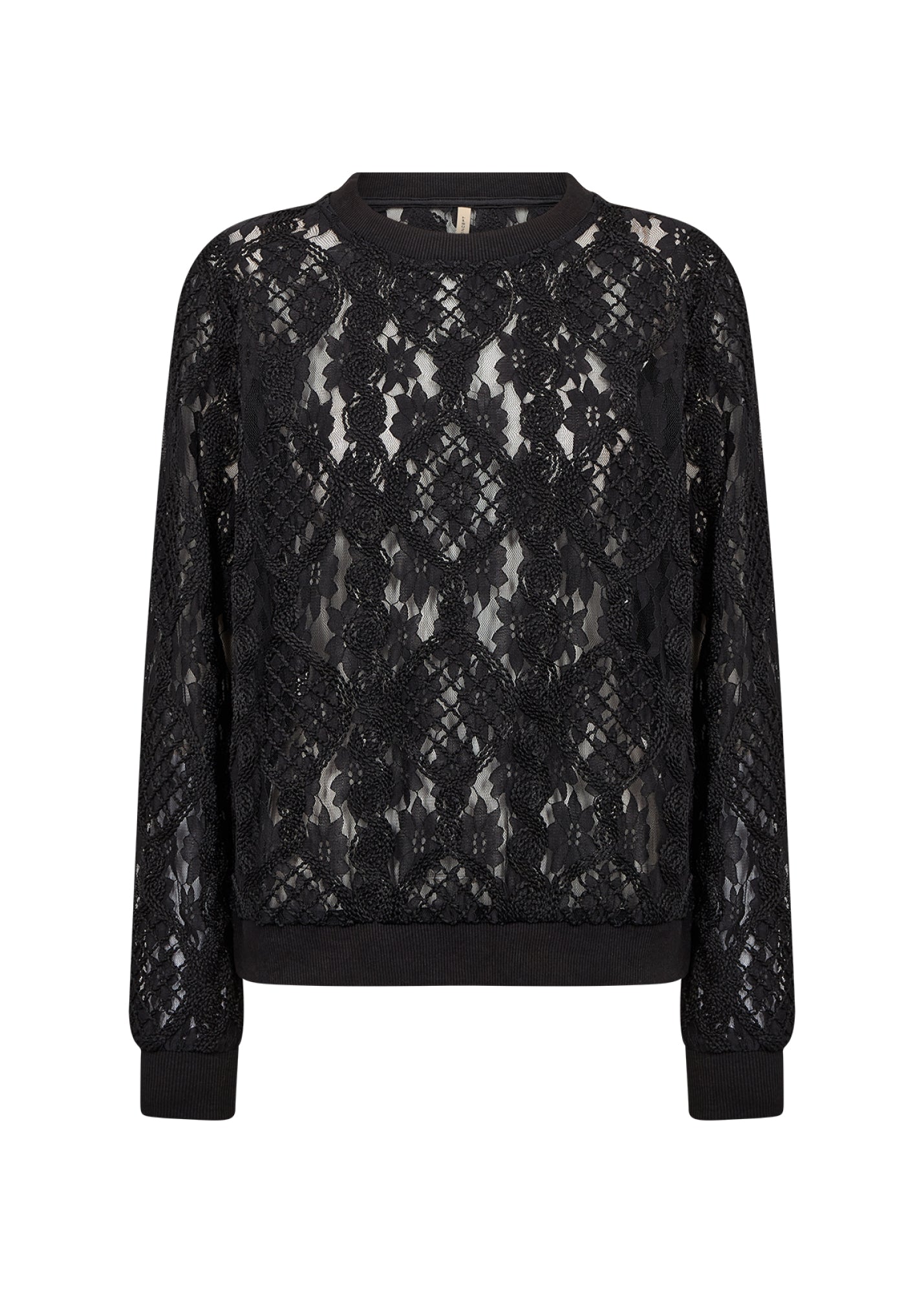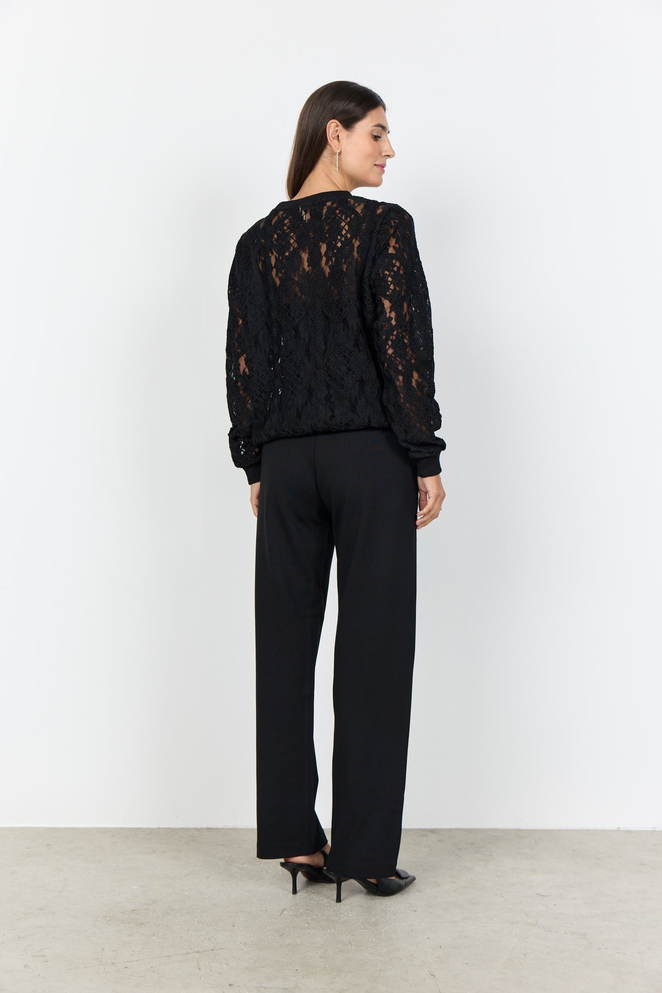 Die Bluse SC-ALHAM 2 besteht aus 88% recyceltem Polyester, 10% Nylon und 2% Elastan. Sie hat einen zarten Spitzenüberzug mit gerippten Bündchen und einen Rundhalsausschnitt, der ihr ein elegantes Aussehen verleiht. Kombiniere sie mit einer maßgeschneiderten Hose für einen raffinierten Look oder mit einer lässigen Jeans für einen entspannten Stil.