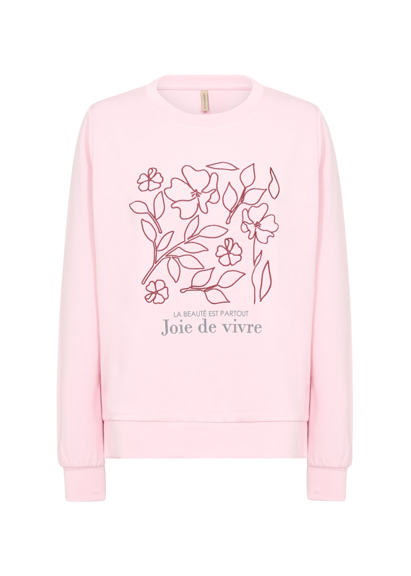 SC-BANU 287 ist ein Sweatshirt aus 48% Modal, 48% Polyester, 4% Elastan. Es hat einen Rundhalsausschnitt, Bündchen und einen Blumenprint mit Text auf der Vorderseite. Kombiniere es mit Jeans oder Freizeithosen für einen stilvollen Look.