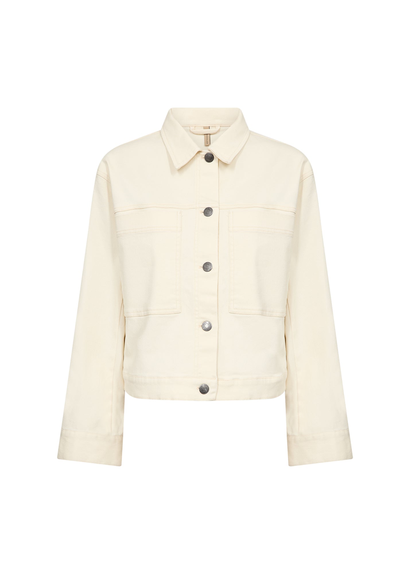Die SC-BESS 1 Jacke ist aus 97% Bio-Baumwolle und 3% Elasthan gefertigt. Sie hat einen klassischen Kragen, eine geknöpfte Vorderseite, lange Ärmel und zwei Brusttaschen. Kombinieren Sie sie mit Jeans oder einem Rock für einen coolen und lässigen Look.