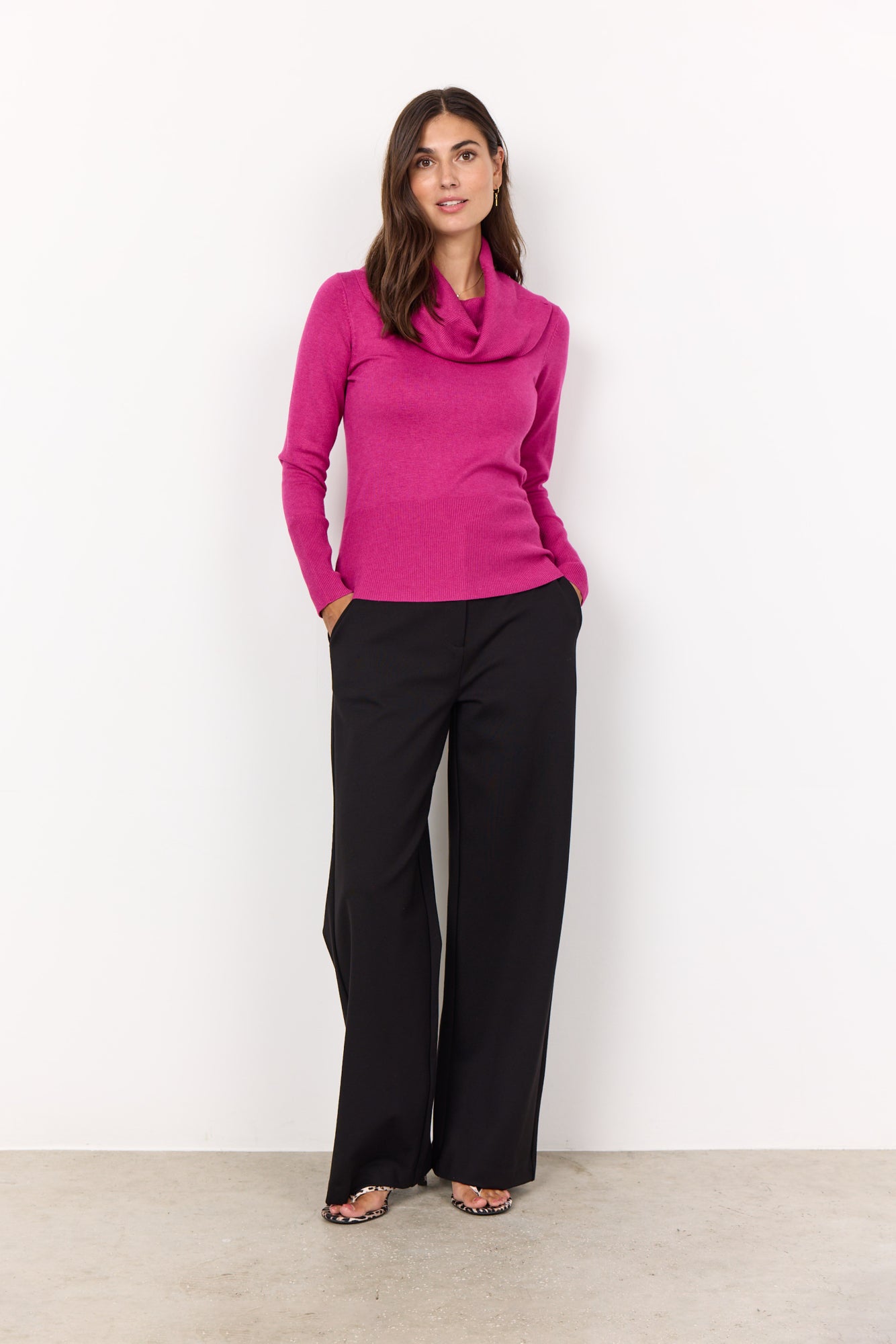 SC-Dollie 305 ist ein schöner Rollkragenpullover in Viskose-Nylon-Qualität. Der Rollkragenpullover hat ein zerrissenes Strickmuster, lange Ärmel und einen lockeren Rollkragen. Kombiniere dieses Stück mit einem schönen Anzug für einen klassischen Look mit einem Twist.