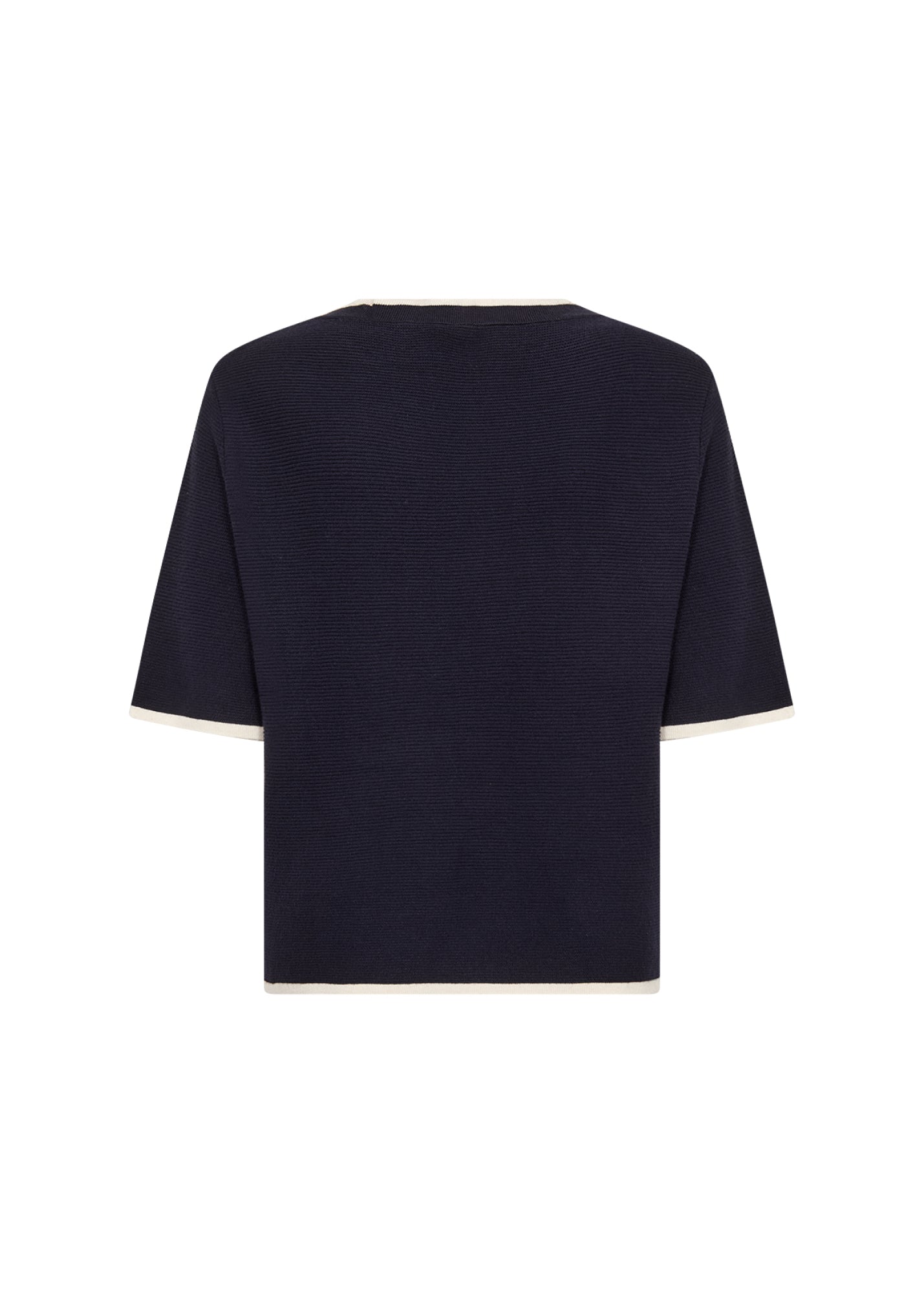 SC-DOLLIE 793 ist ein Pullover aus 75% Viskose und 25% Nylon. Der runde Halsausschnitt mit kontrastierendem Saum und die kurzen Ärmel verleihen ihm einen Hauch von Eleganz. Kombinieren Sie ihn mit einer maßgeschneiderten Hose oder einem eleganten Rock für einen eleganten Look.