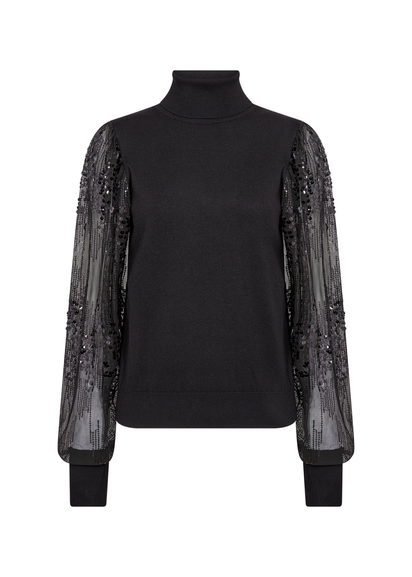 SC-DOLLIE 803 ist ein Pullover, der aus 75% Viskose und 25% Nylon gefertigt ist. Der elegante Pullover hat einen hohen Ausschnitt, zarte, mit Pailletten besetzte Netzärmel und einen klassischen gerippten Saum. Er lässt sich perfekt mit maßgeschneiderten Hosen für einen raffinierten Look oder mit Denim für lässige Eleganz kombinieren.