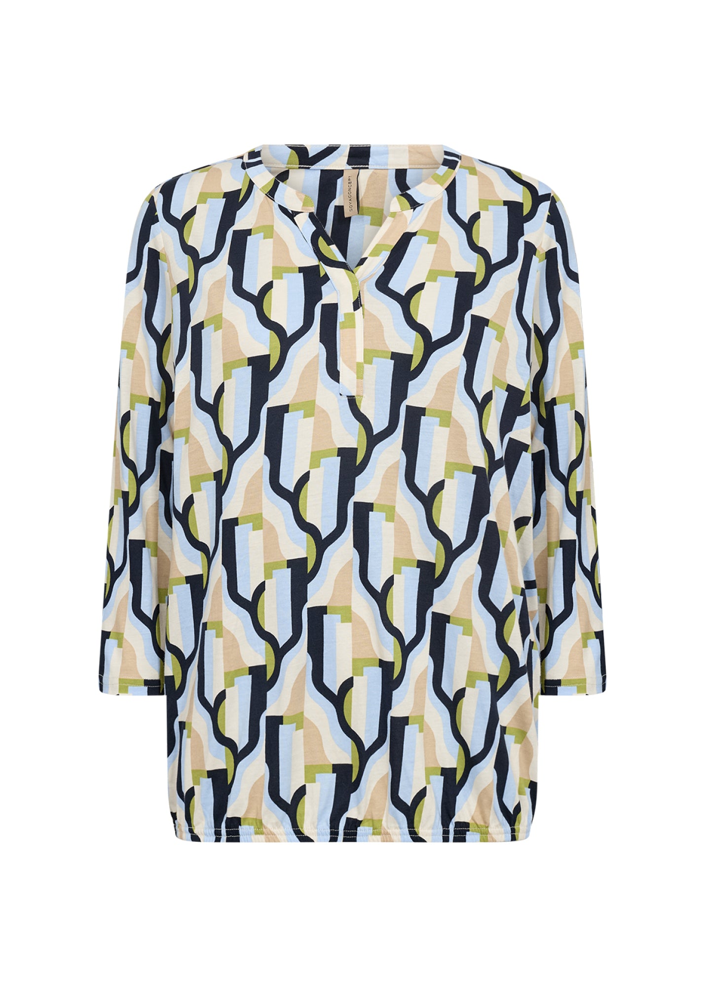 Die Bluse SC-FELICITY AOP 534 besteht aus 50% Bio-Baumwolle und 50% Viskose. Sie hat einen Rundhalsausschnitt, einen abstrakten Print und mittellange Ärmel. Kombinieren Sie sie mit einer maßgeschneiderten Hose oder Jeans für einen einzigartigen und eleganten Look.