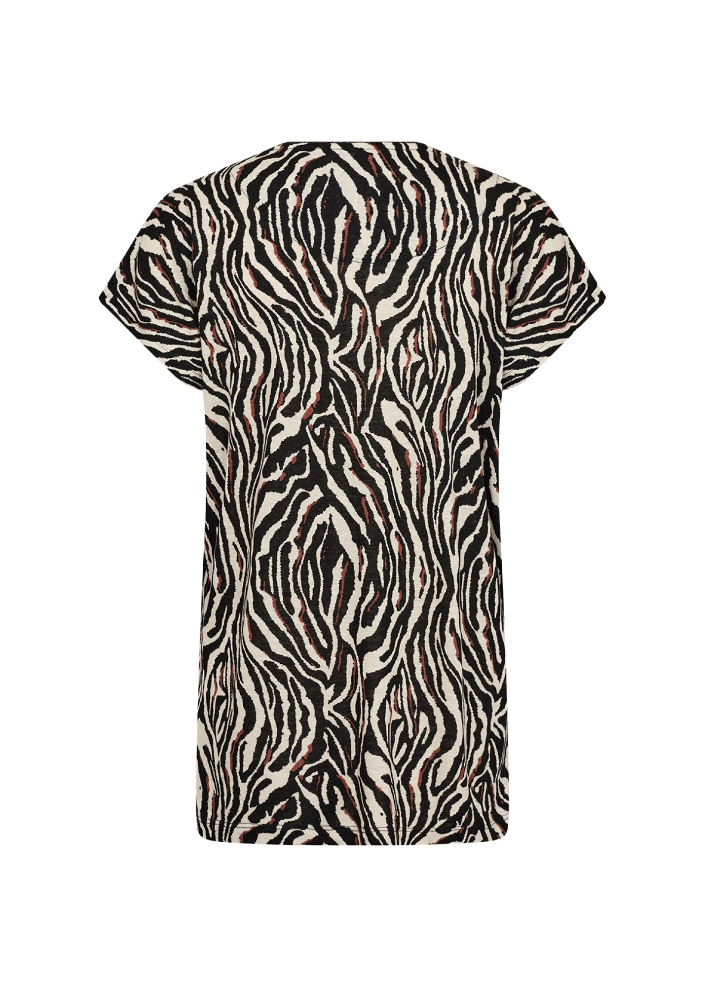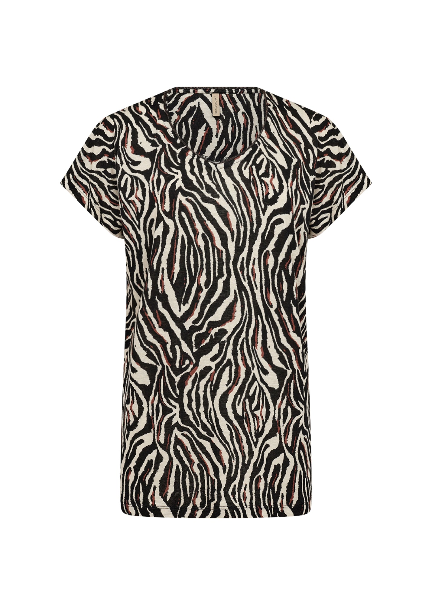 SC-LENISE 5 ist ein T-Shirt aus einer bequemen Mischung aus 55% Leinen und 45% Viskose. Das T-Shirt hat ein wildes Tierstreifenmuster, kurze Ärmel, einen Rundhalsausschnitt und einen gerade geschnittenen Saum für eine entspannte Passform. Dieses T-Shirt lässt sich sowohl mit lässigen Jeans als auch mit maßgeschneiderten Hosen kombinieren und sorgt so für eine Vielzahl von Looks.