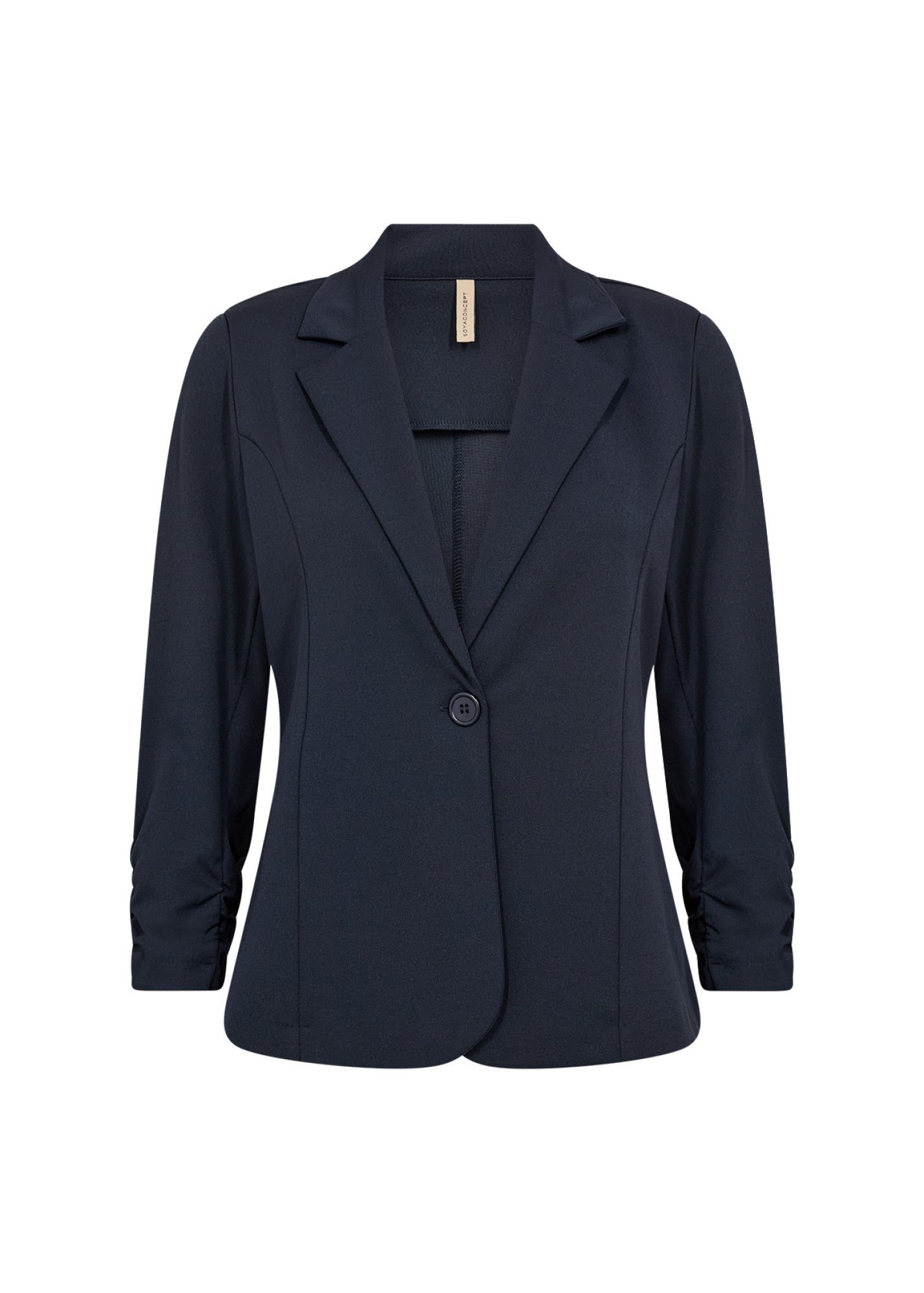 SC-SIHAM 97 ist ein Blazer aus 95% recyceltem Polyester und 5% Elastan. Er verfügt über ein klassisches gekerbtes Revers, einen Einknopfverschluss und gerüschte Ärmel, die ihm einen stilvollen Twist verleihen. Kombiniere ihn mit einer maßgeschneiderten Hose oder einem eleganten Rock für einen eleganten Look.