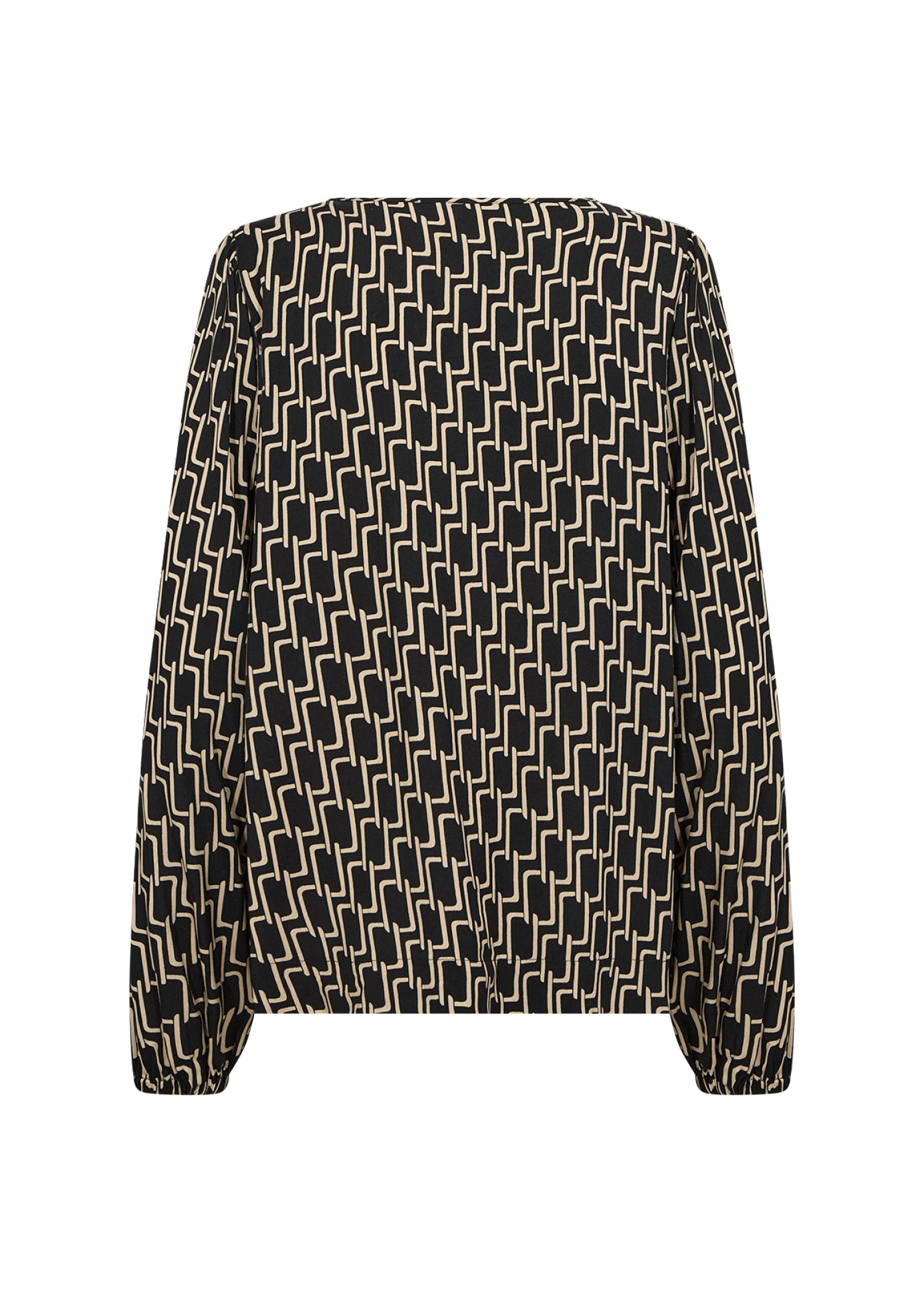 Die SC-VARLA 1 Bluse ist aus 100% LENZING™ ECOVERO™ Viskose gefertigt. Sie hat einen Rundhalsausschnitt, lange Ärmel mit elastischen Bündchen und einen geometrischen Print. Kombiniere sie mit einer maßgeschneiderten Hose für einen raffinierten Look oder mit Jeans für einen entspannten Stil.