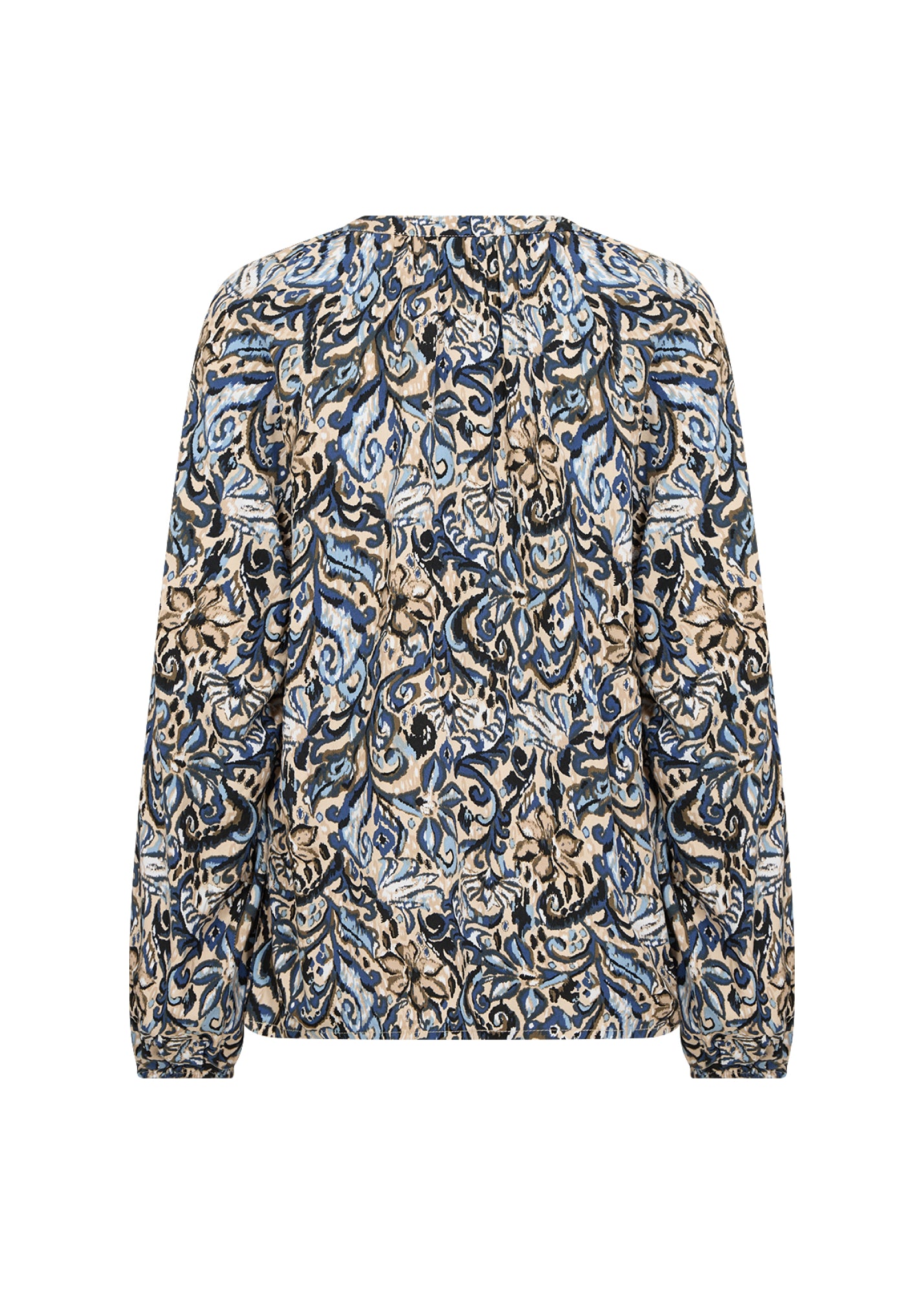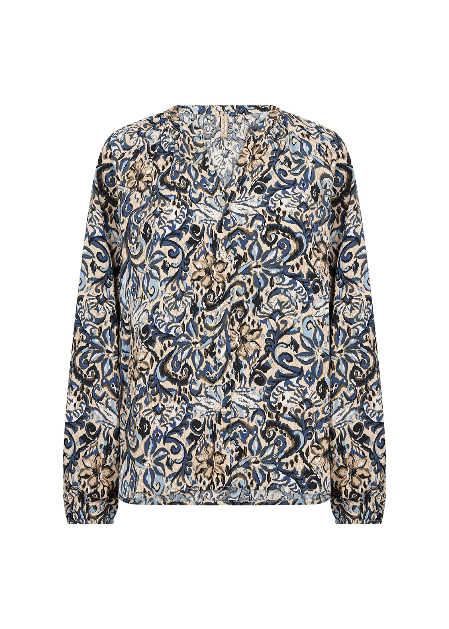 Das SC-VAVA 1 Shirt ist aus 100% LENZING™ ECOVERO™ Viskose gefertigt. Es hat einen V-Ausschnitt, lange Ärmel und einen auffälligen, verschlungenen Druck. Kombiniere es mit einer maßgeschneiderten Hose oder Jeans für einen stilvollen Look.