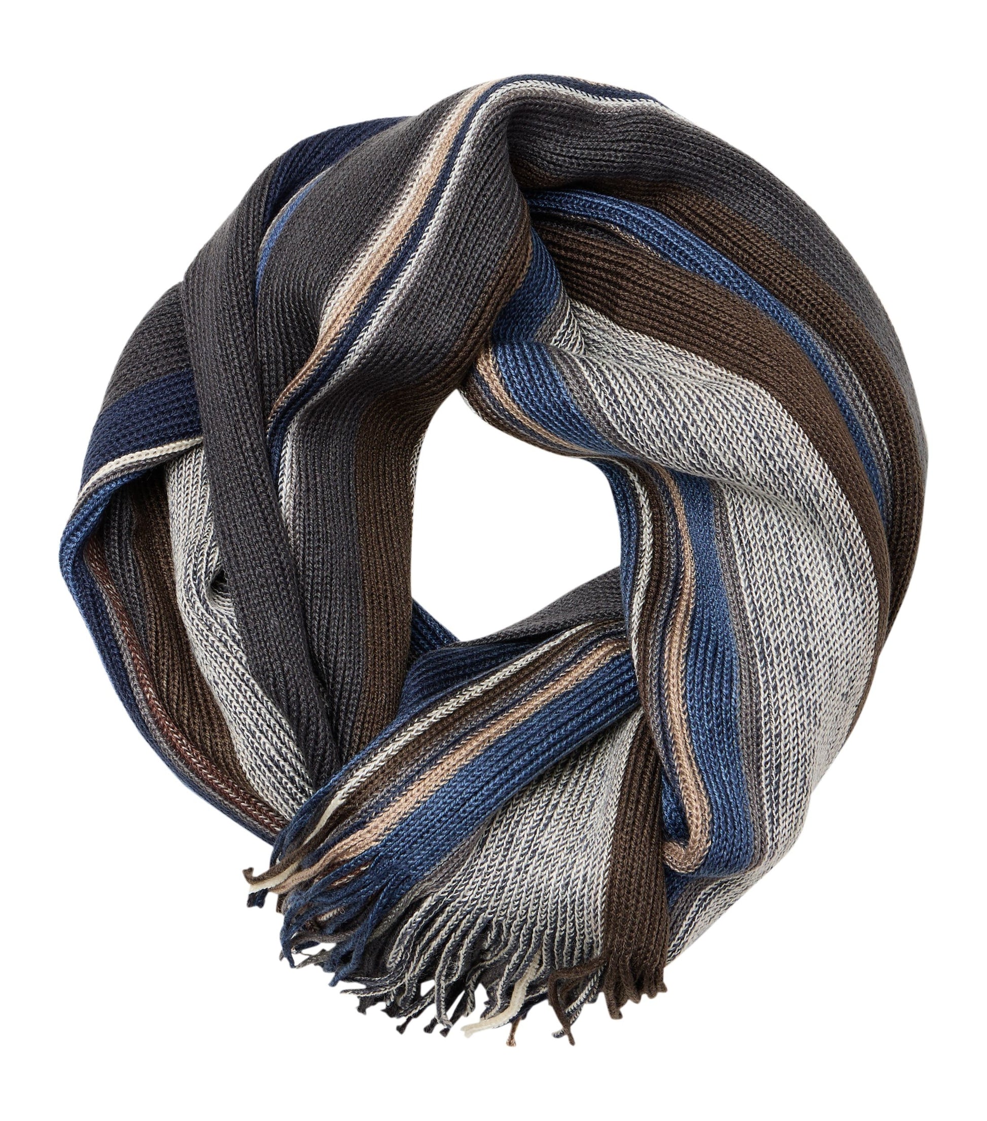 Dieser Schal überzeugt mit seinen angenehmen Trageeigenschaften undeinem modischen Design. Durch das Streifenmuster wird dem Schal einsportlicher Look verliehen, welcher durch den Fransenabschluss lässig aufgelockert wird. Der Schal lässt sich vielseitigkombinieren und ist somit der perfekte Begleiterfür den modernen Mann.