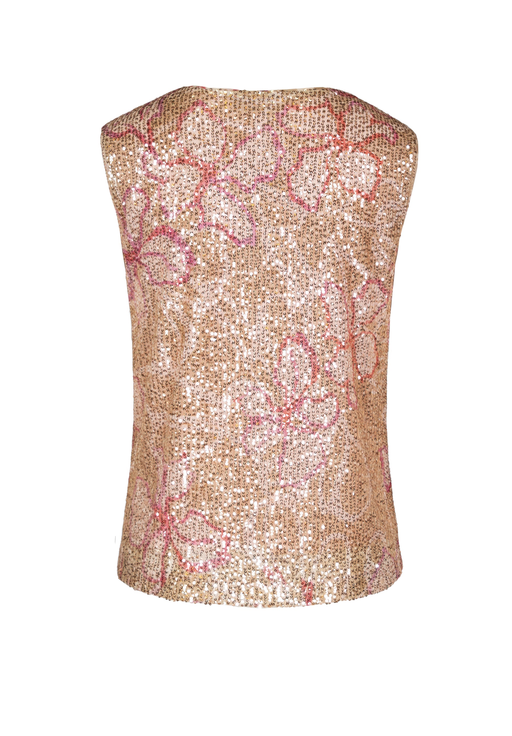 Unser Blusentop Selis setzt mit glanzvollen Pailletten in floralem Muster modische Akzente und verleiht jedem Outfit das gewisse Etwas. Die gerade, lockere Passform sowie das hochwertige Material sorgen für hohen Tragekomfort. Ein klassischer Rundhalsausschnitt und breite Träger runden den Look harmonisch ab. Dank des weichen Untertops aus Jersey trägt sich Selis besonders angenehm auf der Haut. Vielseitig kombinierbar - elegant zu festlichen Anlässen oder lässig im Alltag.