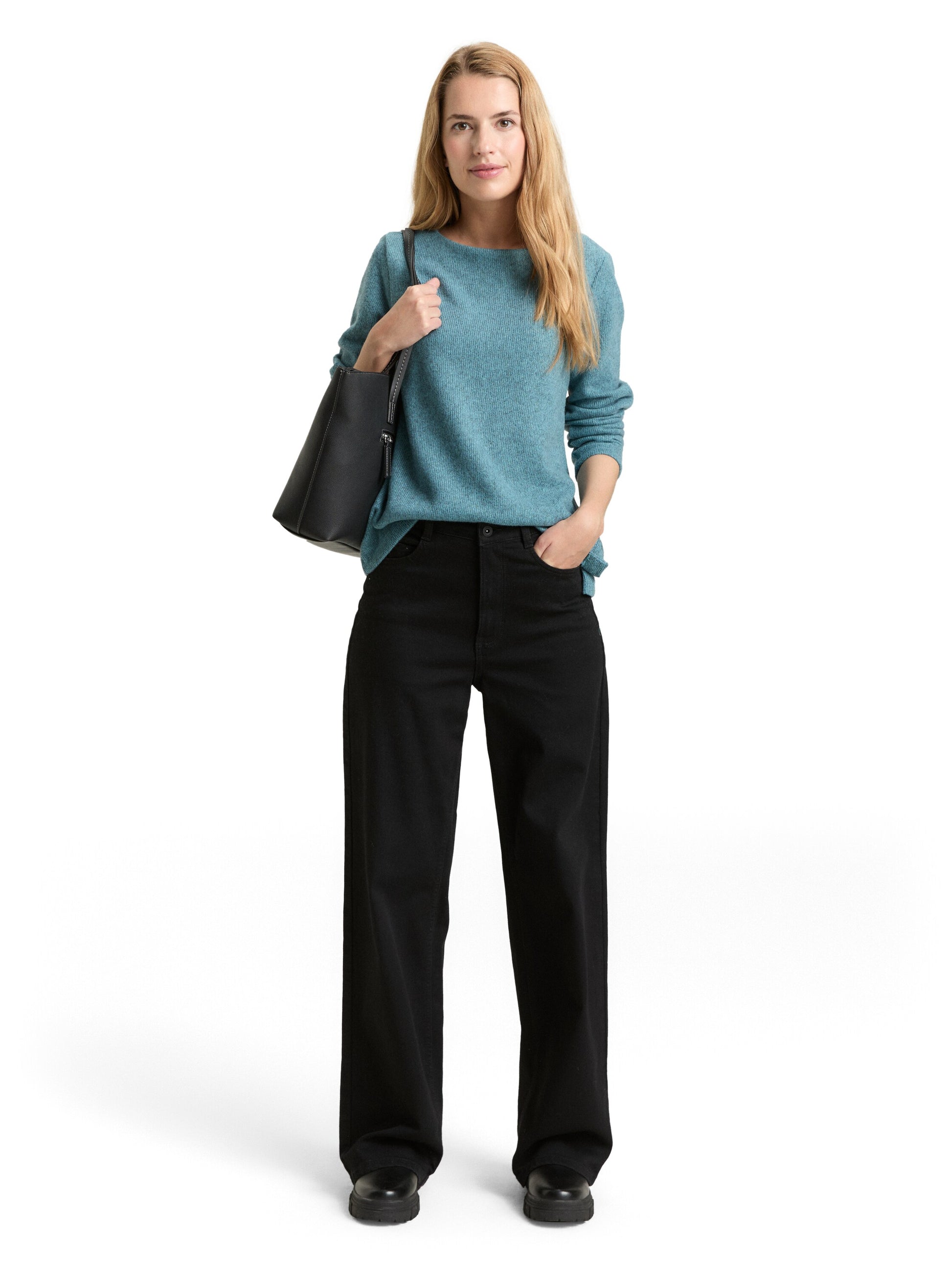 Sweatshirt mit dekorativer Knopfleiste am Saum. Aus einem besonders weichen, leicht aufgerauten Material aus Rippstrick.