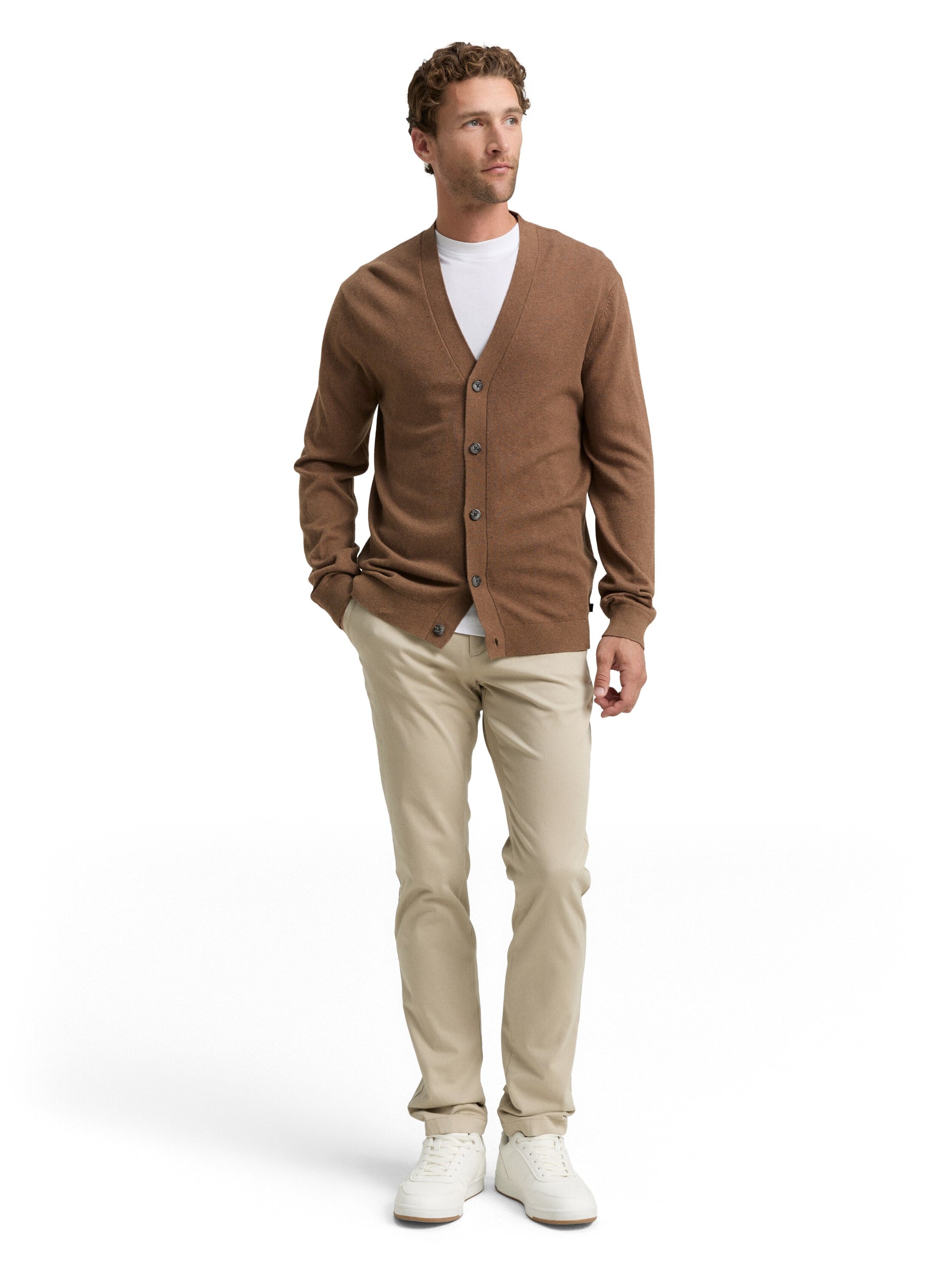 Moderner Cardigan mit Knopfleiste und V-Ausschnitt. Aus einem superweichen Baumwollstoff mit Kaschmir-Anteil für ein warmes Tragegefühl.