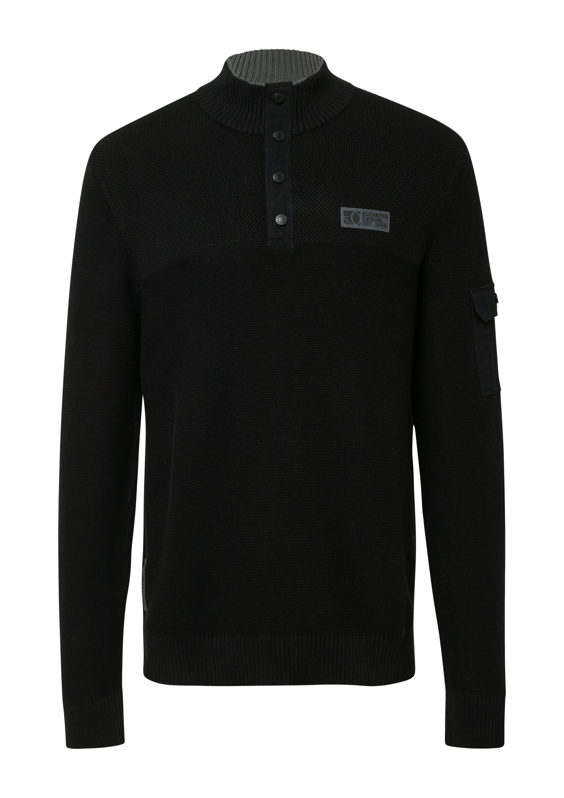 Dieser lässige Baumwoll-Strickpullover mit praktischer Ärmeltasche vereint sportlichen Troyer-Kragen mit elegantem Strukturmix. Die Regular-Fit-Passform und die Druckknopfleiste machen ihn zum perfekten Begleiter für entspannte Casual-Looks.