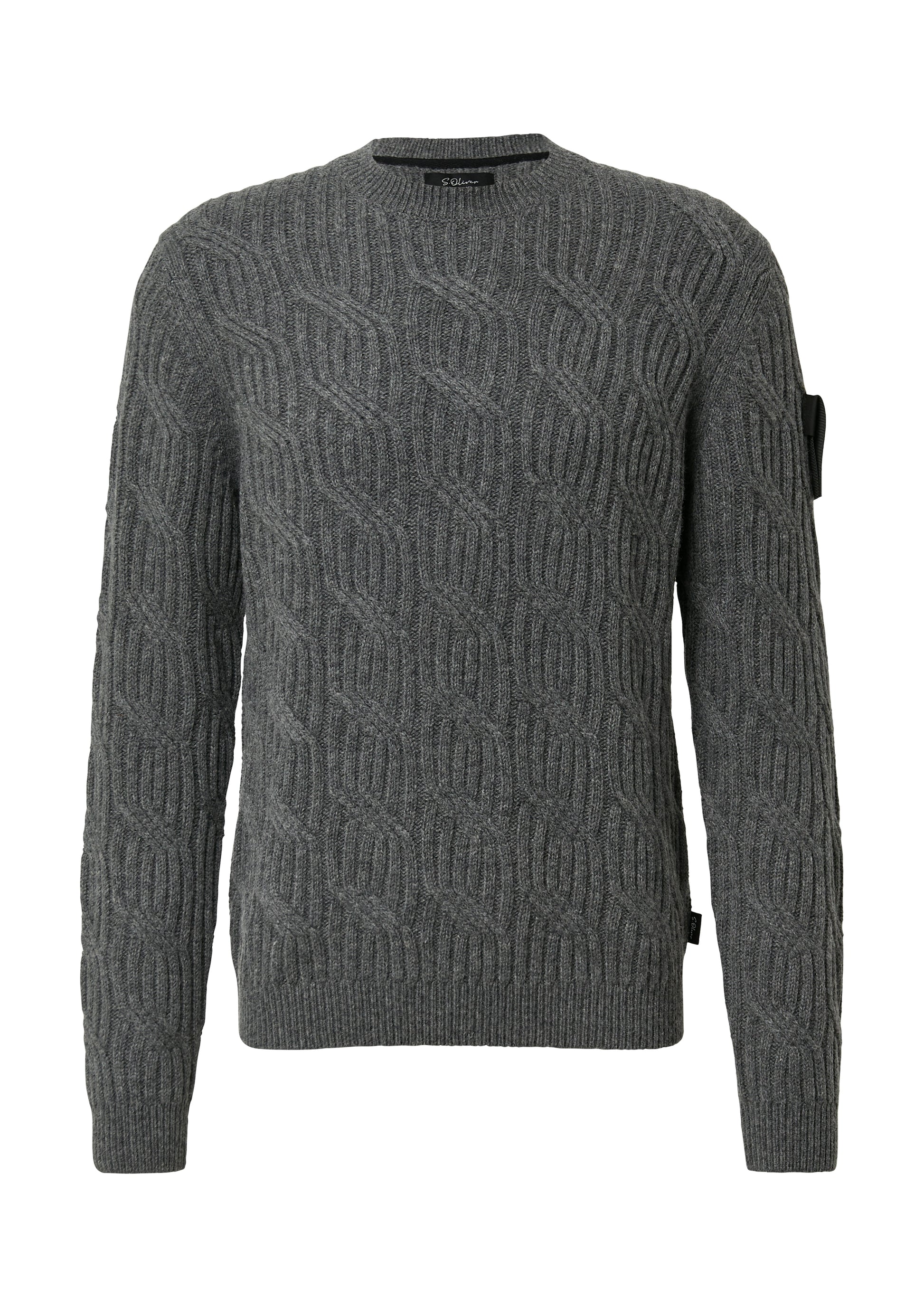 Ein zeitloser Begleiter für stilbewusste Auftritte: Dieser hochwertige Strickpullover aus edlem Wollmix vereint klassisches Zopfmuster mit modernem Crew Neck. Die Regular-Fit-Passform mit eleganten Rippbündchen passt sich deinem Look an. Ein Statement-Piece, das durch raffinierte Details wie den Ärmel-Patch besticht.