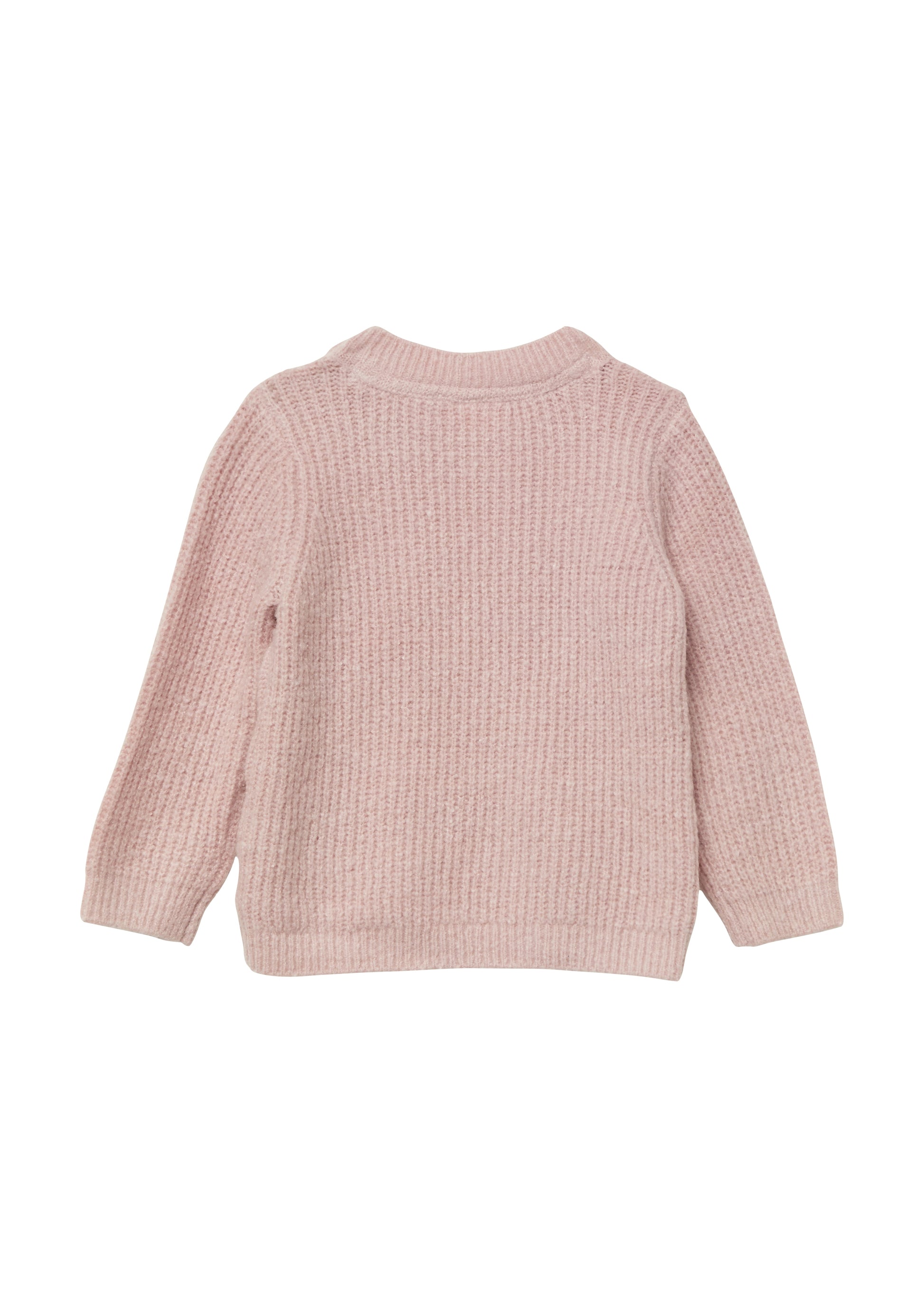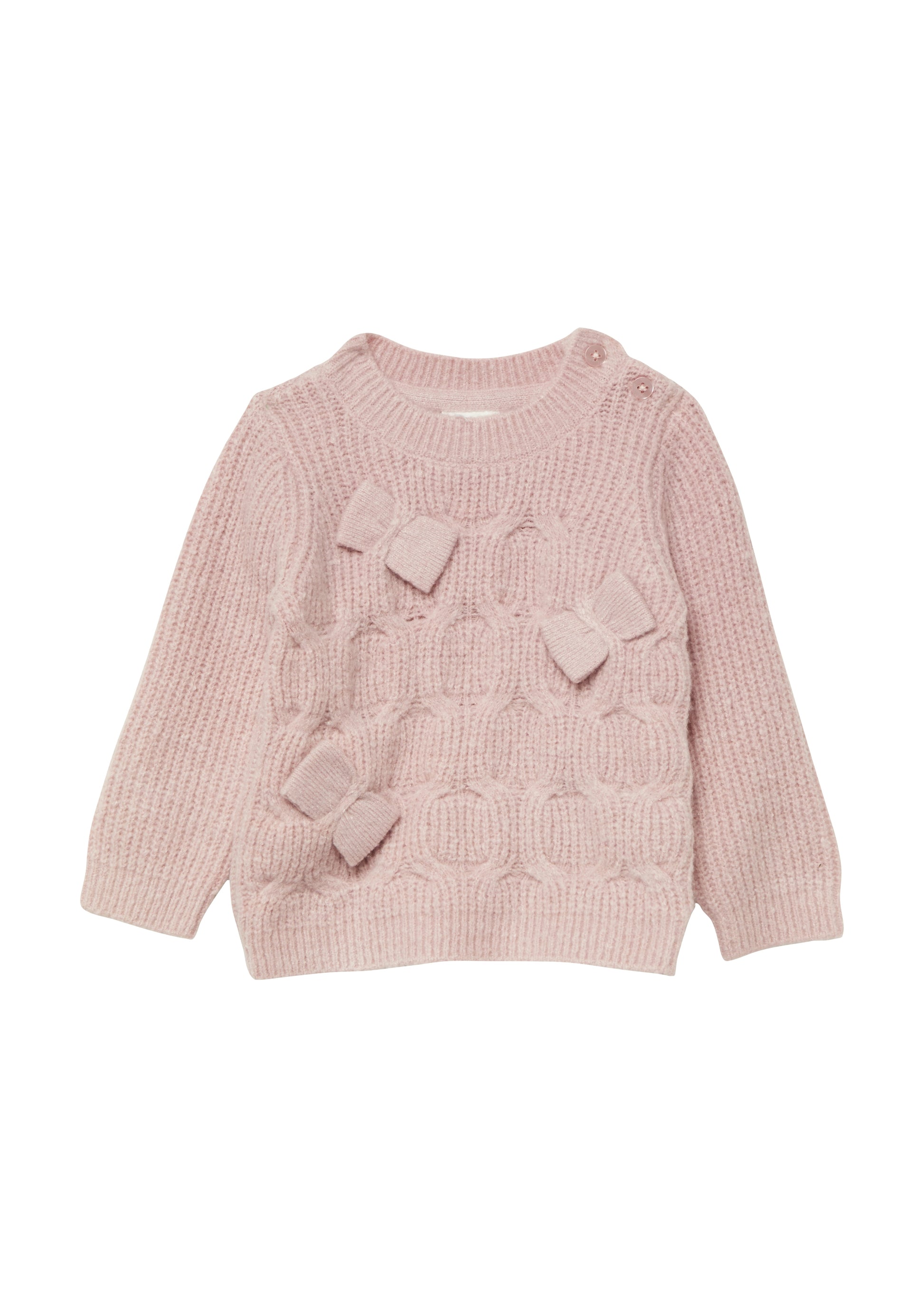 Kuscheliger Strickpullover mit bezauberndem Zopfmuster und hübscher Schleifenapplikation für dein Kind. Die Loose Fit Passform bietet viel Bewegungsfreiheit im Alltag. Praktische Knöpfe an der Seite erleichtern das An- und Ausziehen. Mit Langarm und Rippbündchen hält dieser charmante Begleiter angenehm warm – ideal für Schule und Freizeit!