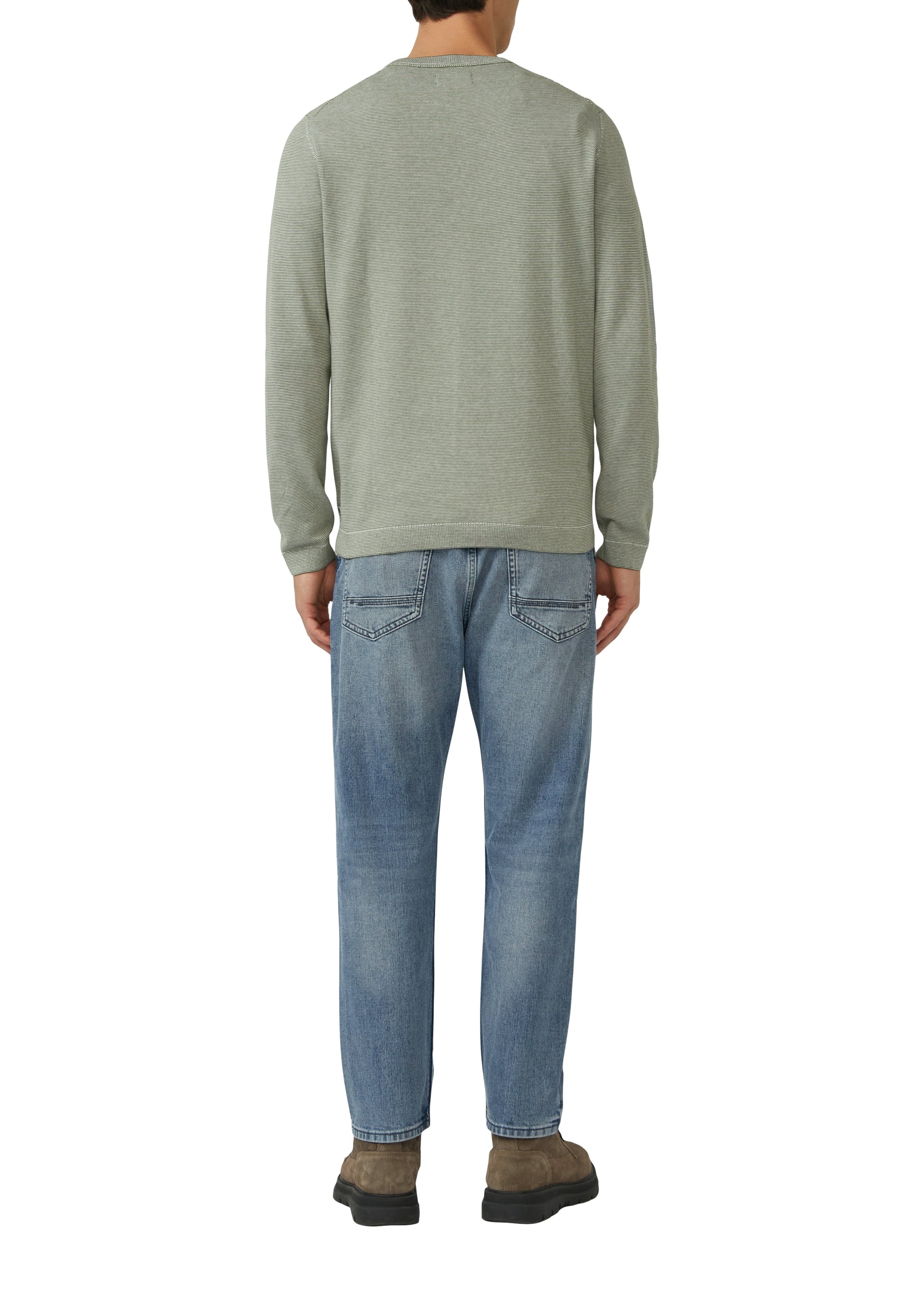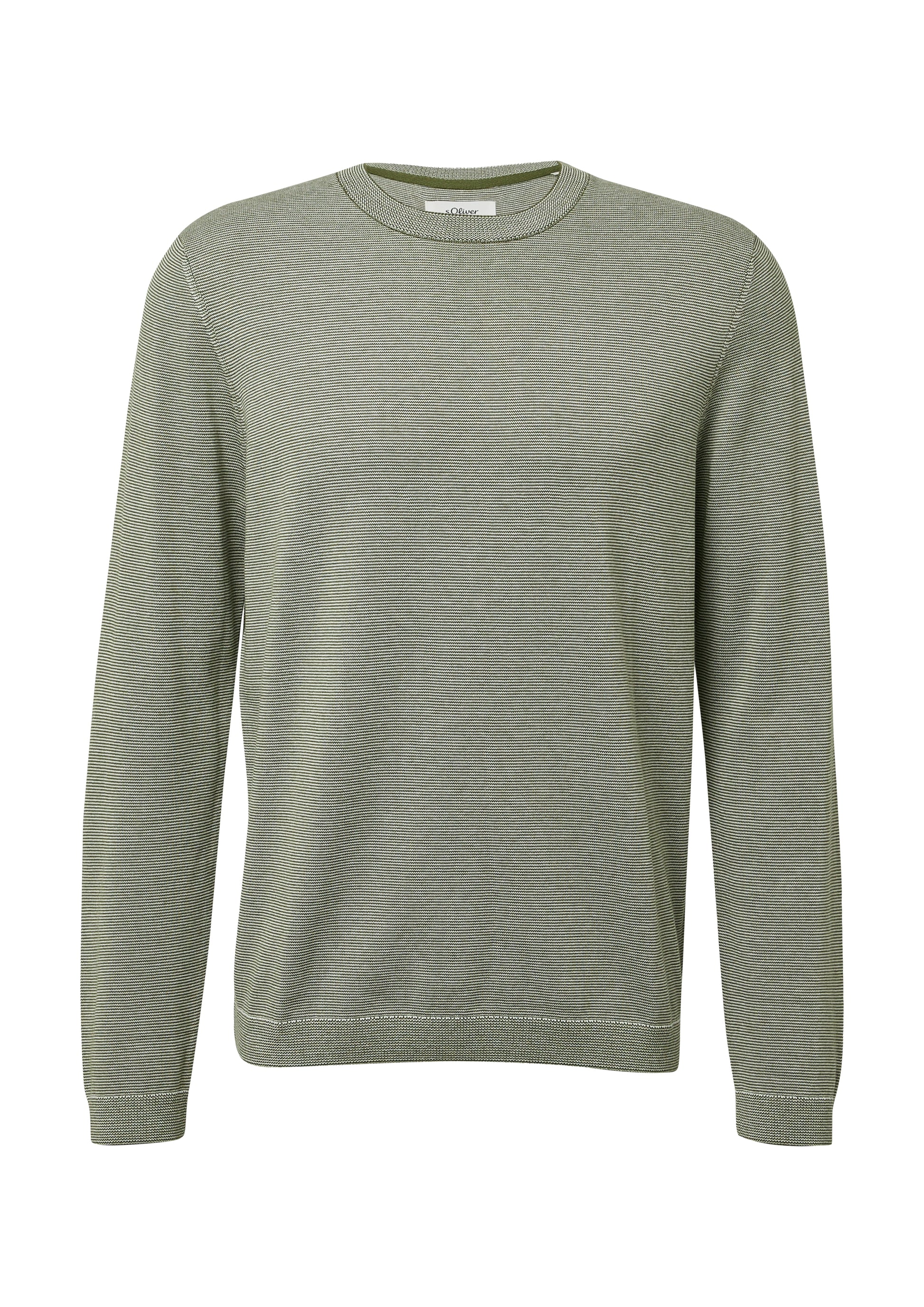 Fein gestreifter Pullover mit Crew Neck und abgesetzten Bündchen