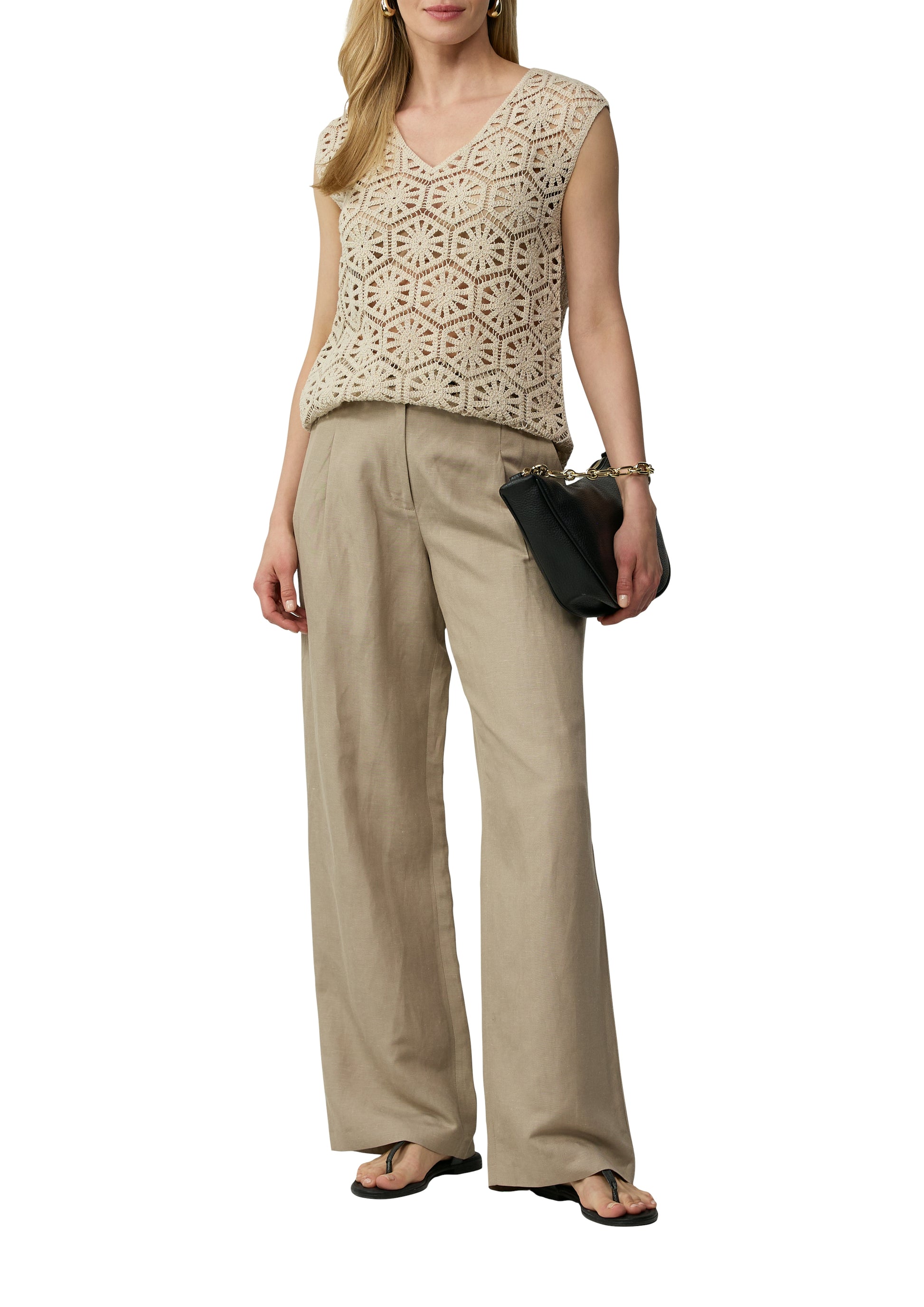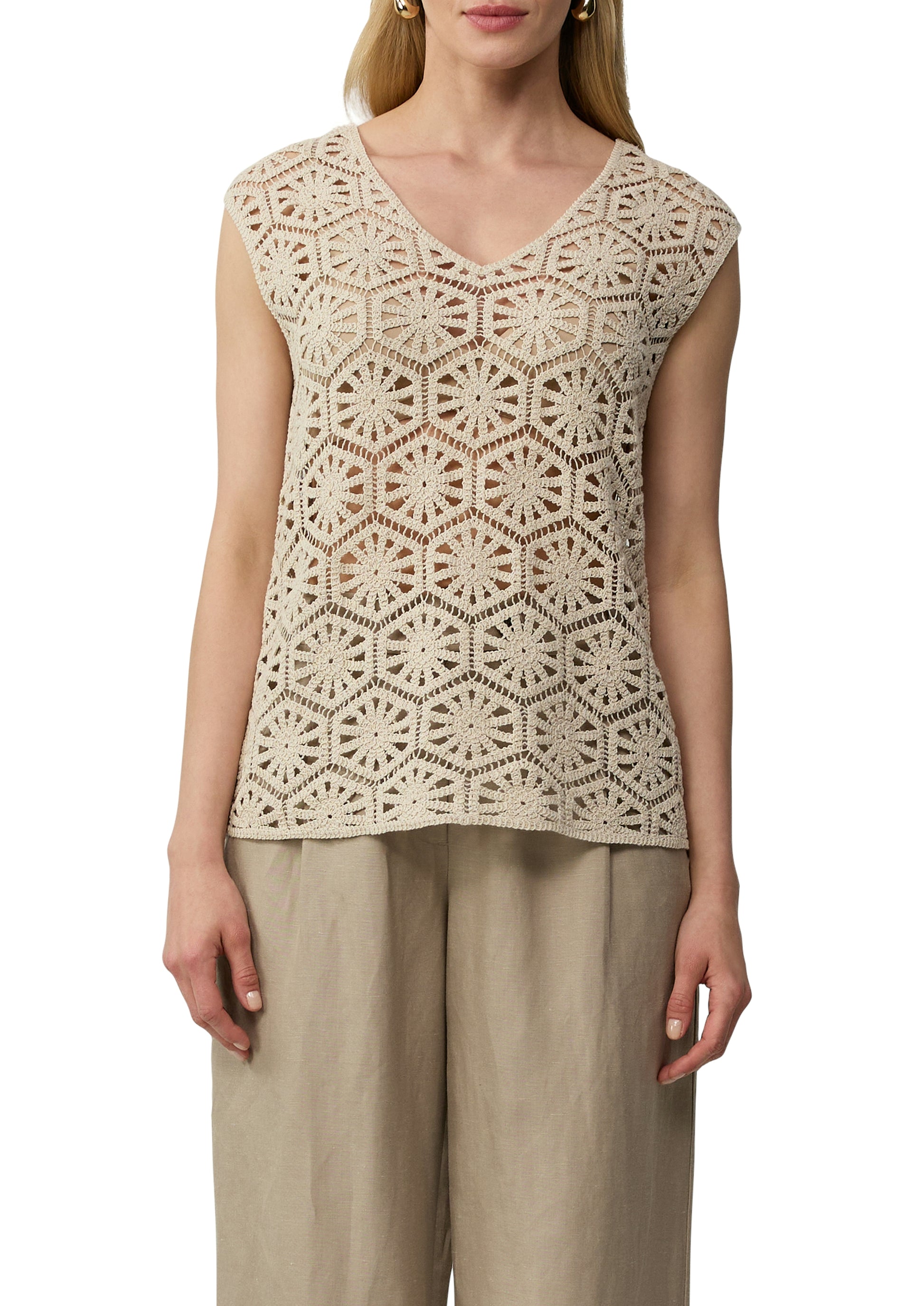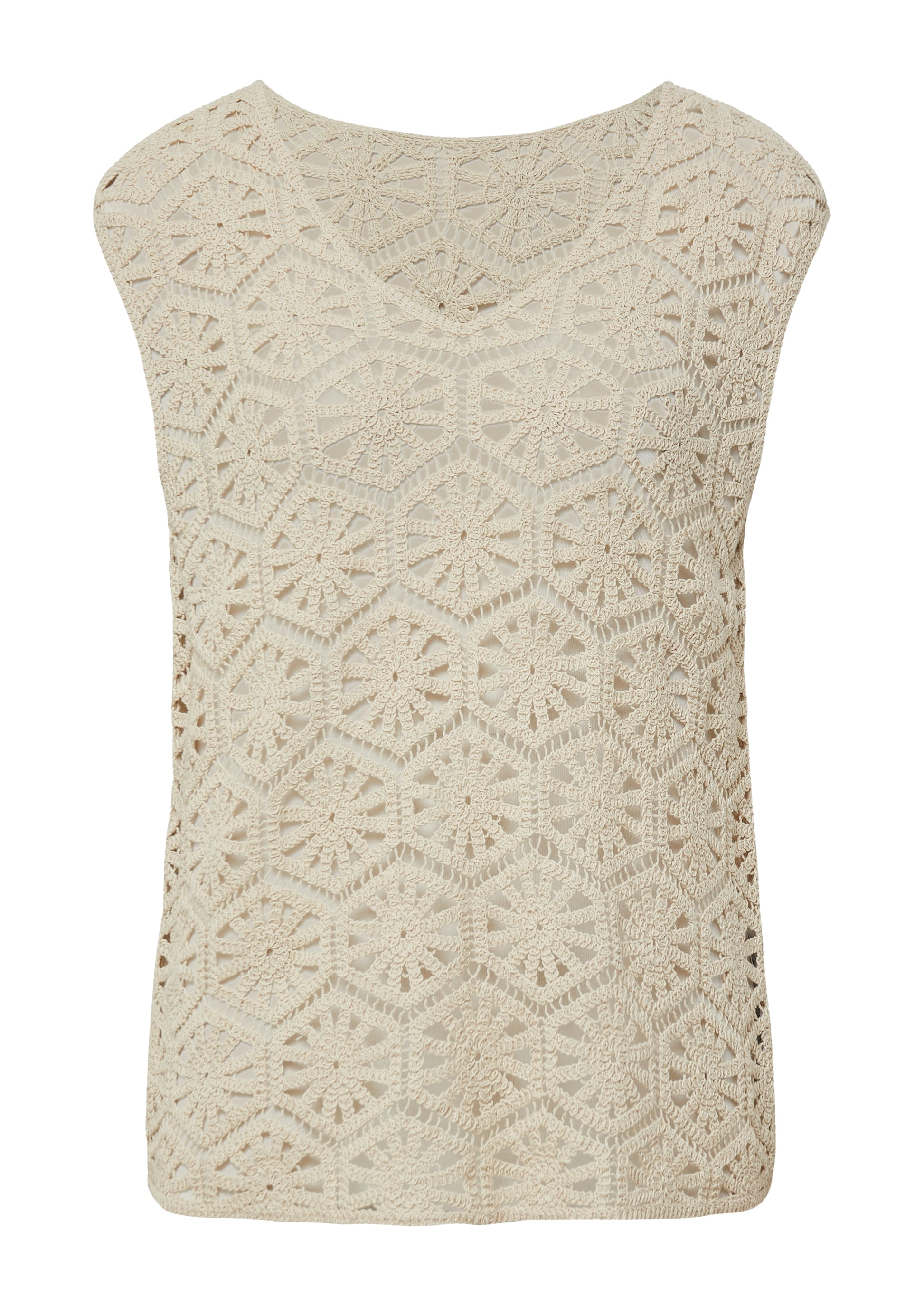 Entdecke zeitlose Eleganz: Unser semitransparentes Tanktop aus Häkelspitze im Relaxed Fit vereint Raffinesse und Komfort. Der U-Boot- oder V-Ausschnitt betont deine feminine Silhouette. Aus hochwertigem Baumwollmix gefertigt, ist es dein vielseitiger Begleiter für Casual-Looks, Business-Outfits und festliche Anlässe. Unterstreiche deinen individuellen Stil mit diesem modernen Klassiker.