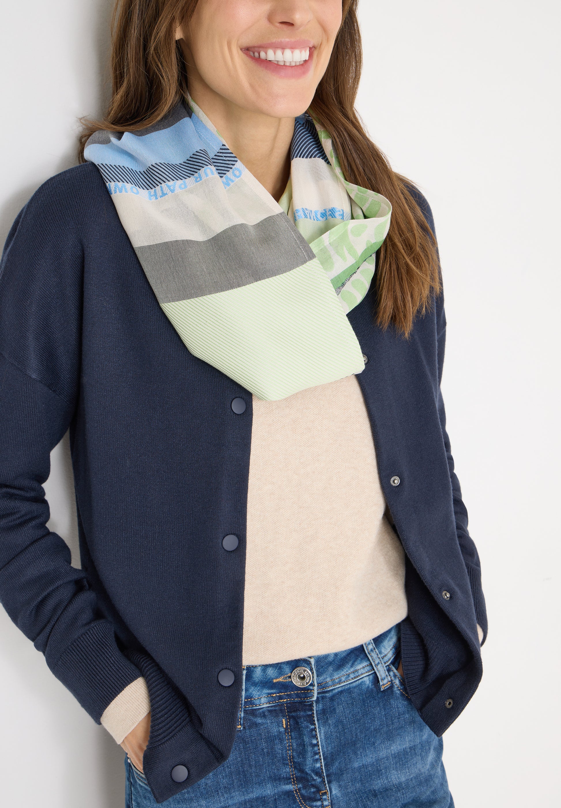 Der Loop-Schal von CECIL für Damen kombiniert verschiedene Strukturen mit einem grafischen Muster. Das Ergebnis: ein modischer Hingucker mit hohem Tragekomfort – perfekt für individuelle Stylings. Schlauchschal Strukturmix Grafisches Muster Angenehmer Tragekomfort Material: 100% Modal