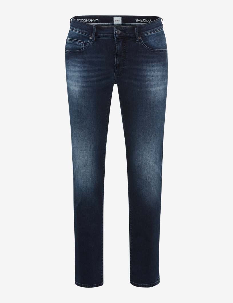 Lässig-maskuline Outfits gelingen ganz einfach mit der Five-Pocket-Jeans im Style CHUCK. Die gerade Form im Modern Fit mit normaler Leibhöhe sorgt für eine zeitgemäße Silhouette und verbindet Komfort mit urbaner Coolness. Charakteristische Details wie aufgesetzte Gesäßtaschen, Coinpocket und typische Einschubtaschen treffen auf markante Used-Effekte und abgestimmtes Stitching, wodurch ein authentisches Gesamtbild entsteht. Der hochwertige Baumwollmix der Herrenjeans garantiert ein angenehmes, natürliches Tragegefühl, während der Stretch-Anteil flexible Bewegungsfreiheit bietet und Polyester die Strapazierfähigkeit erhöht. So überzeugt die Hose in einem wertigen Heritage Denim durch ihre robuste, langlebige Struktur und verspricht einen unverwechselbaren Look.