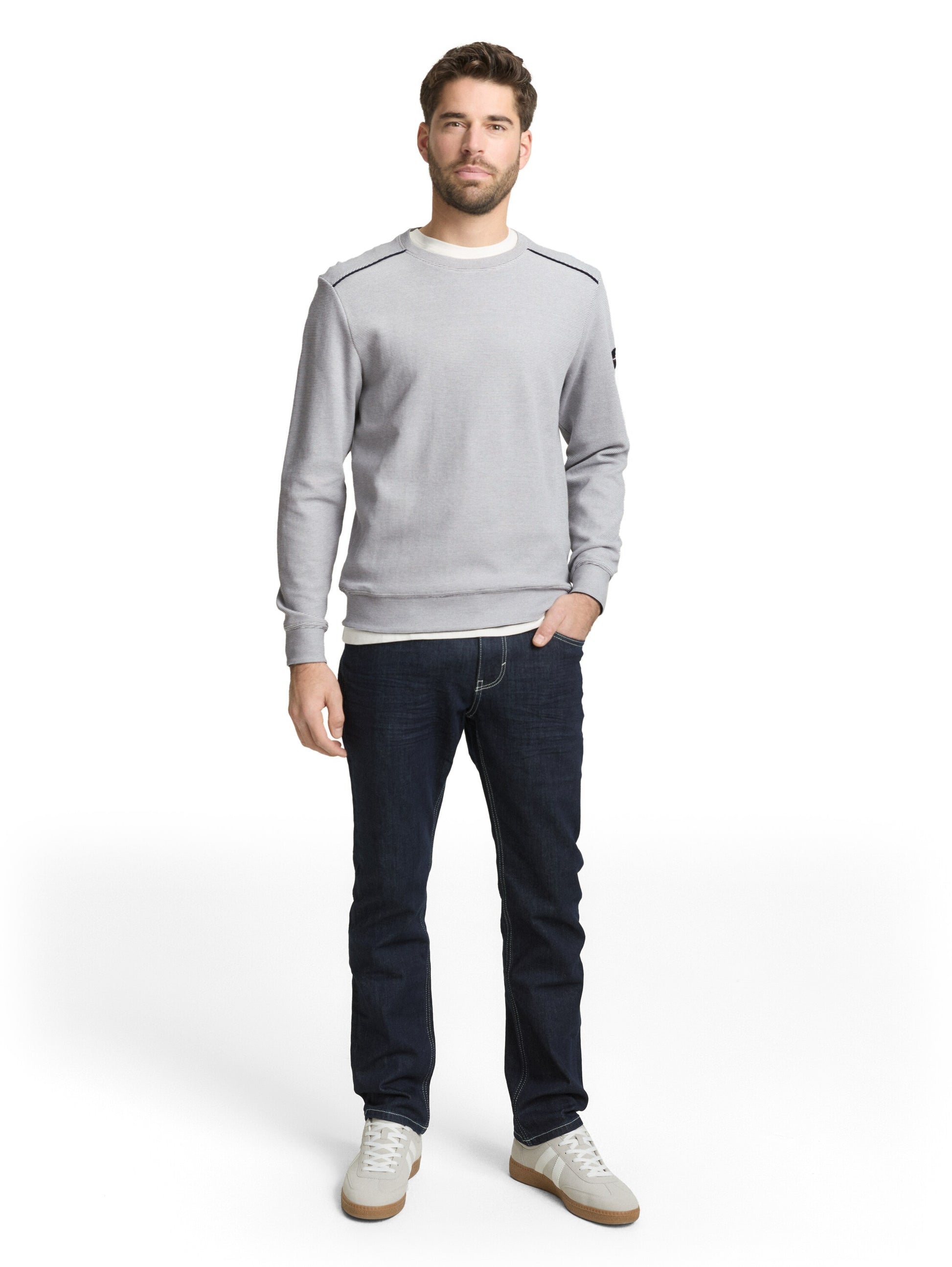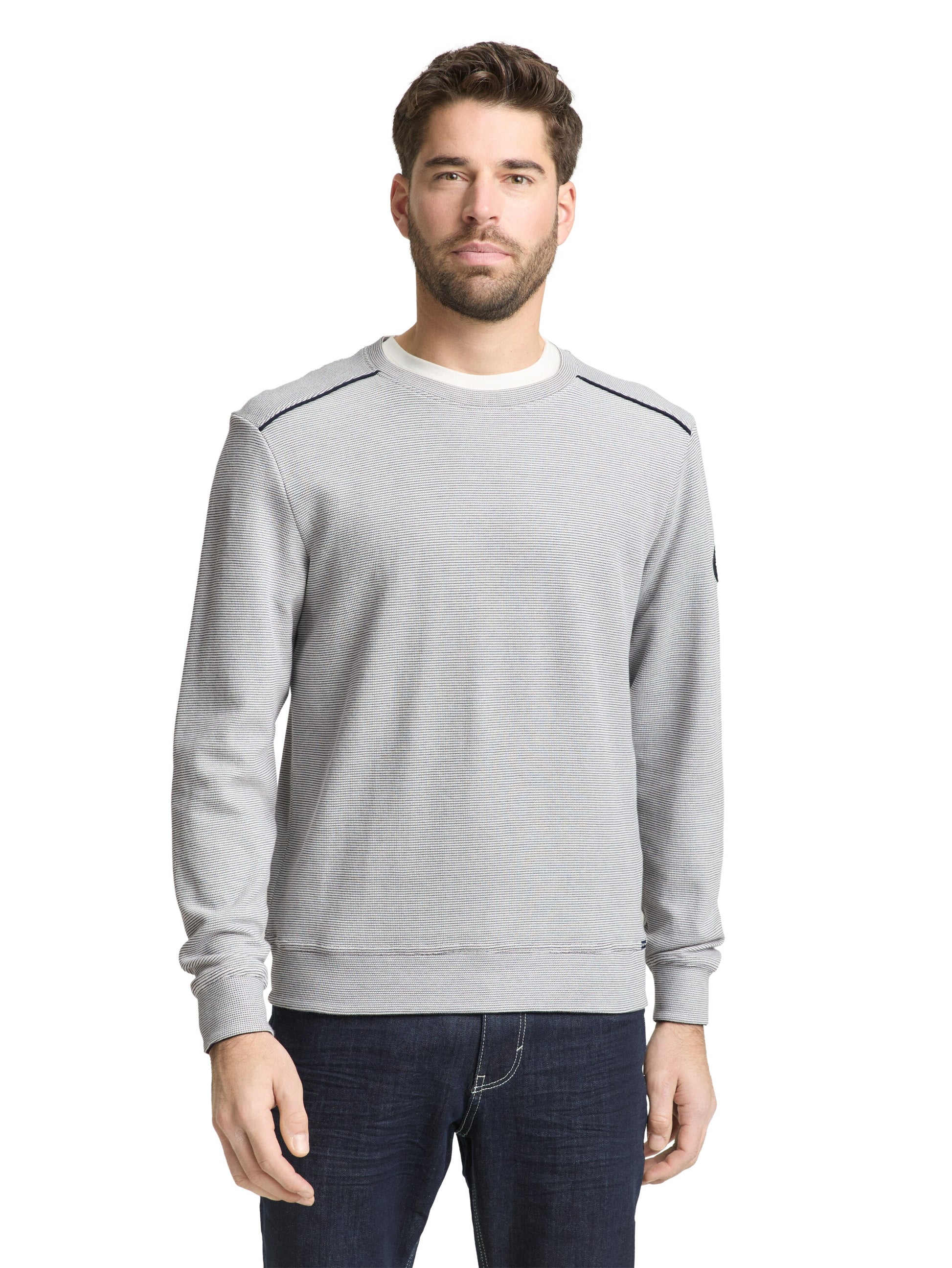 Strukturiertes Sweatshirt mit Rundhalsausschnitt und Logo-Badge am oberen Ärmel