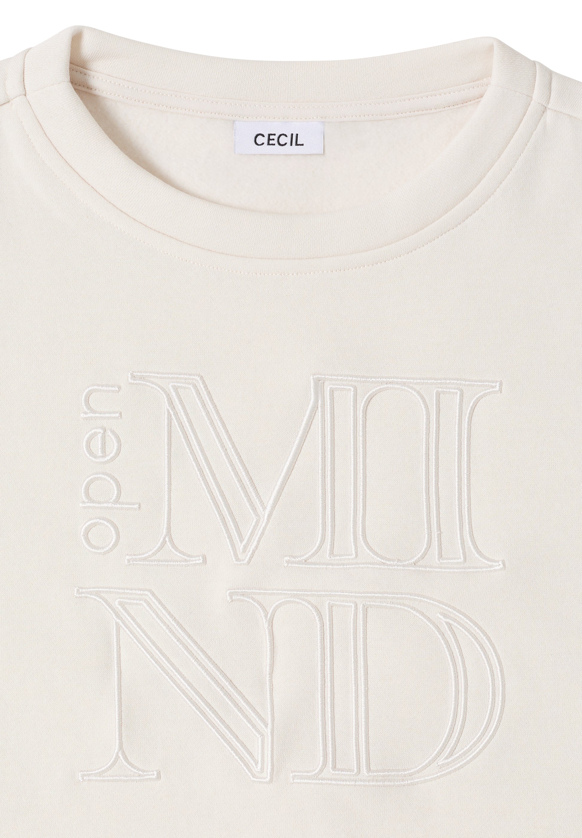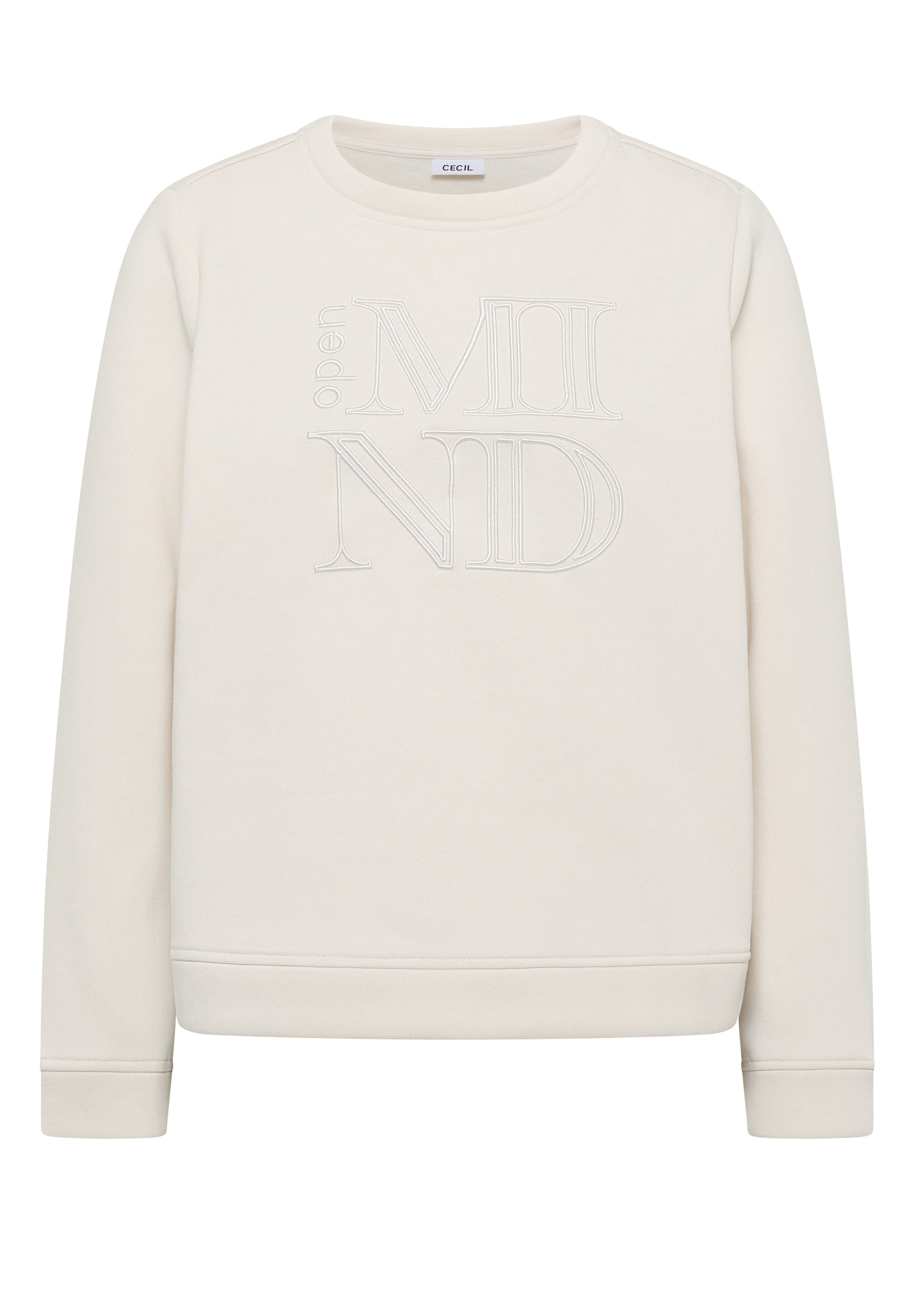 Mit seinem gestickten Wording-Detail wird dieses Sweatshirt von CECIL für Damen zum charmanten Hingucker. Der Rundhalsausschnitt, die weiche Sweat-Qualität und lange Ärmel mit Bündchen sorgen für ein angenehmes Tragegefühl. Ideal für deinen unkomplizierten Alltagslook. Damensweatshirt Embroidery Wording Softe Sweat-Qualität Rundhalsausschnitt Langarm mit Bündchen Material: 54% Polyester, 46% Baumwolle