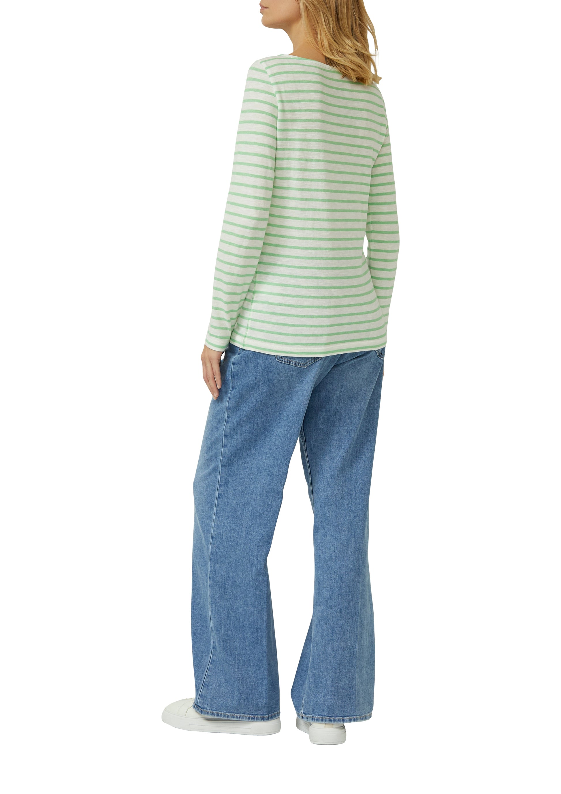 Gestreiftes Langarmshirt aus Flammgarm mit U-Boot-Ausschnitt