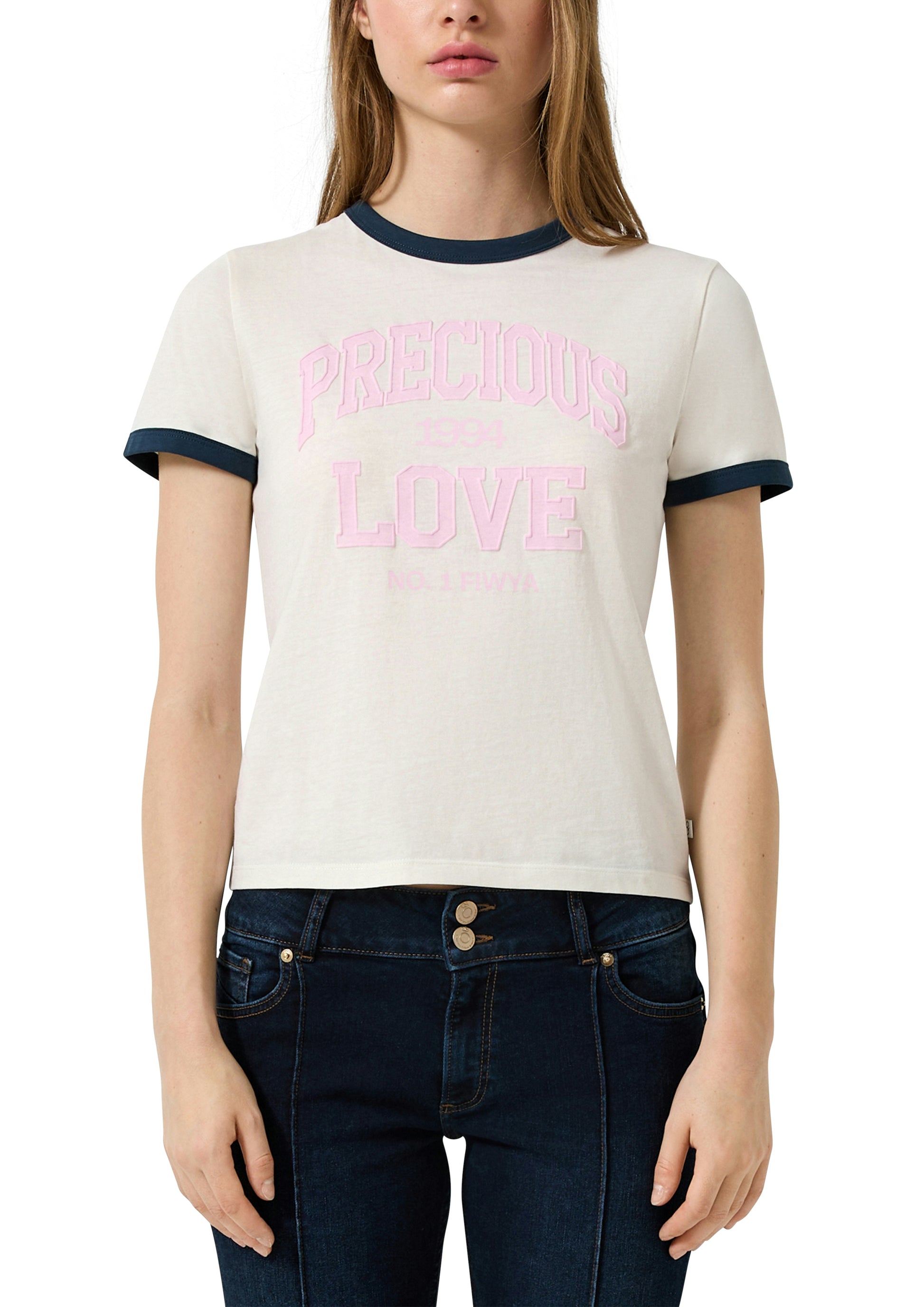 Dieses Printshirt mit stylischem Frontprint und coolen Kontrast-Pipings bringt frischen Wind in deinen Look. Der weiche Jersey-Stoff fühlt sich angenehm an und macht jede Bewegung mit. Die Slim Fit Passform betont deine Figur perfekt, während der gerade Saum lässig sitzt. Ideal für spontane Treffen oder entspannte Tage in der City.