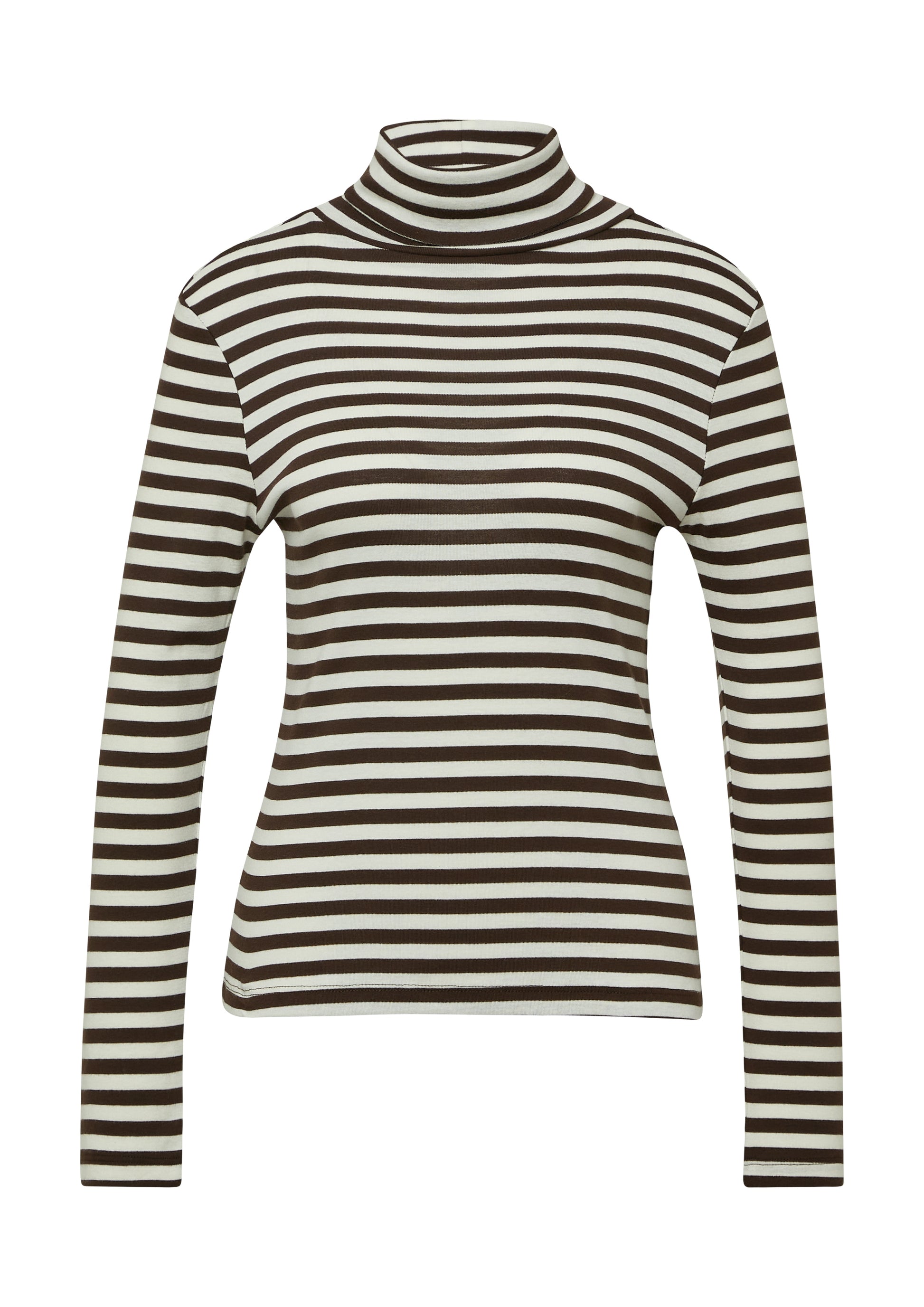 Lässig-elegant durch den Tag: Das gestreifte Longsleeve aus weichem Baumwoll-Jersey überzeugt mit schmalem Schnitt und kuscheligem Rollkragen. Die elastische Rippware schmiegt sich angenehm an und macht jedes Outfit alltagstauglich.