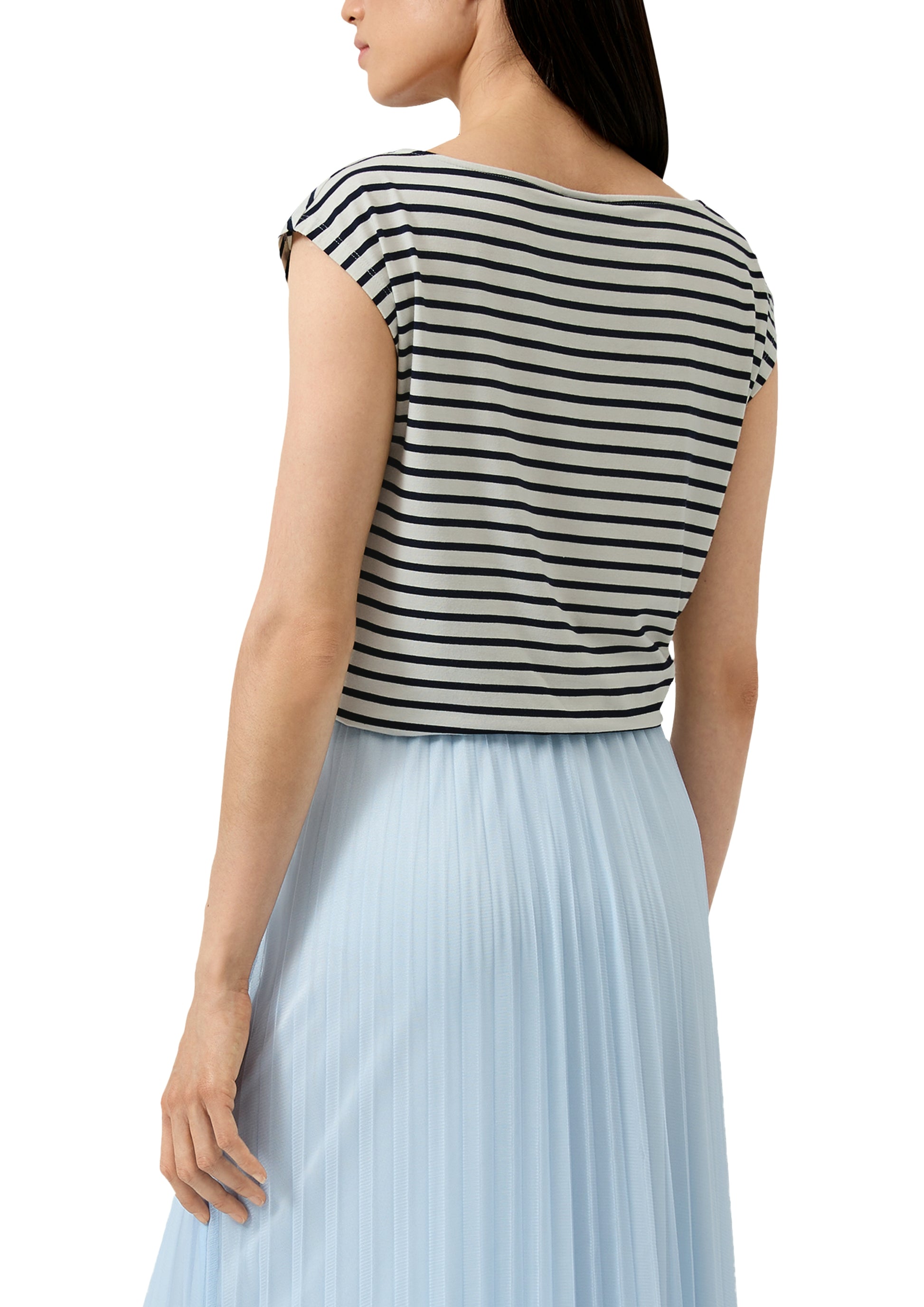 Gestreifte Eleganz trifft auf lässigen Chic – dieses ärmellose Shirt mit Wasserfall-Ausschnitt setzt auf fließende Linien und überschnittene Schultern. Der Regular Fit schmeichelt deiner Silhouette, während die gestrickten Streifen für raffinierte Akzente sorgen. Vielseitig kombinierbar: vom Business-Look bis zum festlichen Dinner. Ein Must-have für deinen selbstbewussten Auftritt.