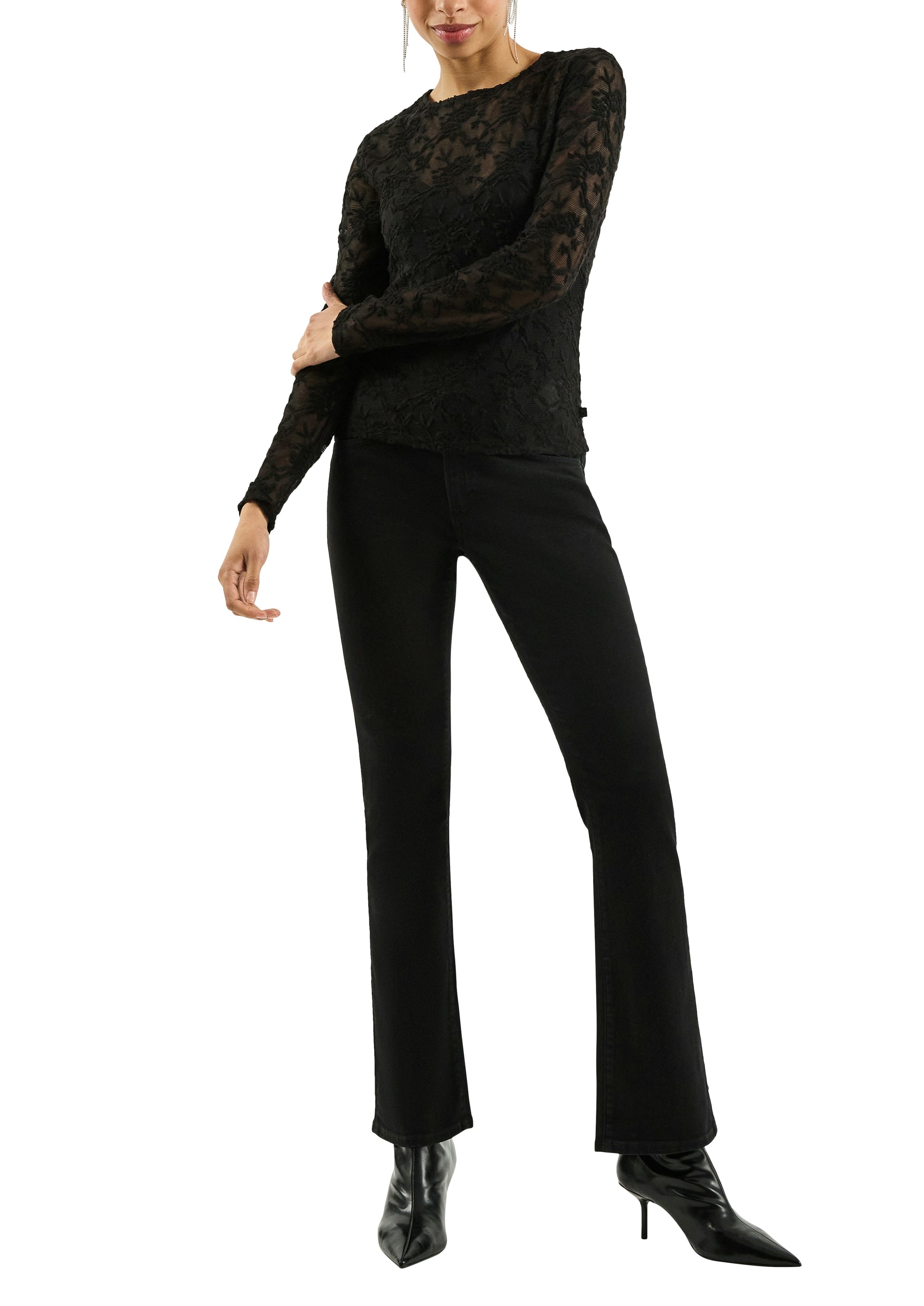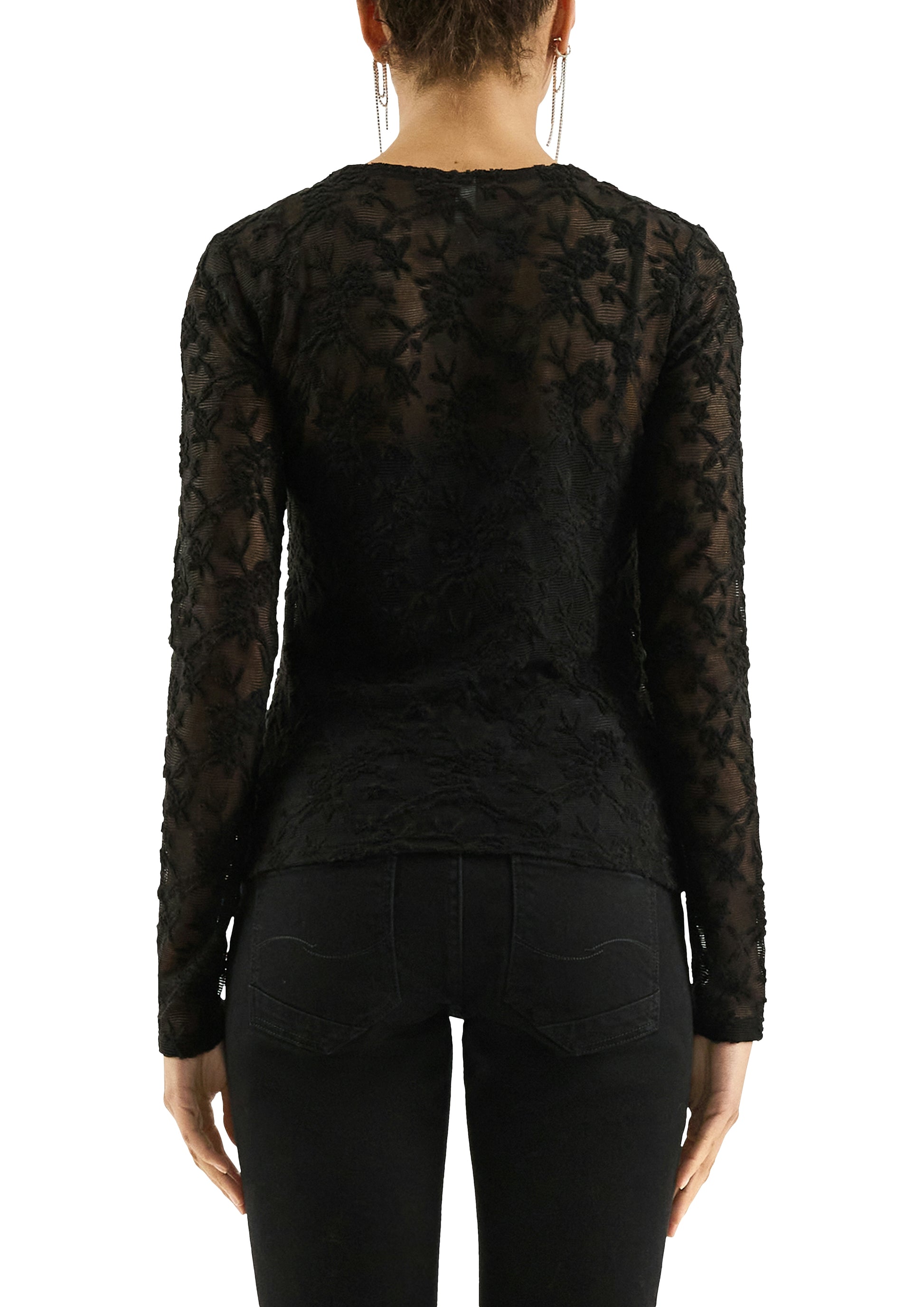 Dein neues Highlight-Piece: Das semi-transparente Langarmshirt aus zarter Spitze überzeugt mit softem Polyester-Mix und schmeichelnder Slim-Fit-Passform. Der klassische Rundhalsausschnitt macht es zum vielseitigen Basic für deine Outfits.