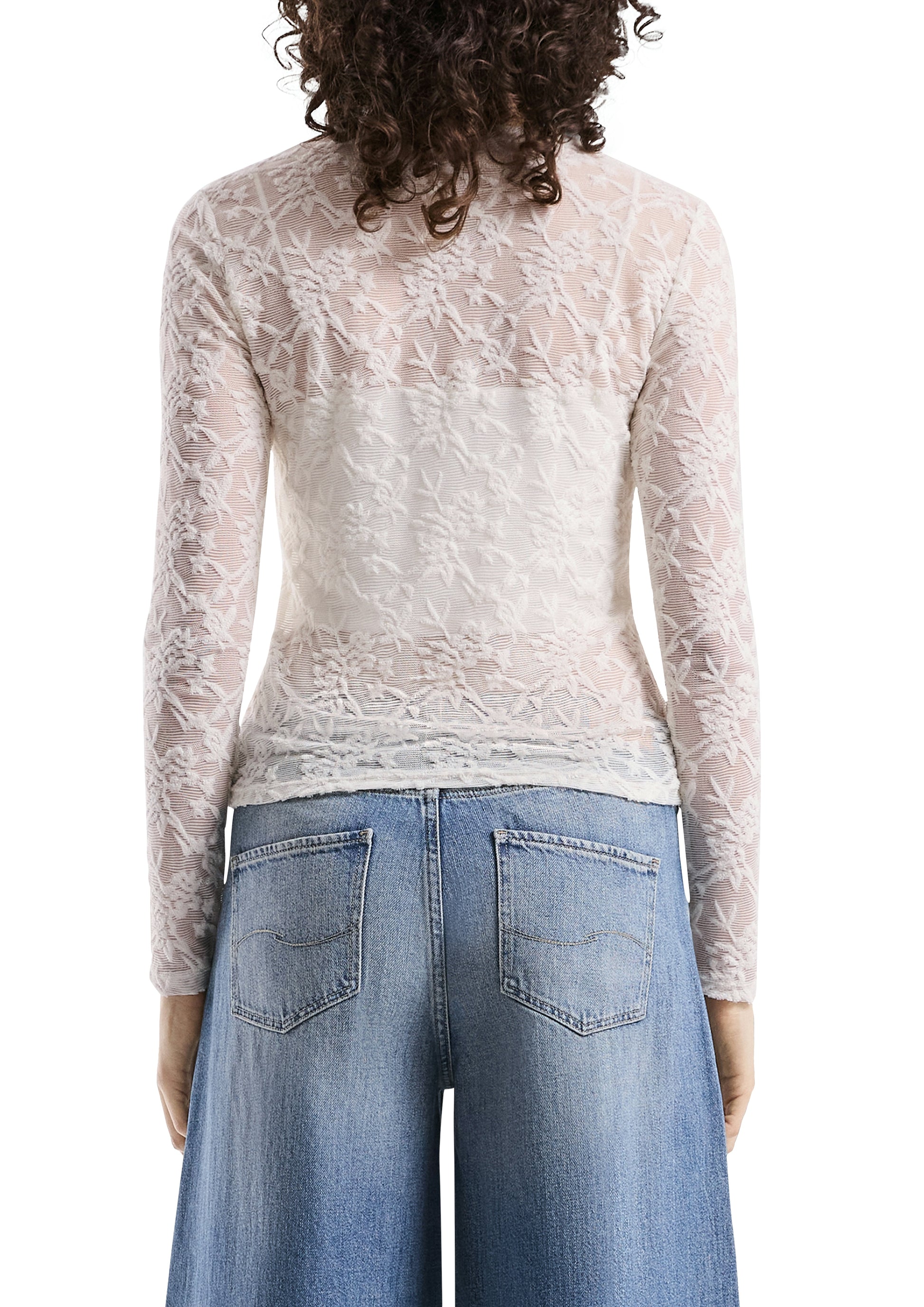 Dein neues Highlight-Piece: Das semi-transparente Langarmshirt aus zarter Spitze überzeugt mit softem Polyester-Mix und schmeichelnder Slim-Fit-Passform. Der klassische Rundhalsausschnitt macht es zum vielseitigen Basic für deine Outfits.