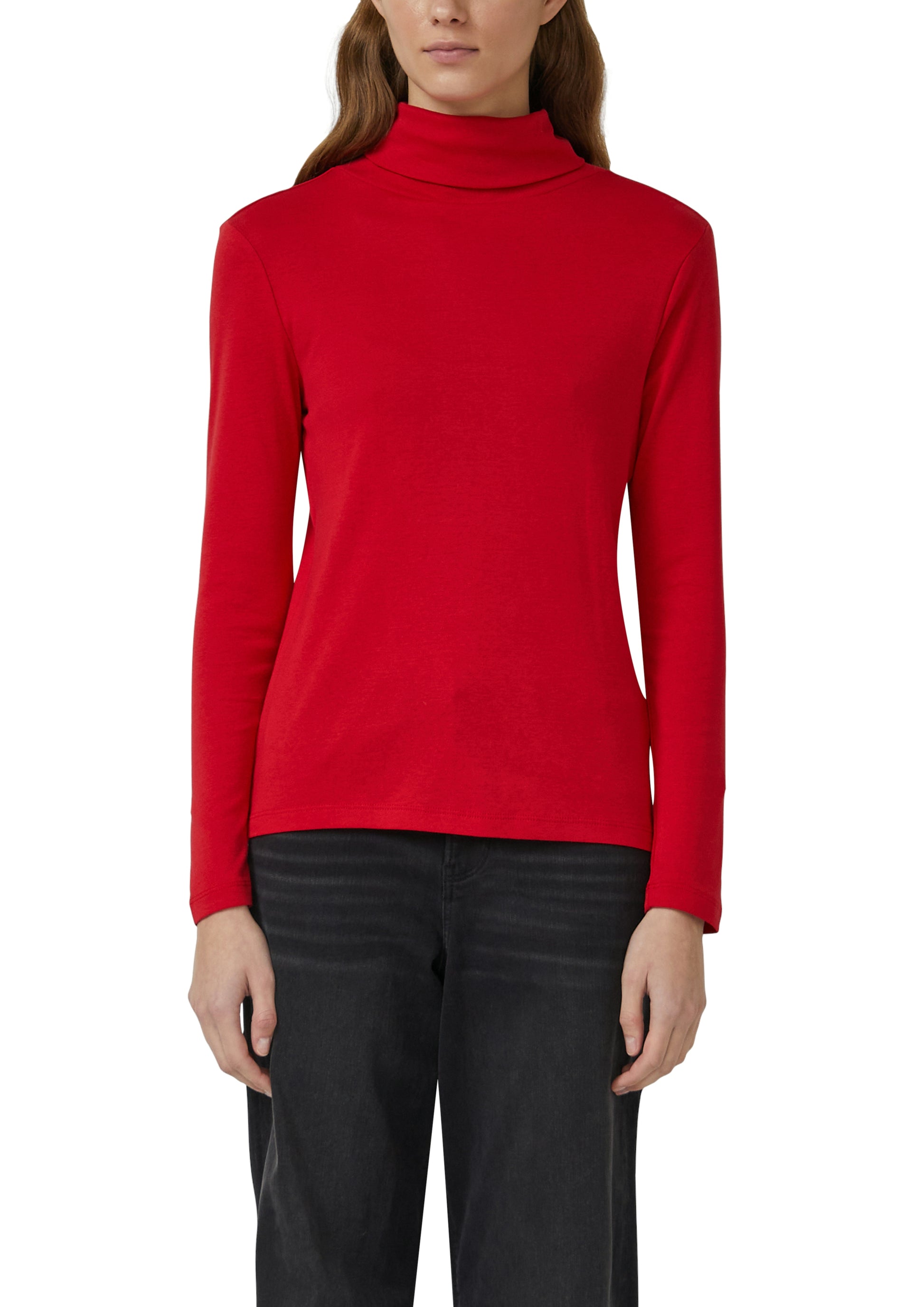 Dieses weiche Jersey-Langarmshirt mit Rollkragen überzeugt durch seinen schmalen Schnitt und die angenehm elastische Qualität. Ein zeitloser Casual-Begleiter für entspannte Alltagsmomente.