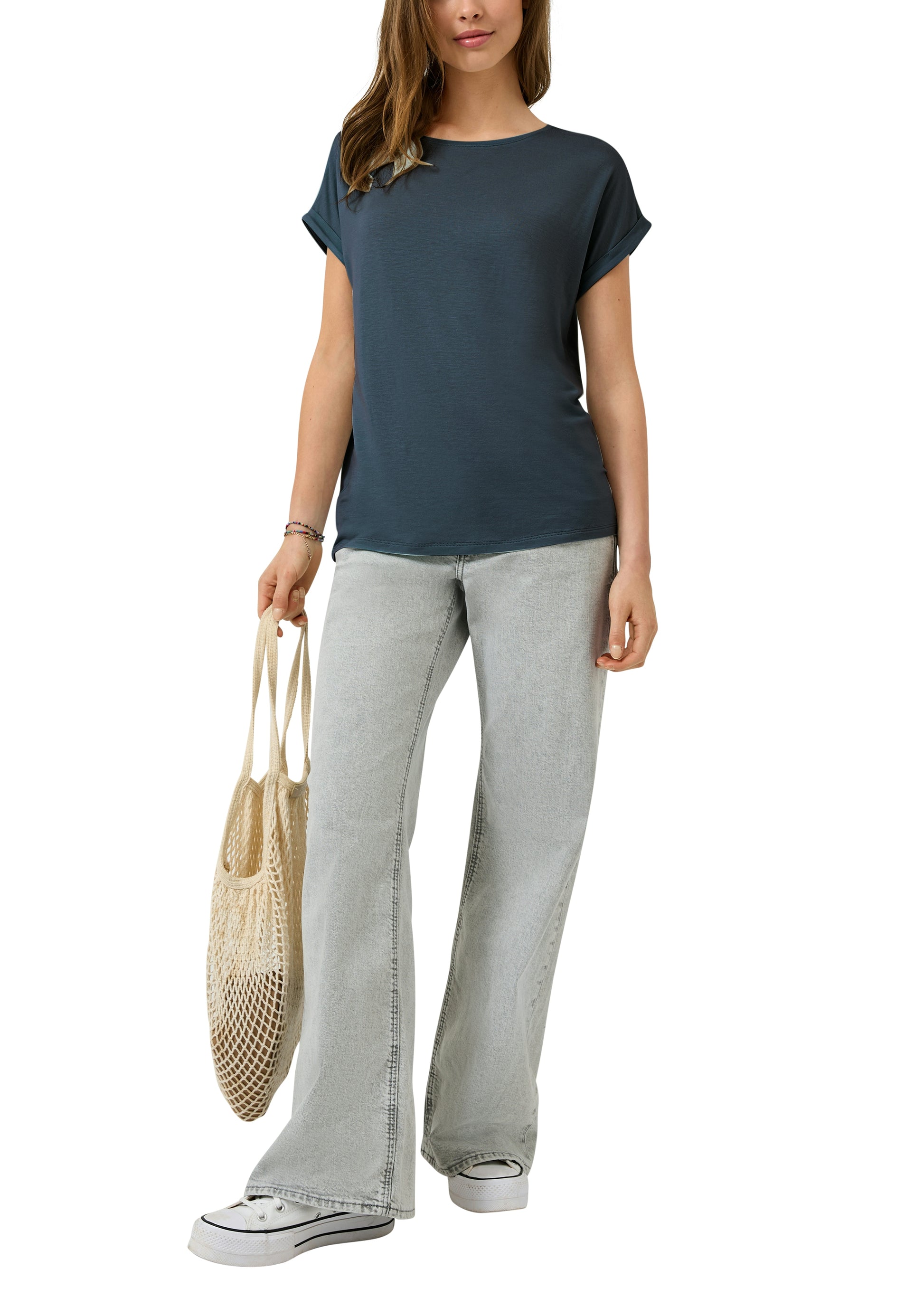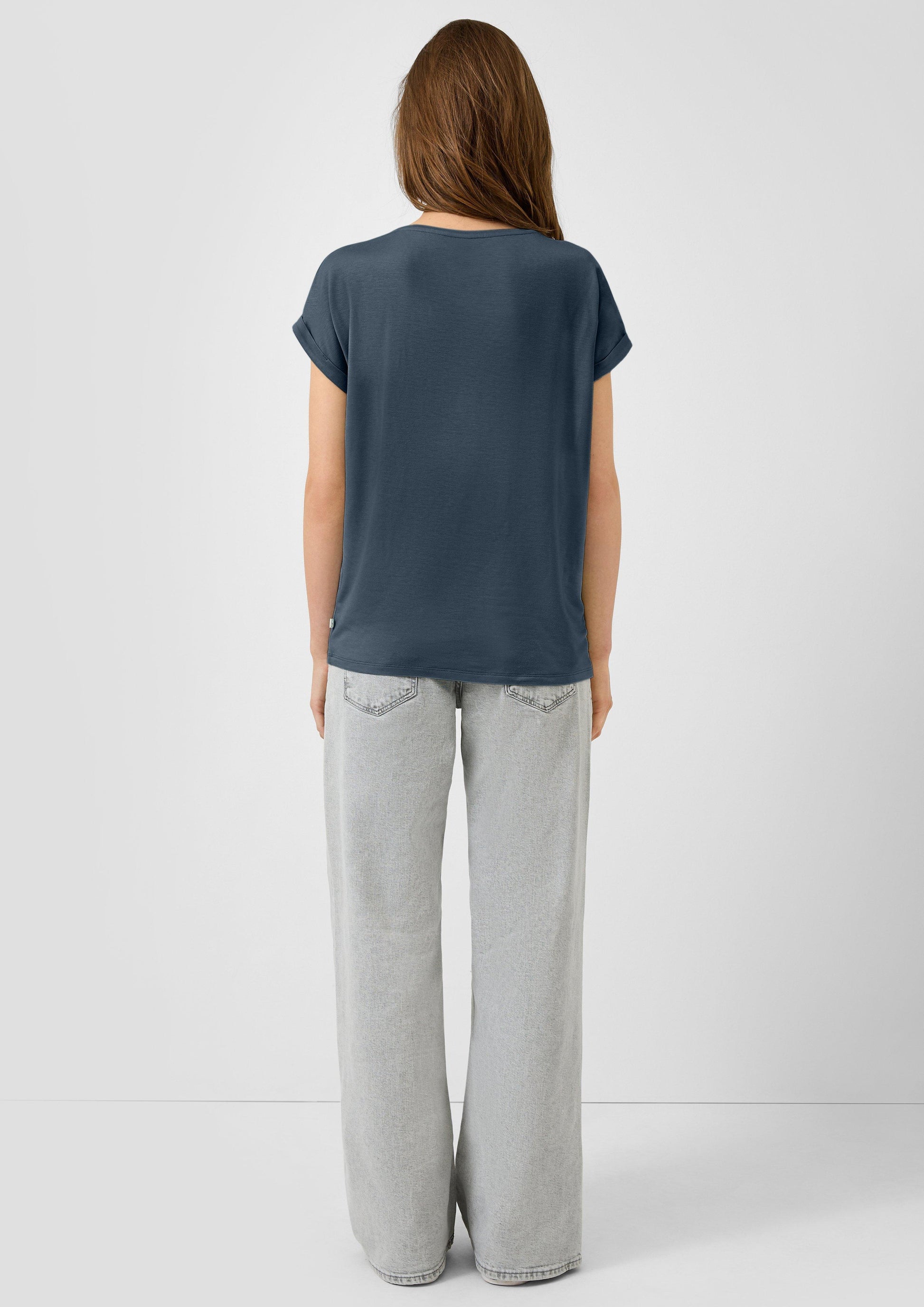 Dieses lässige T-Shirt aus softem Lyocellmix wird dank Loose Fit zu deinem neuen Lieblingsteil. Der coole Fledermausärmel mit fixiertem Umschlag macht den entspannten Look perfekt. Ob beim Chillen oder unterwegs – der weiche Jersey-Stoff fühlt sich den ganzen Tag mega bequem an. Einfach überziehen und losgehen.