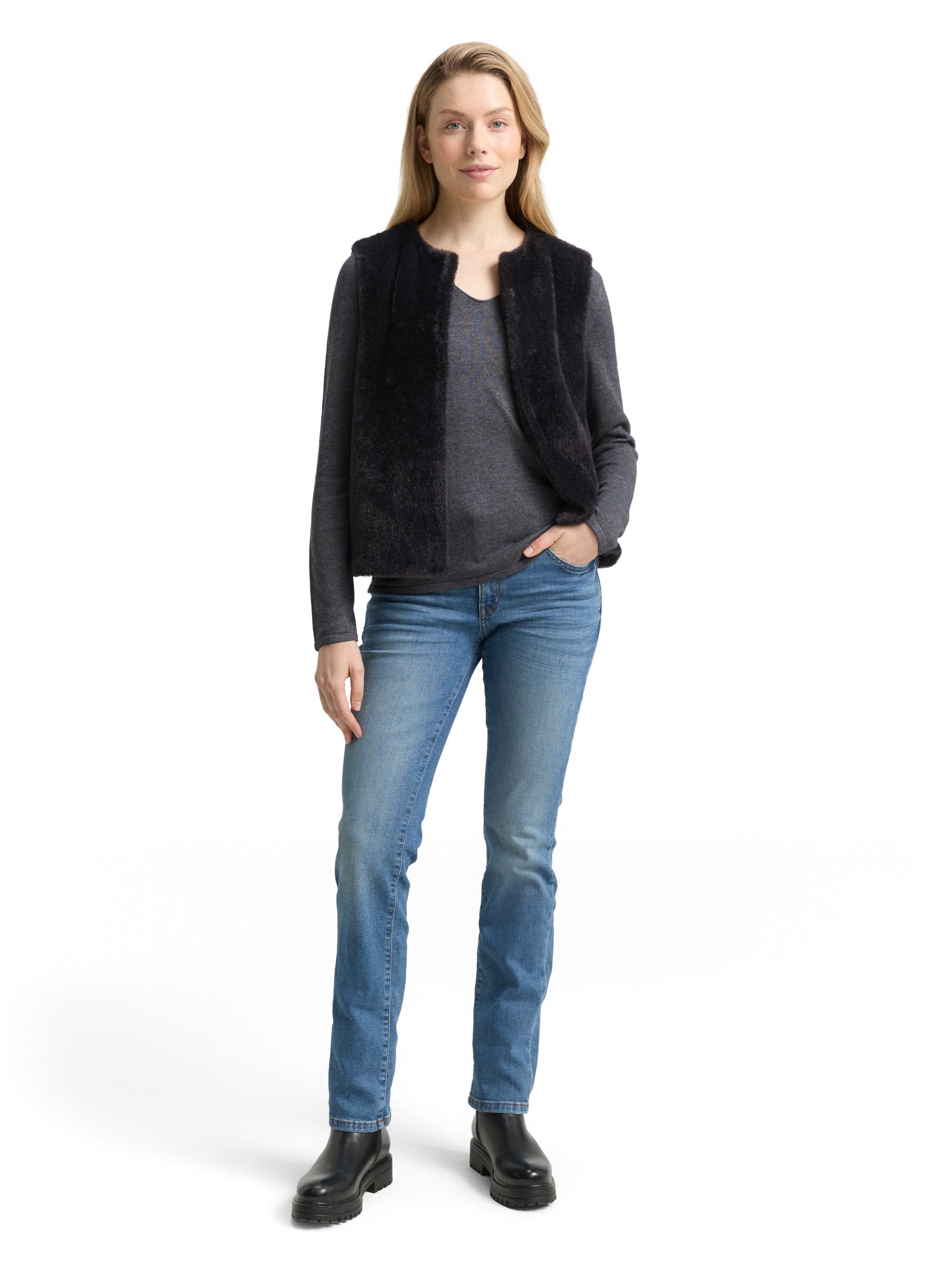 Weiche Weste mit seitlichen Eingriffstaschen und Haken und Öse zum Schließen