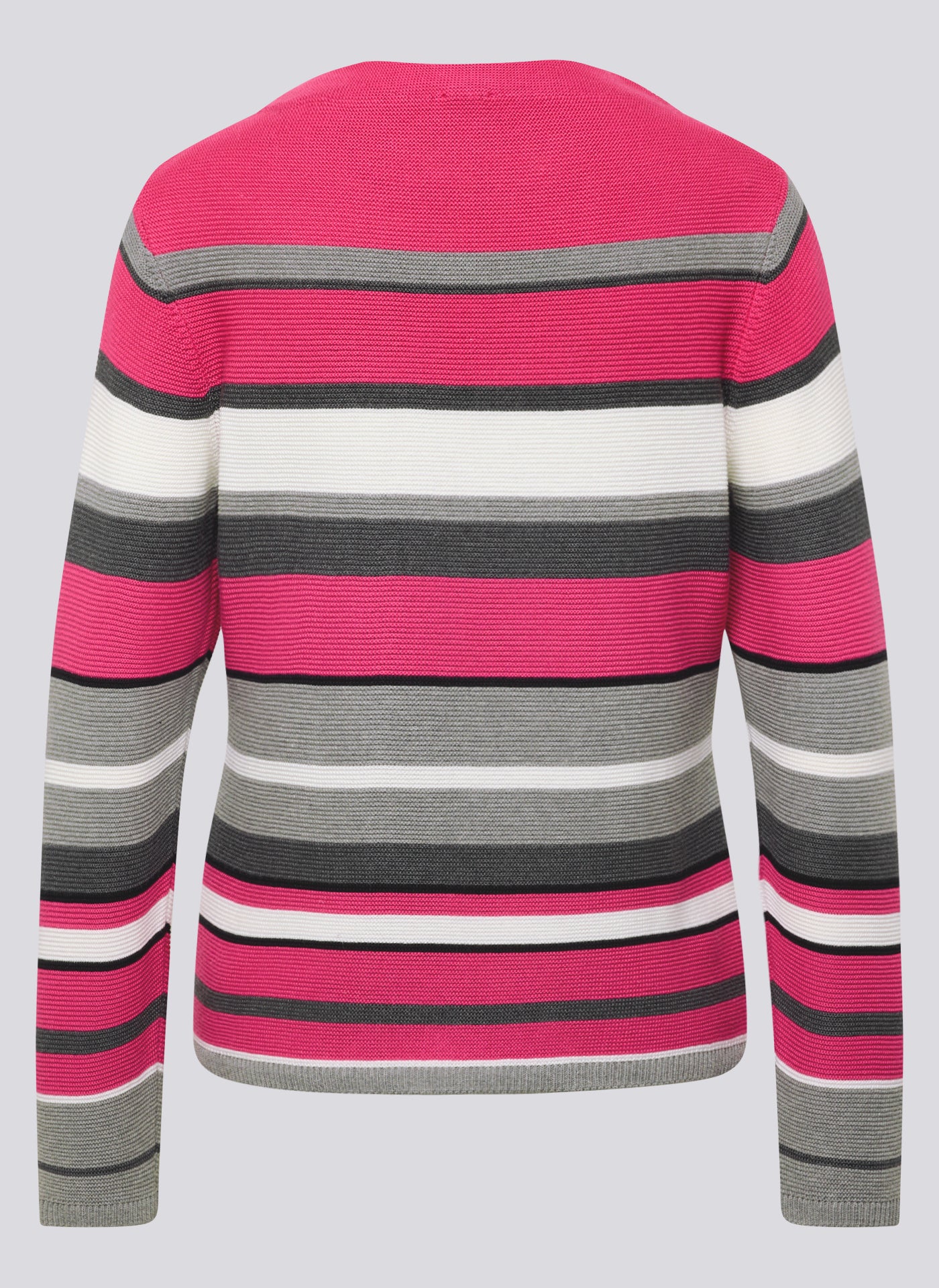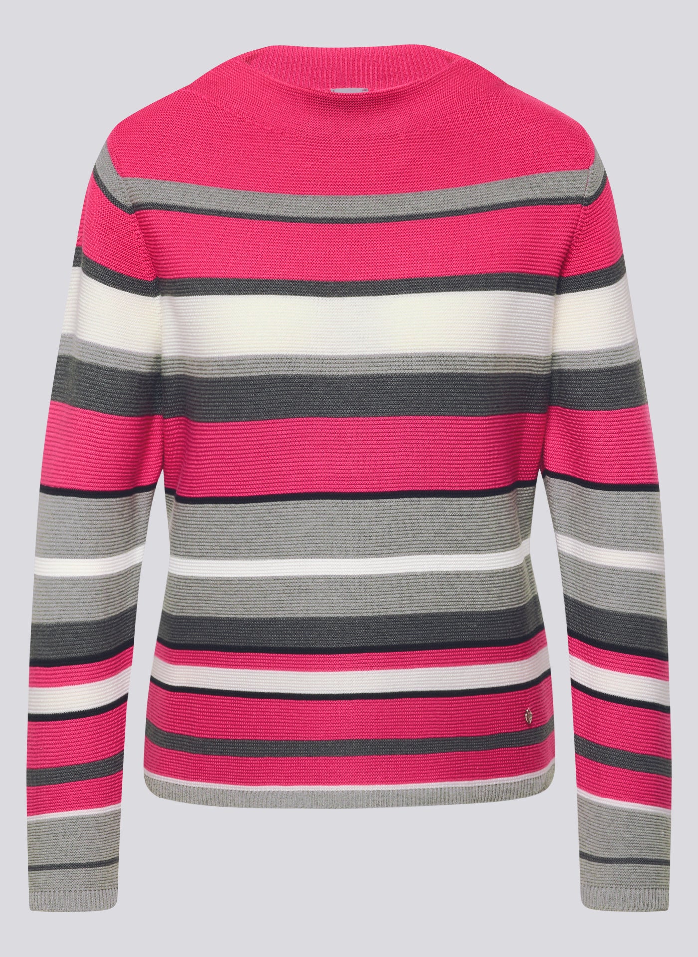 Dieser Pullover bringt frischen Schwung in Ihre Garderobe: Die breiten, farblich wechselnden Streifen und die strukturierte Rippenoptik sorgen für einen sportiven und modernen Look. Der klassische Rundhalsausschnitt und die gerade Passform machen ihn zum vielseitigen Begleiter für viele Gelegenheiten. Ein kleines Markenemblem am Saum rundet das Design dezent ab. Breite, farblich abgesetzte Streifen. Strukturierte Rippenoptik. Rundhalsausschnitt. Gerade, bequeme Passform. Mit kleinem Markenemblem am Saum.
