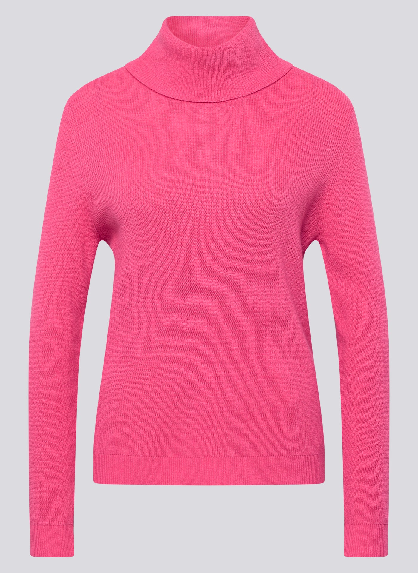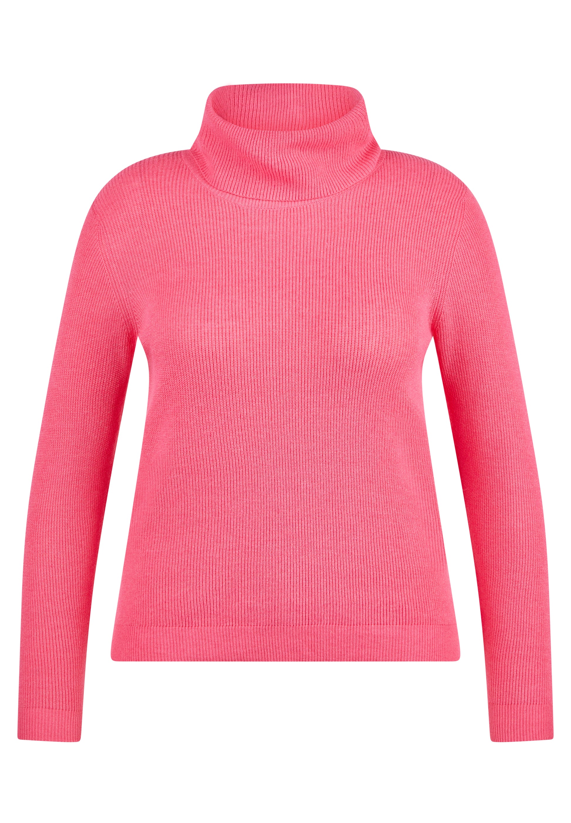 Dieser Pullover punktet mit seinem cleanen Design und einer fein strukturierten Rippenoptik. Der hohe Rollkragen sorgt für ein angenehmes Tragegefühl und schützt an kühleren Tagen. Die figurbetonte Passform macht ihn zur idealen Wahl für vielseitige Kombinationen _ ob solo getragen oder unter Blazern und Jacken. Weiche Feinstrickqualität. Angeschnittener Rollkragen. Figurbetonte Form. Elastischer Bundabschluss. Dezenter Uni-Look.