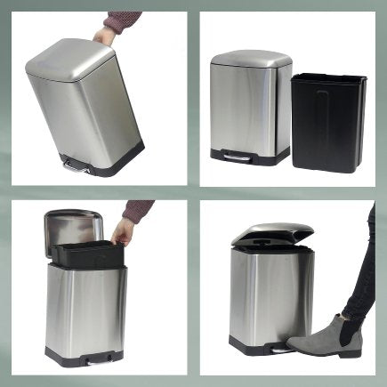 Die Treteimer der Serie Davino fassen 6, 12 oder 30 Liter (Artikel 10934), sind aus Edelstahl (Edelstahlvariante) oder aus Metall Pulverbeschichtet. Sie bestechen durch ihr schlichtes Design und durch ihre Funktionalität. Die Tretmülleimer sind mit der Silent Close-Technik ausgestattet, das heißt der Deckel fällt beim Schließen nicht einfach herunter, sondern er schließt angenehm leise. Wenn man den Deckel im offenen Zustand noch leicht nach hinten drückt, bleibt er in dieser Position stehen und Sie können in Ruhe den Innenbehälter zum Entleeren heraus nehmen. Danach können Sie den Deckel wieder nach unten stoßen und er schließt wieder schön leise.