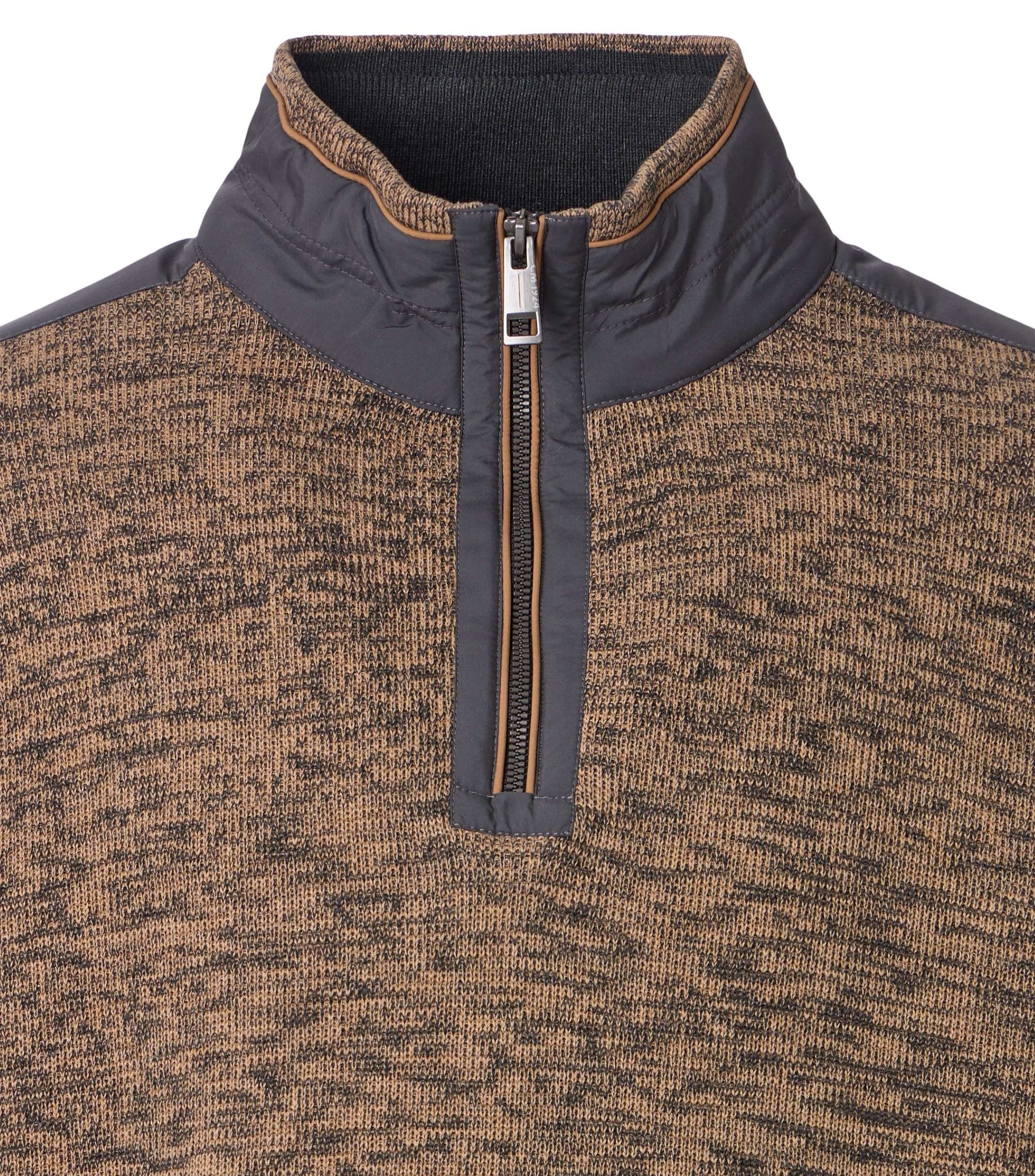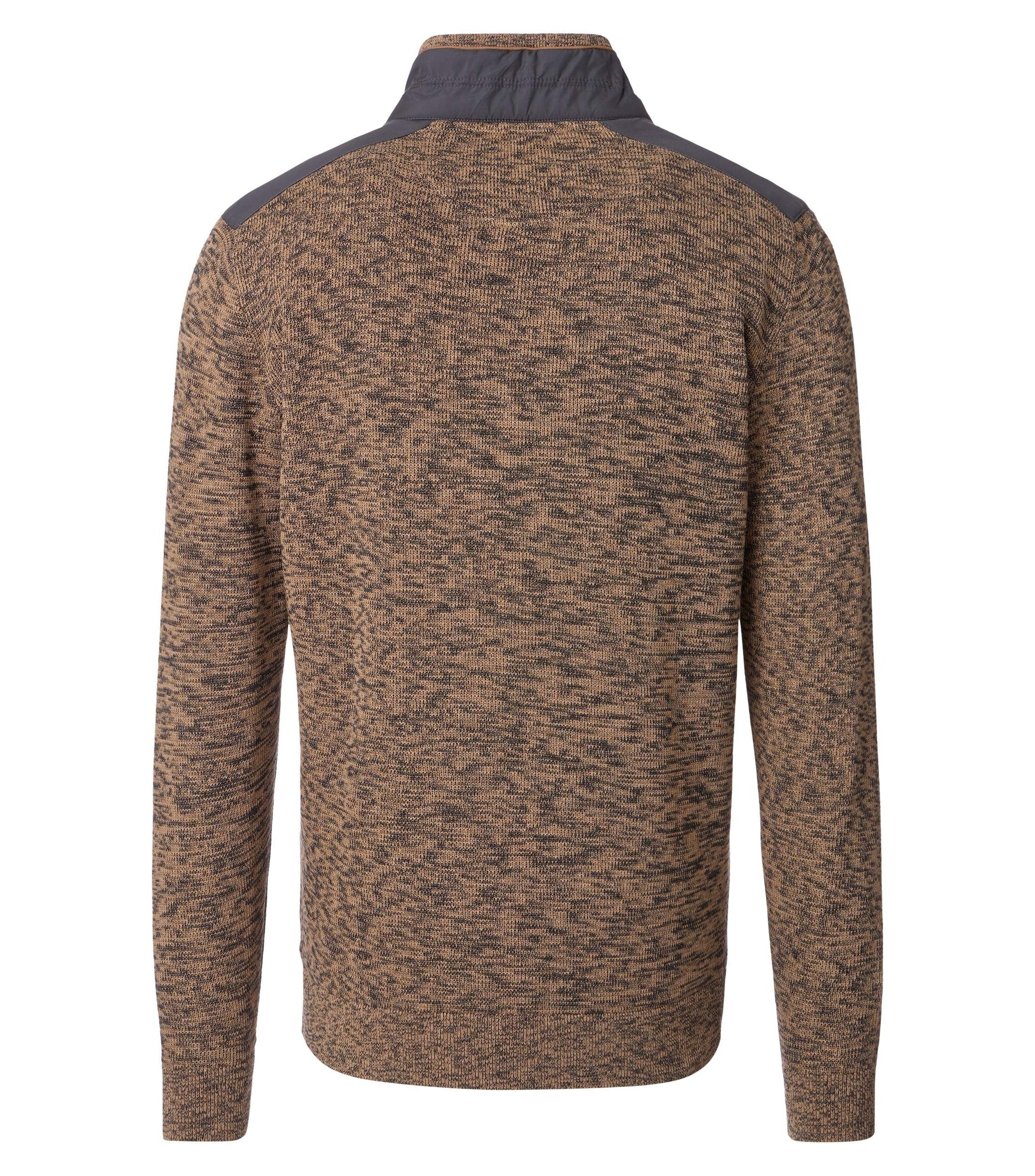 Dieser Strick-Troyer überzeugt mit zeitloser Eleganz und angenehmer Wärme. Die feine Strickstruktur sorgt für eine edle Optik, während der hohe Kragen mit Reißverschluss für einen modernen Touch sorgt. Ob über einem Hemd oder solo getragen – dieser Troyer ist ideal für stilbewusste Looks an kühleren Tagen.