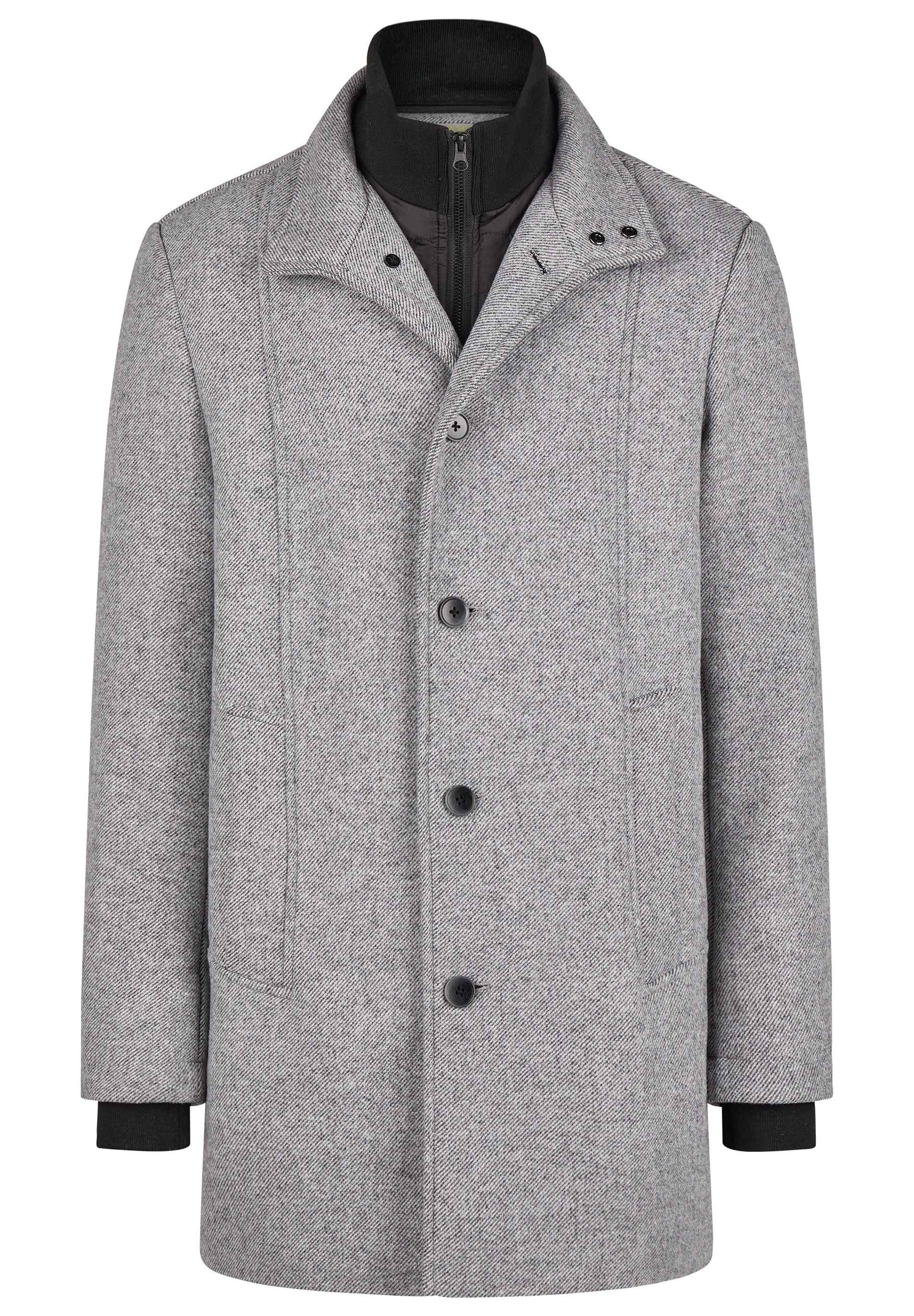 schliesst mit Knopfleiste, Moderner Stehkragen mit Druckknoepfen, Herausnehmbare Innenweste mit Stehkragen aus Strick, seitliche Leistentaschen, hochwertige Wollqualitaet in Steilgrad-Optik